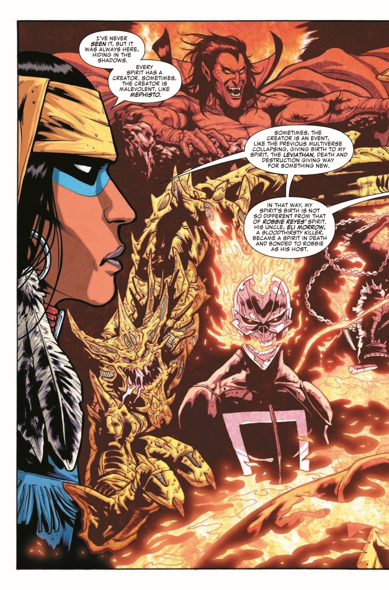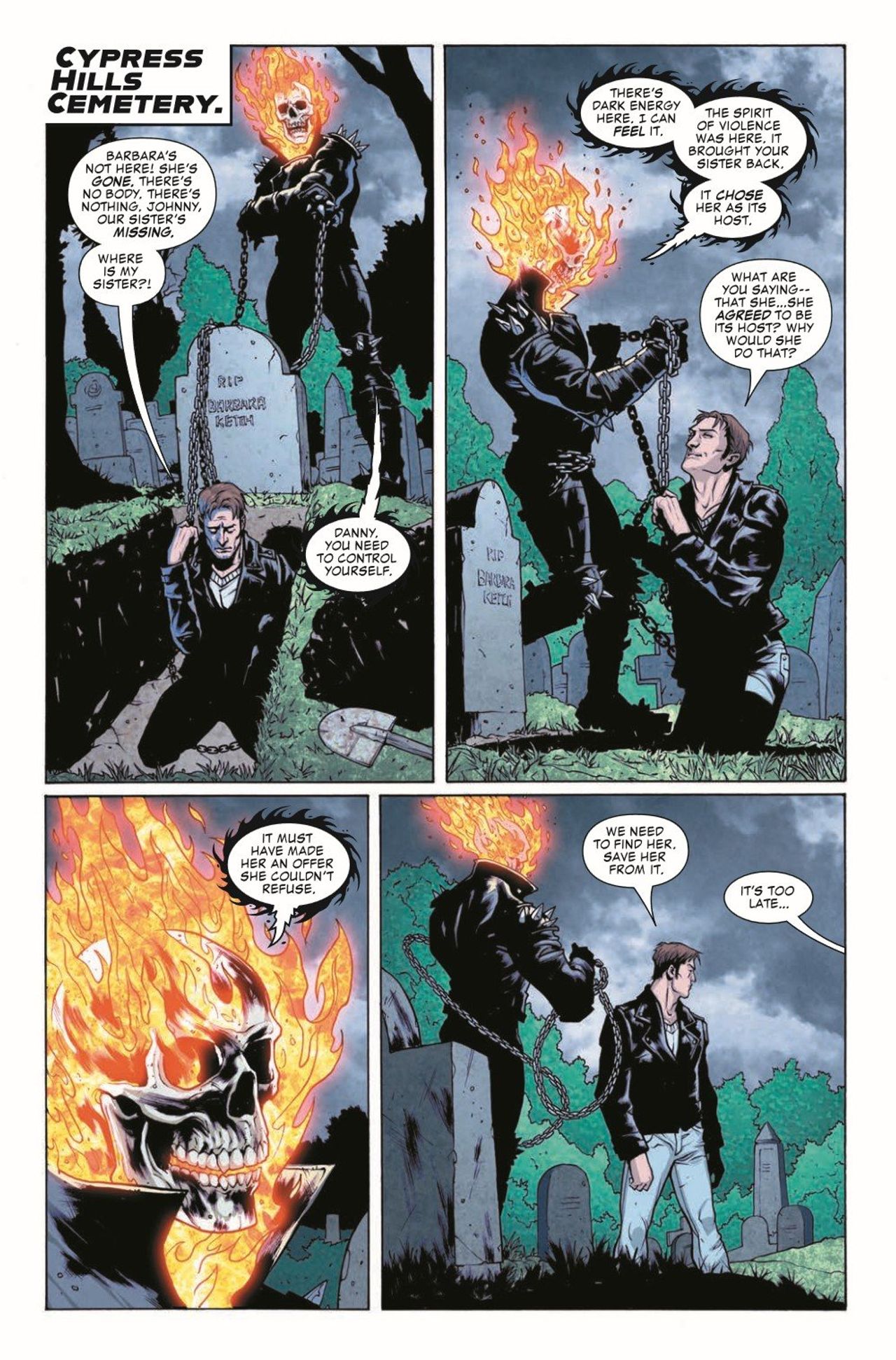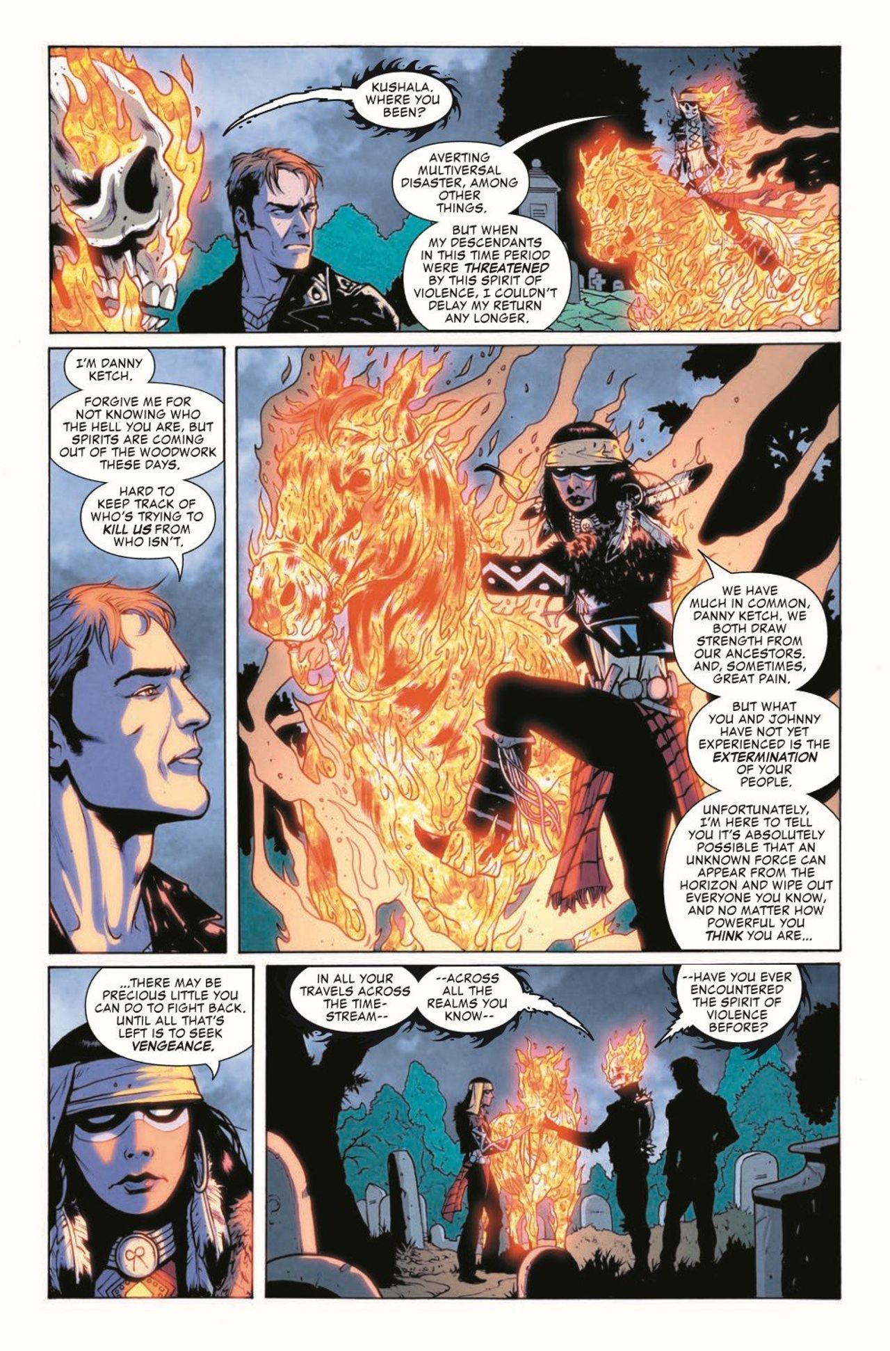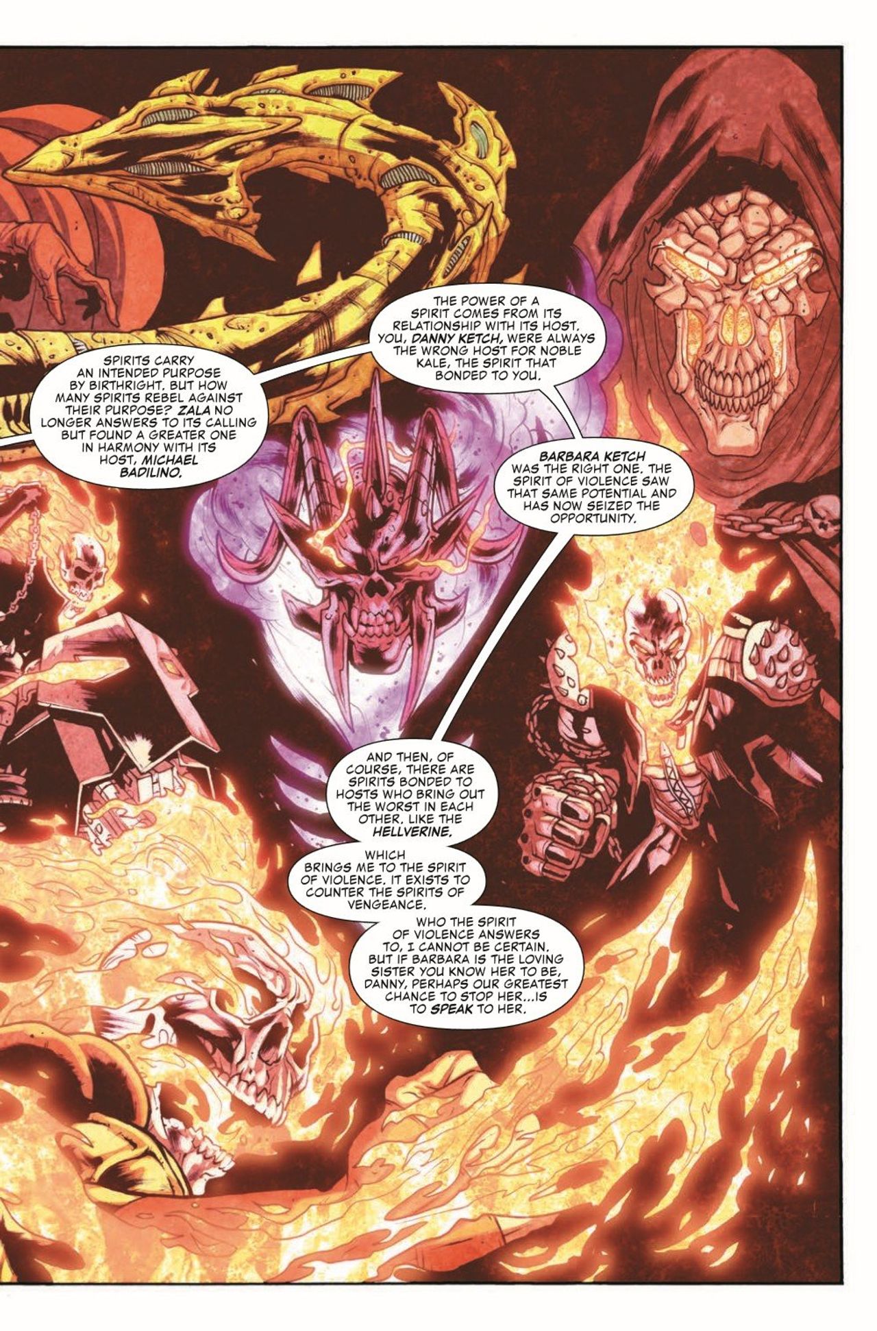 Johnny Blaze, Danny Ketch, Robbie Reyes, Kushala, Fantasma, Hellverine and more! Ghost Riders unite! When a strange group of new villains set their sinister plan in motion, Ghost Riders past, present and future must combine forces to save the world. But just who is the Spirit of Violence, and what horrors do they bring from Johnny Blaze's and Danny Ketch's pasts? Forget everything you thought you knew about Ghost Rider! The most climactic ride in history starts here!