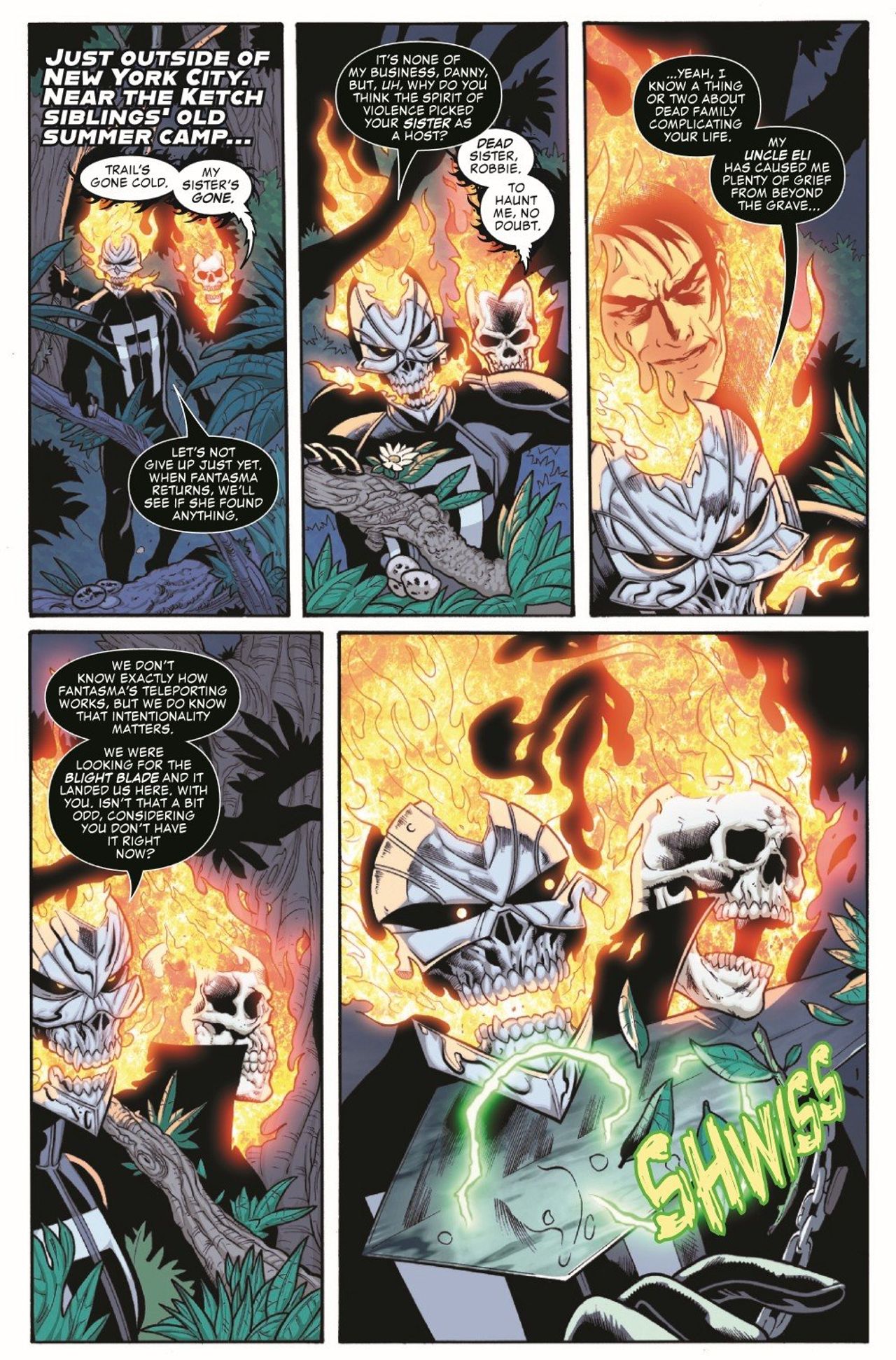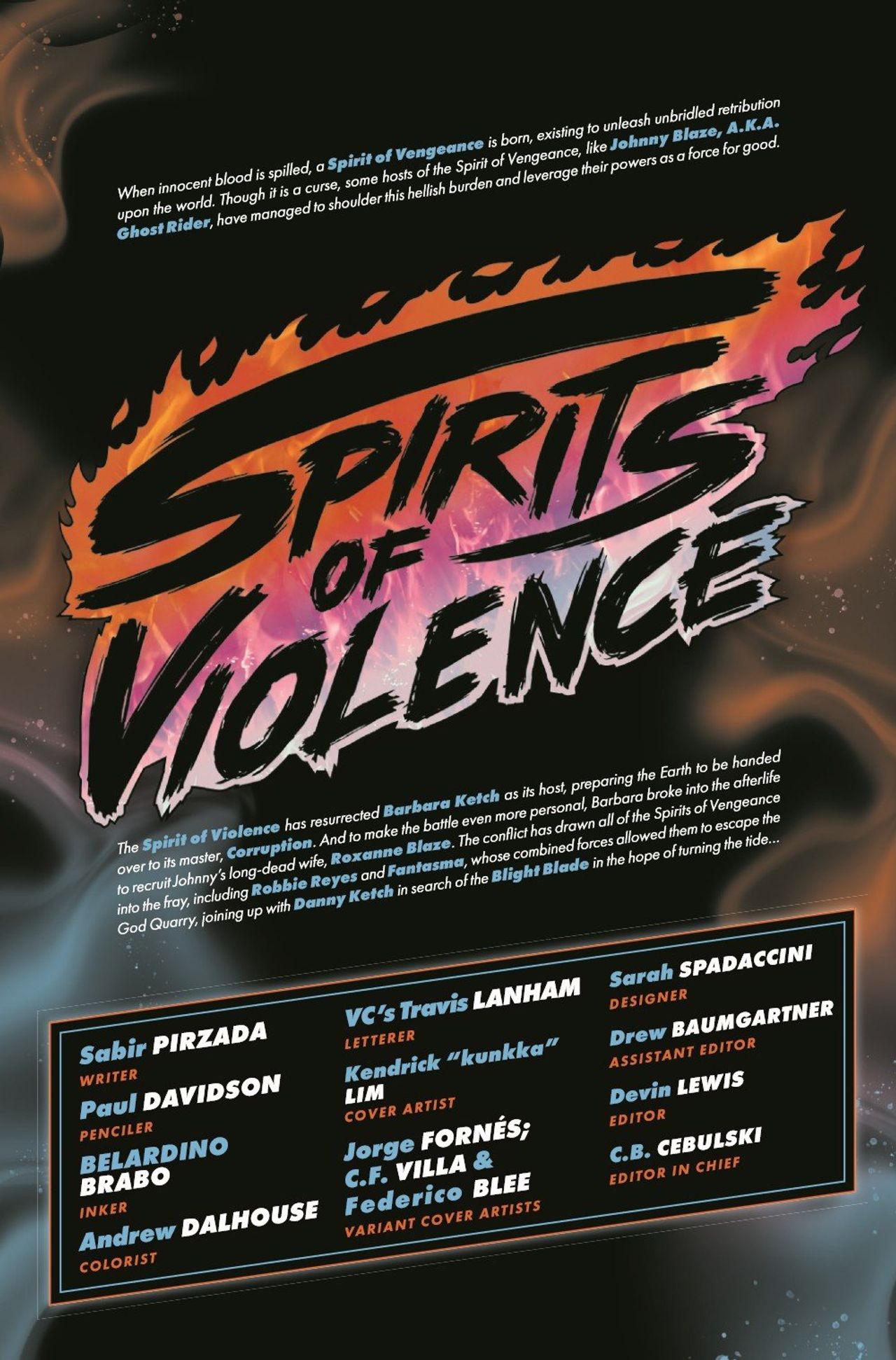 THE TOUR DE FORCE CONTINUES! Johnny Blaze, Danny Ketch and their allies have learned of the existence of a dangerous and violent NEW spirit: THE SPIRIT OF VIOLENCE! But what are its origins? And why, of all people, has it chosen Danny Ketch's sister, Barbara, as its avatar? Can she be saved? Is she truly even alive at all? Answers to your BURNING QUESTIONS start here, but brace yourselves - they're not for the faint of heart!