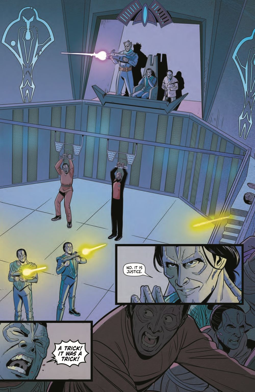 Don't miss out on this lead up to the highly anticipated DAY OF BLOOD crossover event between the Star Trek ongoing series and Defiant! Lieutenant Shaxs receives visions from the Bajoran Prophets. He sees his past and his future, and he sees the trial of Benjamin Sisko. The crew of the Theseus must fight their way back together after being separated across Cardassian space before their Captain's fate is set in stone and Kahless can carry out his promise of more bloodshed…