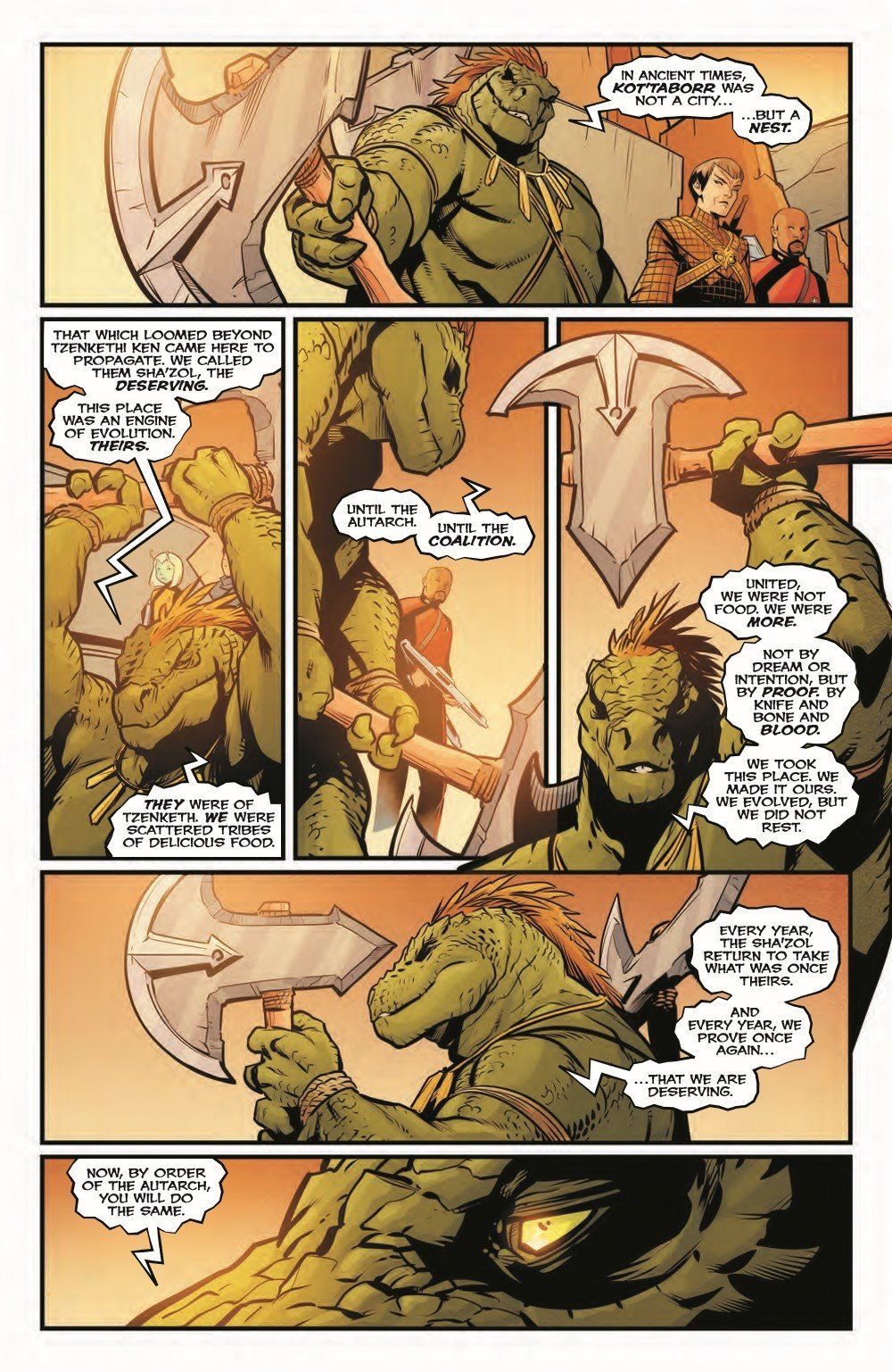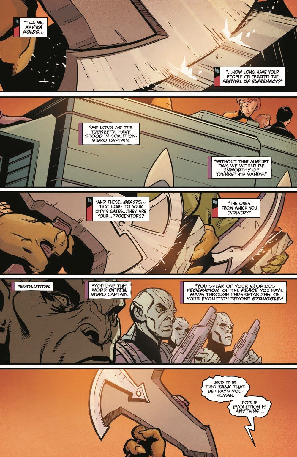 Prepared to do whatever it takes to make peace with the war-worshipping Tzenkethi and outmaneuver the Romulan Empire as their ally, Captain Sisko and his crew work alongside Tzenkethi warleader Kav'ka and Romulan Magistrex T'Galatheon to ready capitol defenses in preparation for the deadly Festival of Supremacy. But Sisko soon learns that Federation ideals won't come naturally to the reptilian species that praises survival of the fittest over all. Can Sisko keep his crew alive, impress the Tzenkethi Autarch, and keep the Romulans from convincing warmongers that they reign supreme?