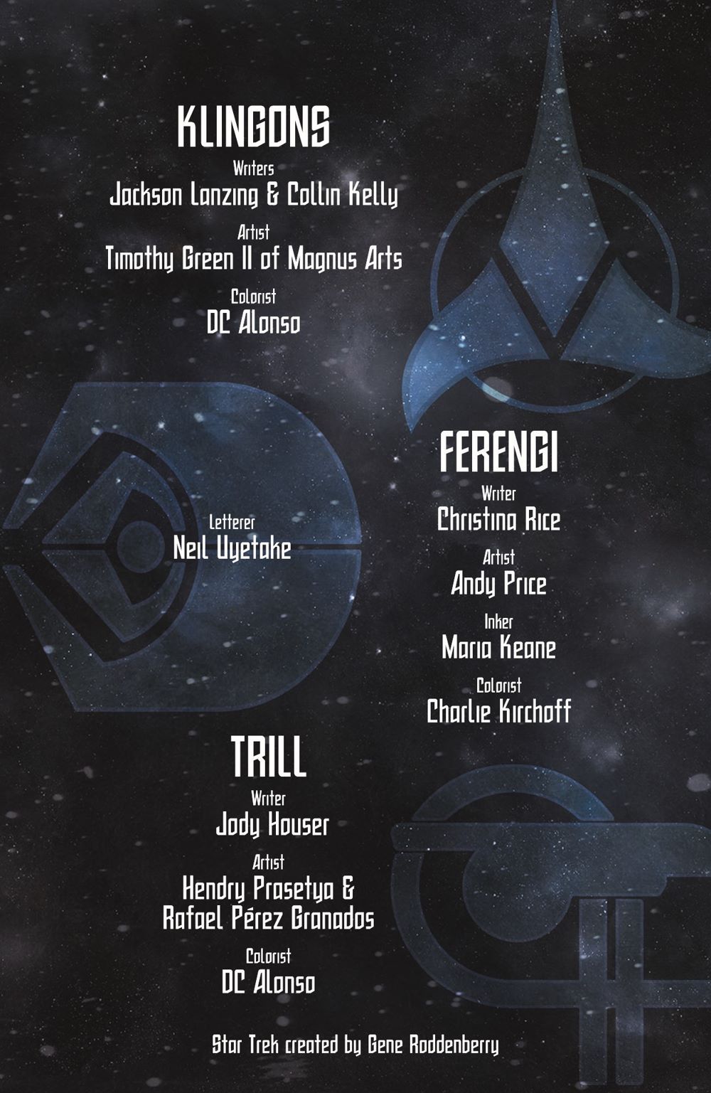 Dive deeper into the world of Star Trek with special one-shot stories focusing on the memorable aliens of the series: Klingons, Ferengi, and Trill!