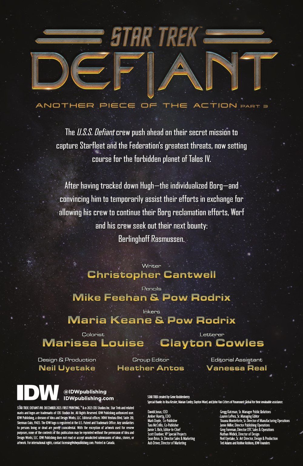 The Defiant crew makes way for its next bounty: Berlinghoff Rasmussen, infamous time-traveling thief and con man. Berlinghoff has escaped custody on Starbase 214 and has his sights set on tech from the forbidden planet and final resting place of Captain Christopher Pike, Talos IV. With top-secret orders from Starfleet, Worf and his crew are to intercept the target without being detected by anyone…including the Federation.