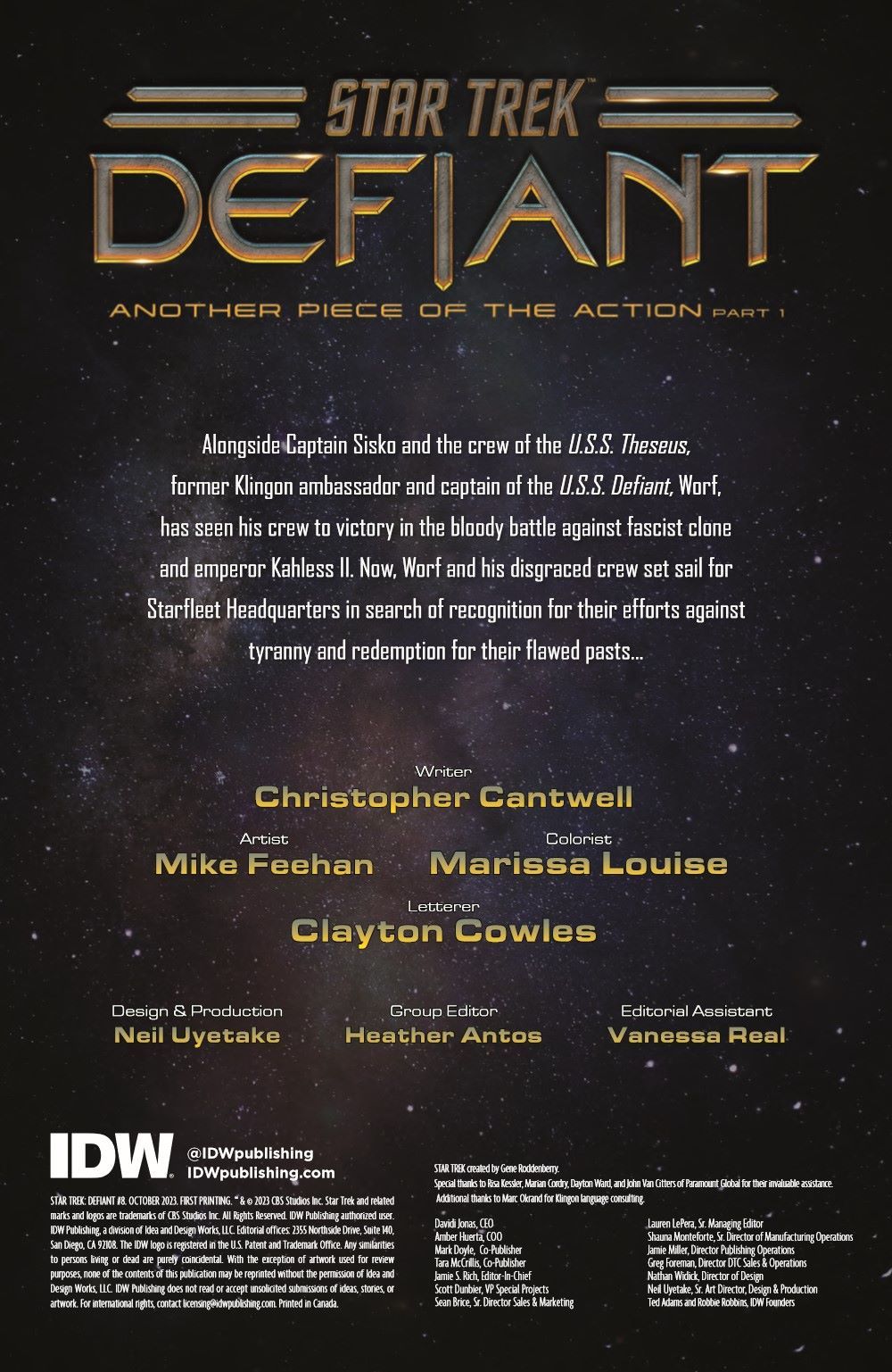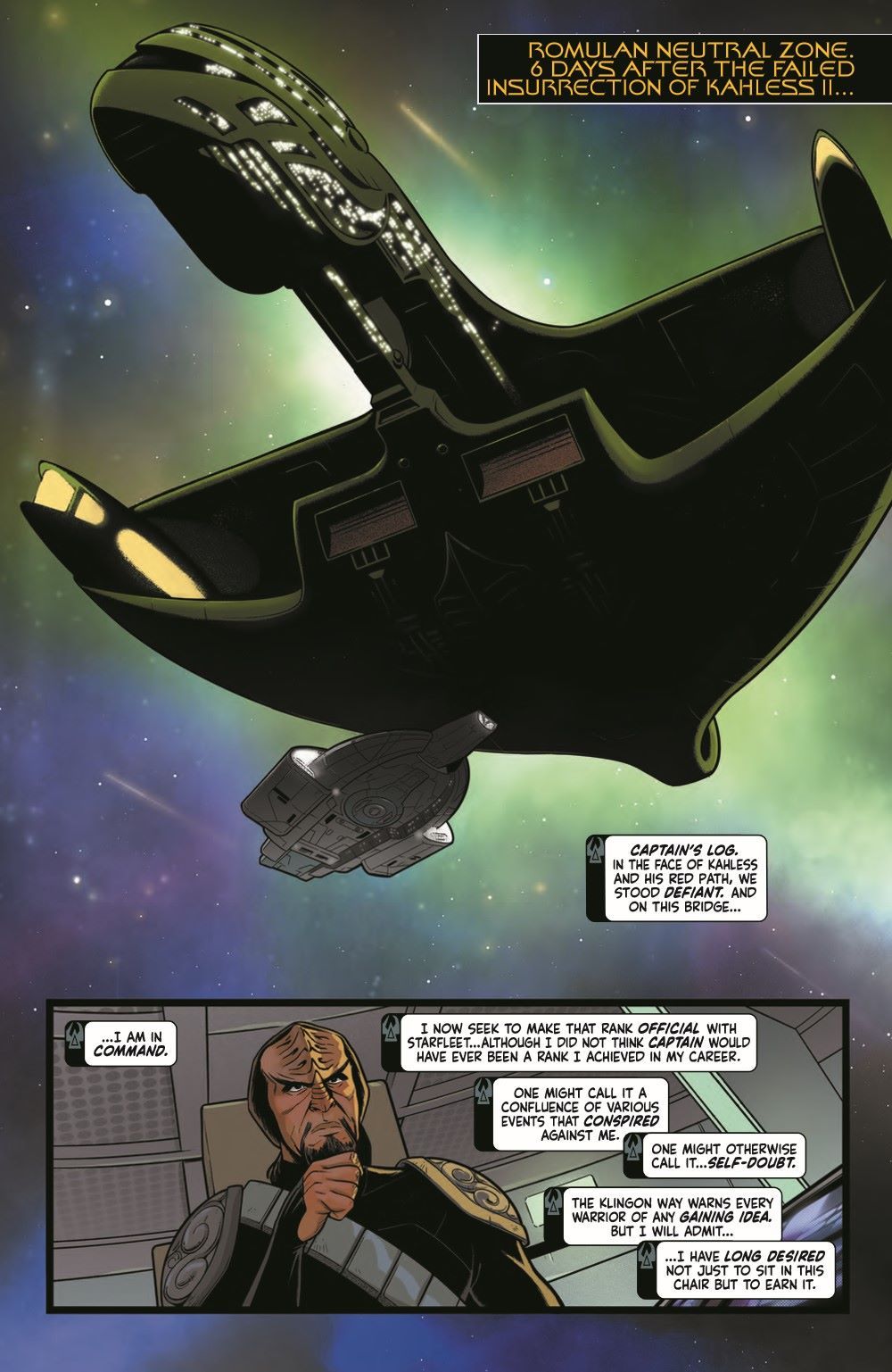 Arc two of the acclaimed Star Trek: Defiant series starts here! Still reeling from the battle on Qo'noS, Worf and the Defiant crew have been ordered to return to Starfleet headquarters where they await learning the Federation's thoughts on their involvement in the fight against Kahless and the Red Path.