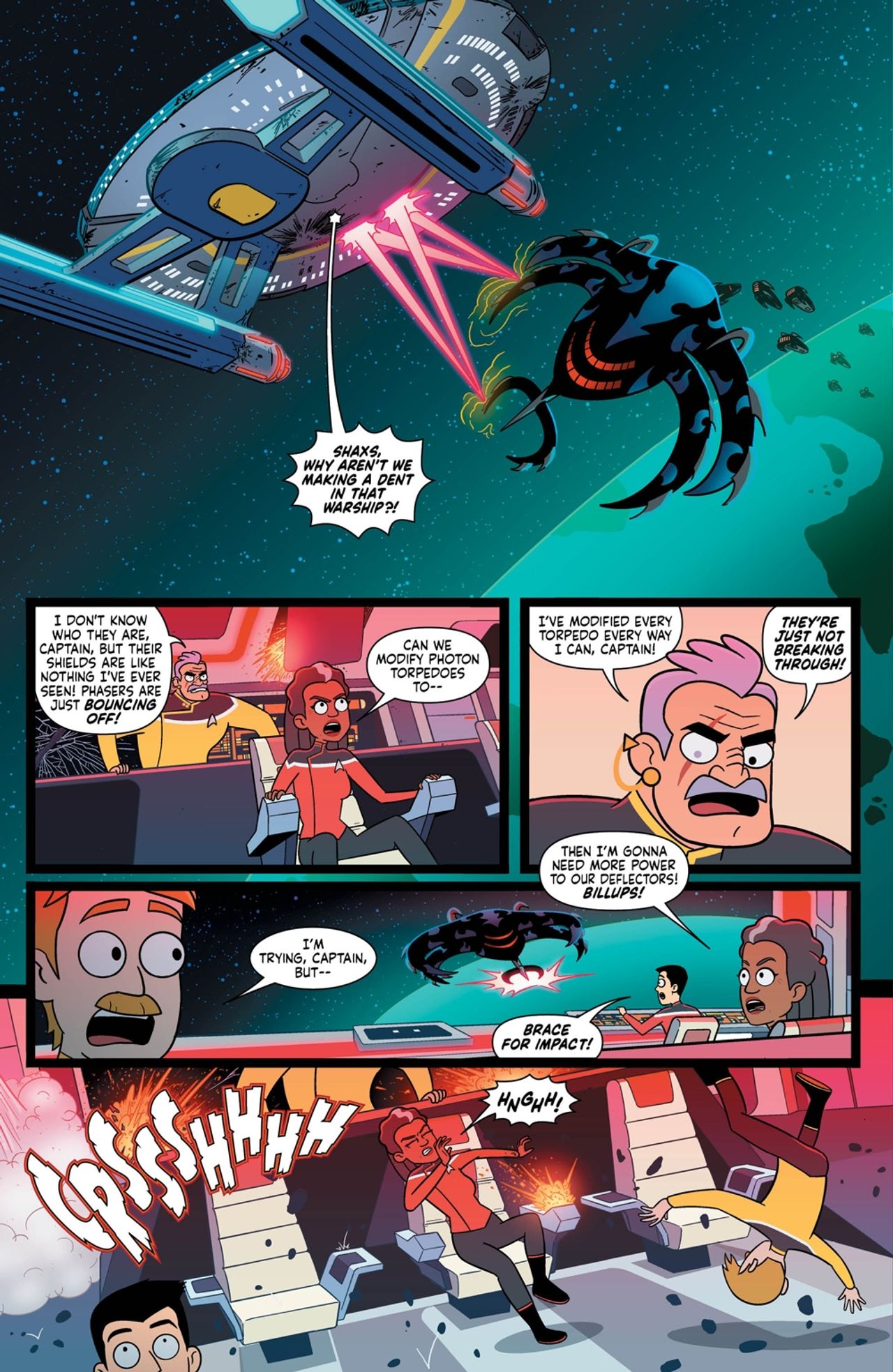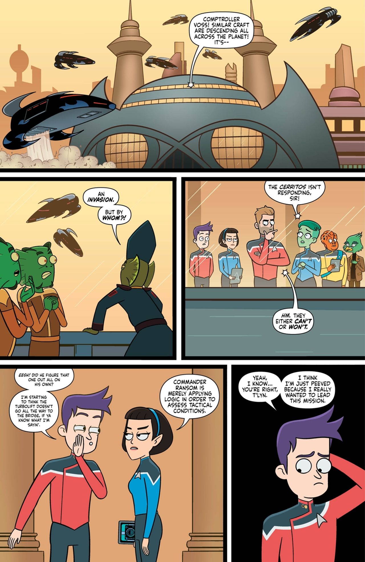 When Commander Jack Ransom promised Boimler command of the away team on Laapoonia in the event that both he and Sun-Sanchez—his Number One—were taken out of commission, he didn't think it'd, like, actually happen. But now, Boimler is in charge, and things have gone full-blown Crisis Royale: A planet's missing population, a big-ass alien warship, and a team at each other's throats threaten to explosively end the Cerritos' second-contact mission with Laapeeria. The name's Boimler. Brad Boimler. And he's got a license to…mildly delegate while panicking under pressure.