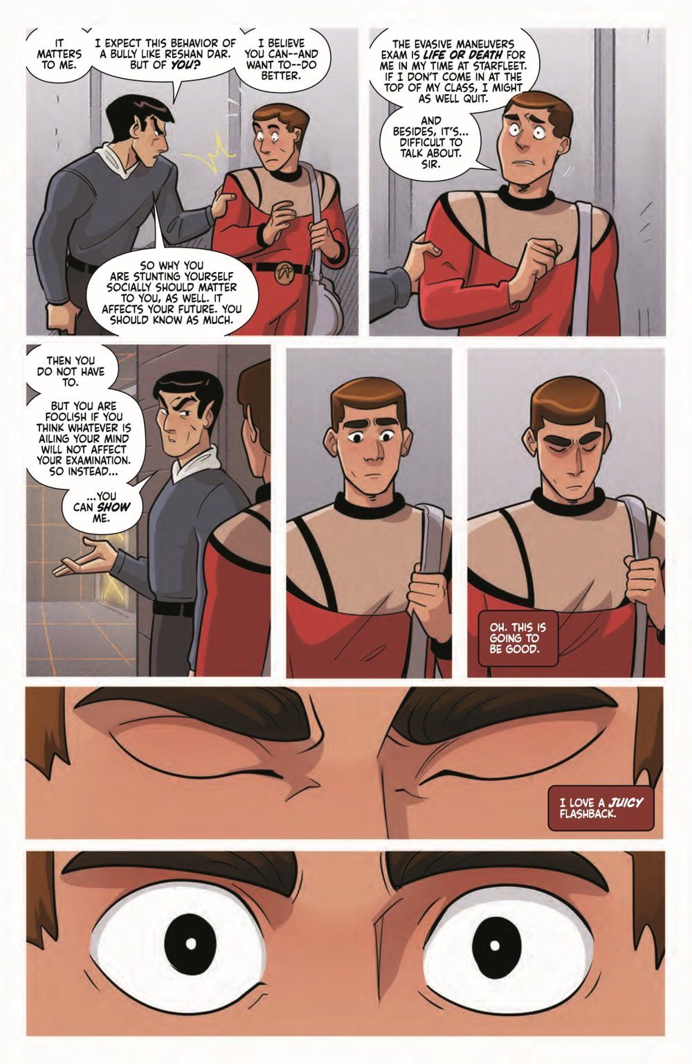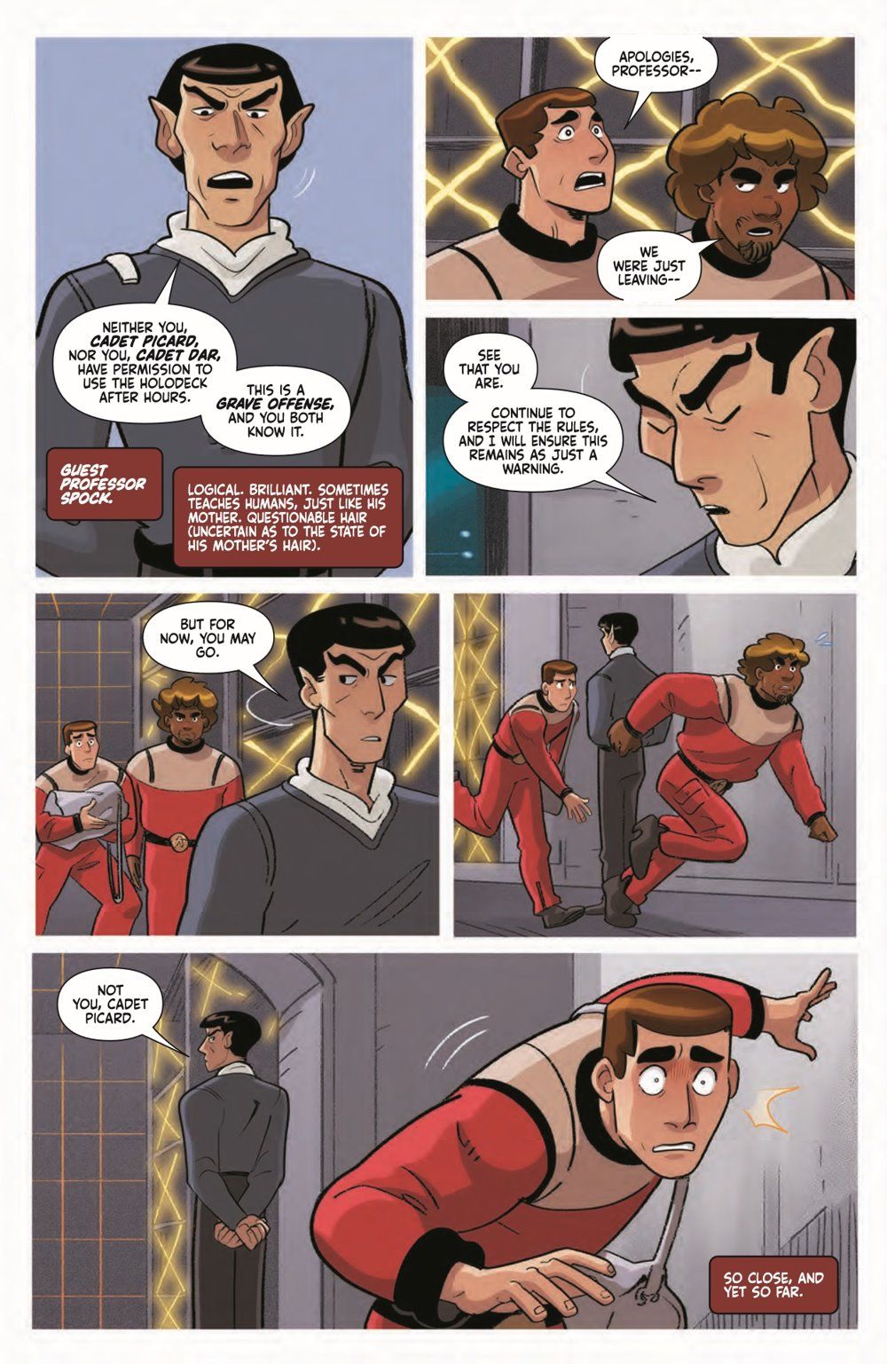 Class. Homework. Sleep. Repeat! Such is the life for Starfleet Academy star pupil Jean-Luc Picard. But if he's to achieve his dream of an early graduation and his own crew, he'll need to face his worst fear head on: making friends. But this doesn't come easy for Jean-Luc, not when he's got a bully like the Betazoid Resh calling out all his mistakes and a really cute girl named Marty making him nervous… and certainly not with guest professor Spock analyzing every step he takes!