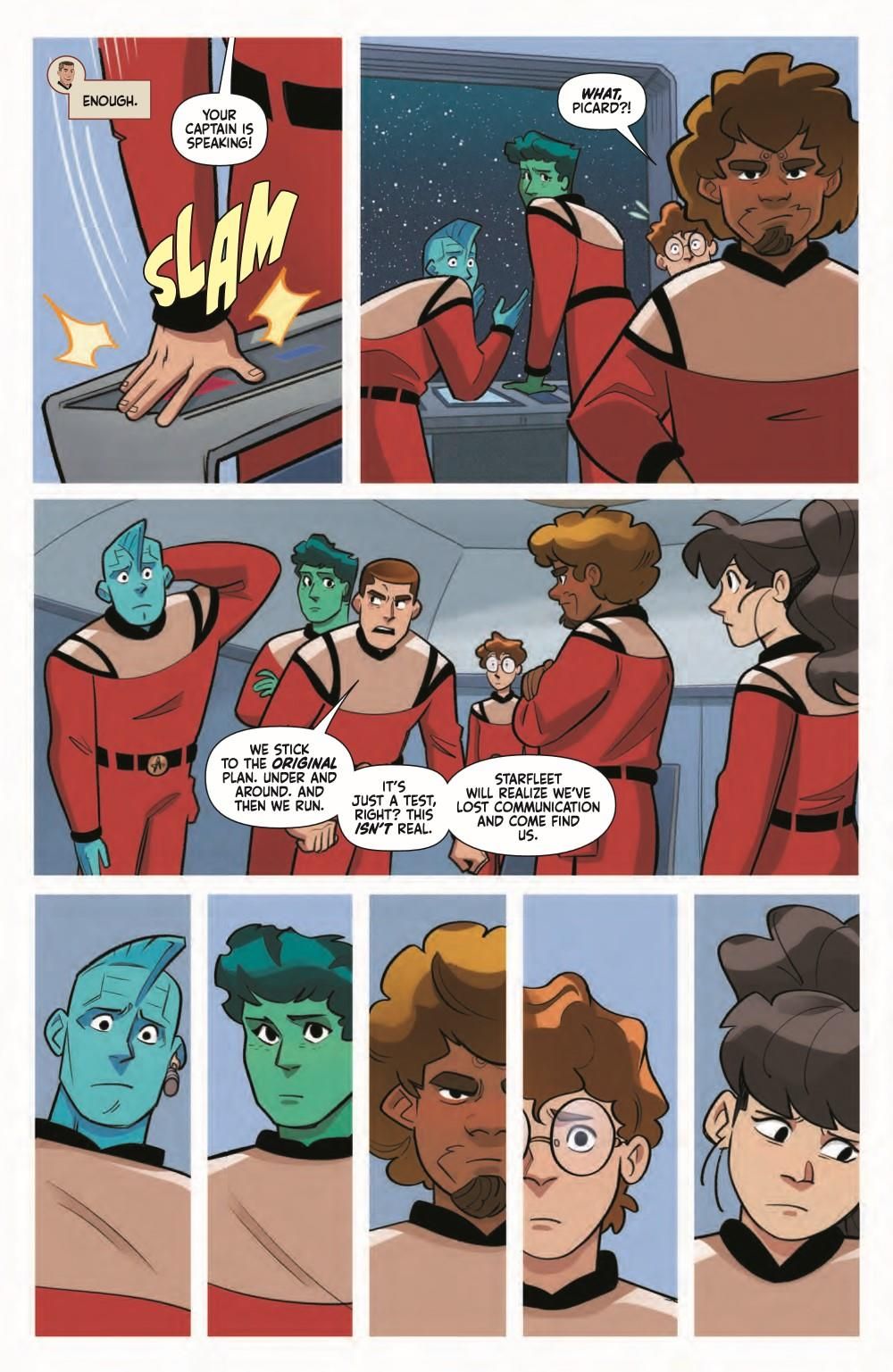 Starfleet's Evasive Maneuvers exam has turned into an actual battle for survival as Jean-Luc and his classmates find themselves facing the very real threat of death by vacuum of space! They can't reach Starfleet, and enemy Romulans continue invading their ship. Can Picard and his crewmates outmaneuver the enemy in their first-ever ship-on-ship space battle, or will he, in his first role as acting captain, succumb to the chaos and shouting matches among his crew?!