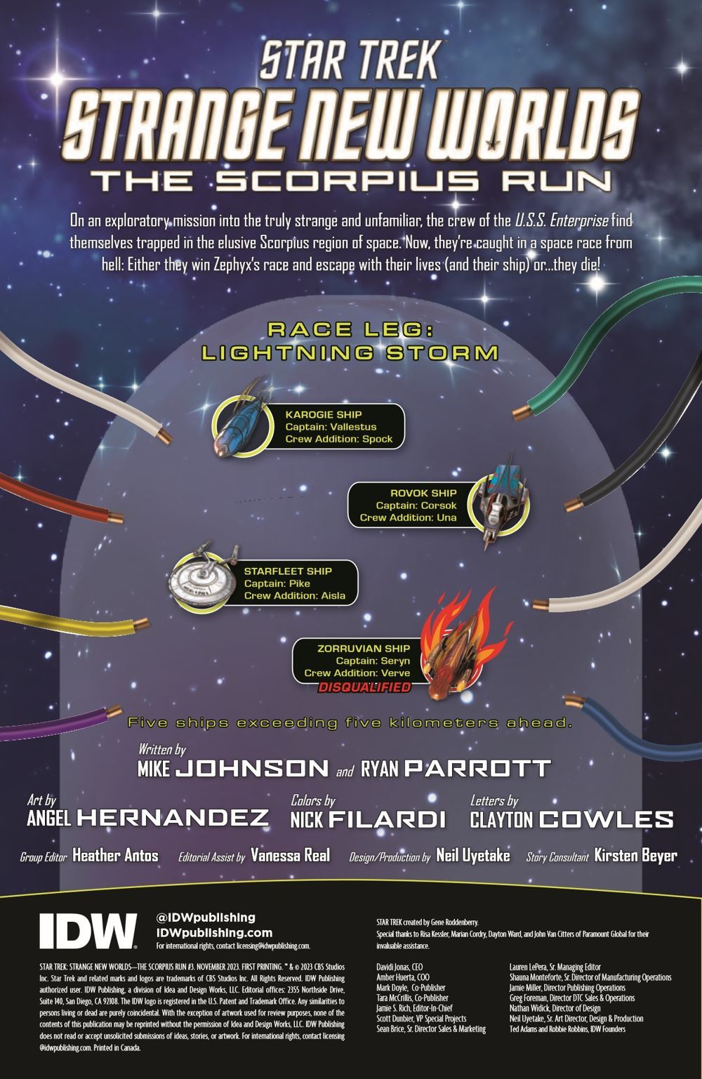 Captain Pike's crew must think on the fly as they race to the finish line, try to stay alive, and cover one another's backs! But it's not only the Scorpius region that's unfamiliar to them. The people and ships they've been forced to join are strange, and they will have to get creative if they're to make it through the mobster Zephyx's rat race.