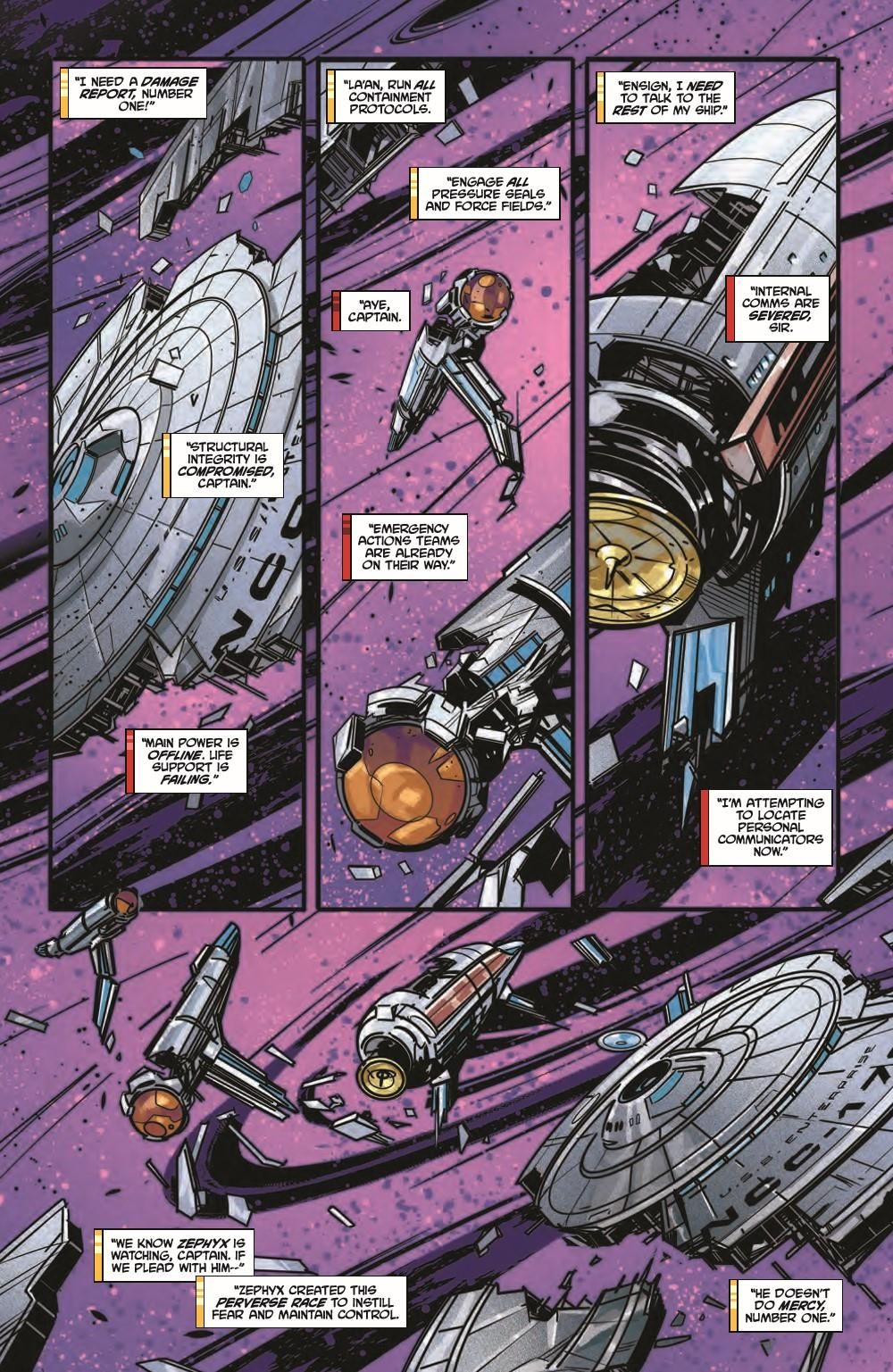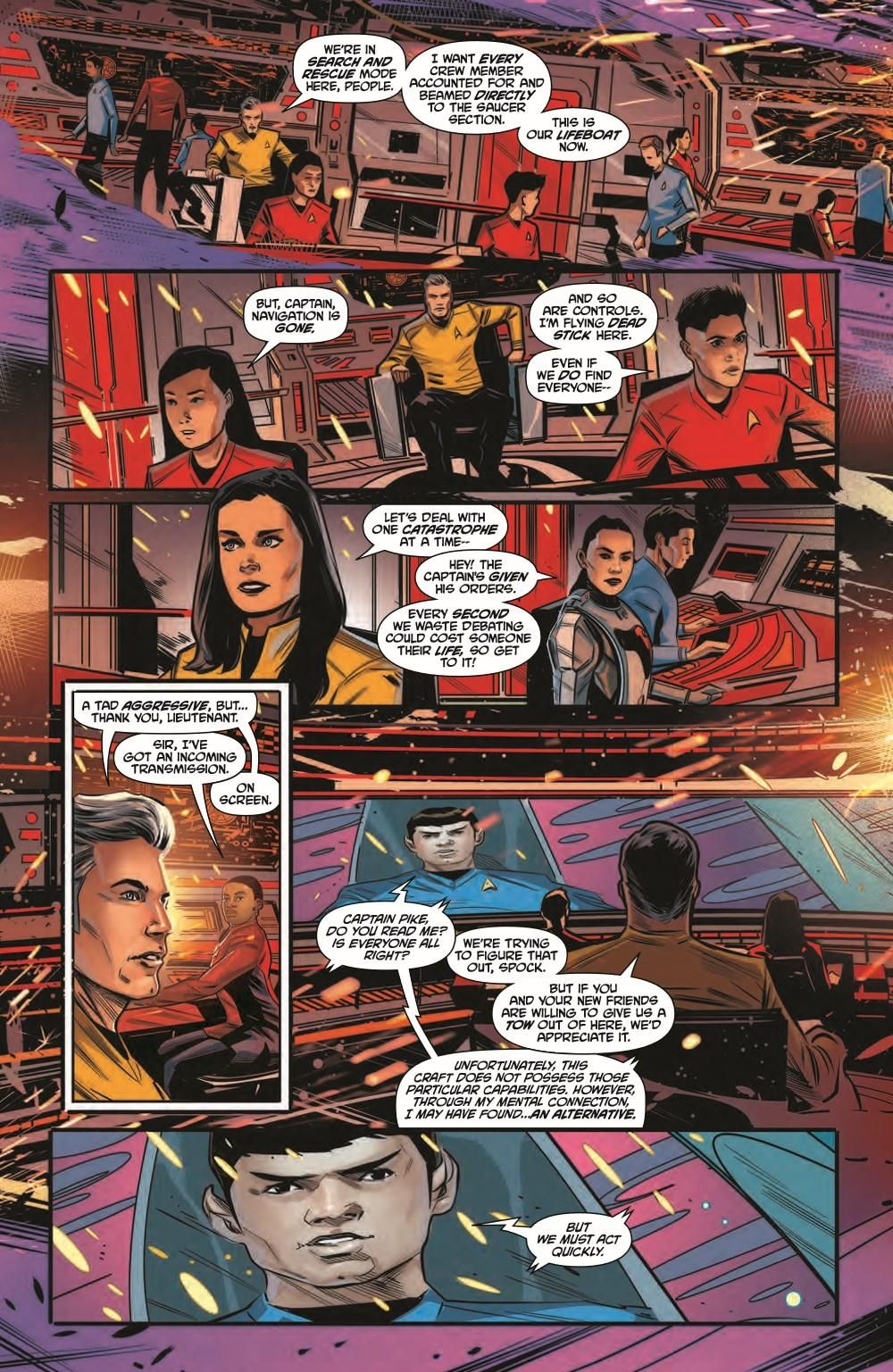 Captain Pike's worst nightmare has come to fruition. Under immense gravitational waves on the racecourse, the Enterprise's shields have collapsed, its hull integrity is failing, and the ship is being torn apart, piece by piece. All the while, Spock is aboard an alien vessel of foreign tech, among a crew desperate to push on and win Zephyx's race. He just may be the Enterprise crew's only hope for survival, but can he persuade the others to defy Zephyx when their home planet is on the line, and can he do so in time? Find out in the thrilling conclusion to Strange New Worlds: The Scorpius Run!