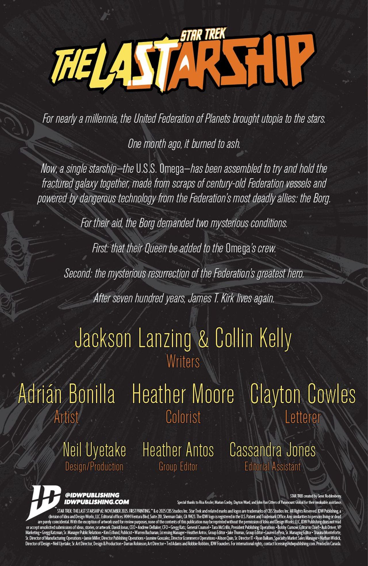 In the wake of the cataclysm known as the Burn, the dream of a united Federation stands on the brink of extinction. The only thing holding the Galaxy back from chaos is Captain Sato and the crew of the Borg-enhanced Omega—a ship fueled by transwarp technology and fraught with distrust. No one on board trusts the Borg…and Captain Sato trusts their mysterious new passenger, bearing the face and name of James T. Kirk, even less. This so-called Kirk speaks of a dark future, but Sato refuses to be guided by fear or prophecy. When a distress call from the Klingon Empire pierces the silence—urgent, cryptic, and unexpected—Sato doesn't hesitate. Whatever the risk, he will answer. Because if Starfleet's legacy is to survive, it won't be through retreat. It'll be through action.