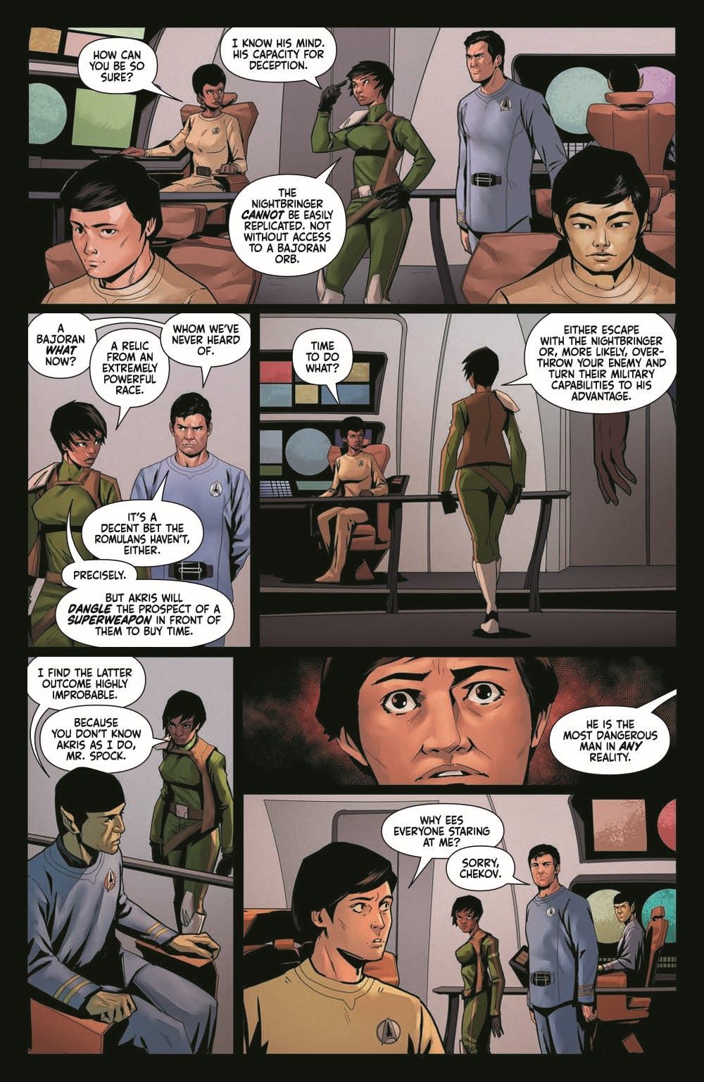 With the fugitive criminal Akris having escaped into Romulan space, Nyota and the crew of the U.S.S. Enterprise must quickly devise a plan if they're to prevent an allyship between the agent of chaos from a parallel universe and one of the Federation's most dangerous enemies.