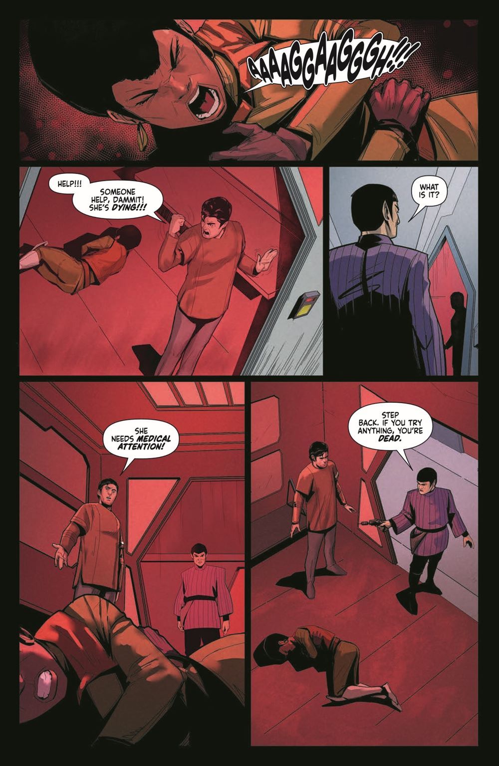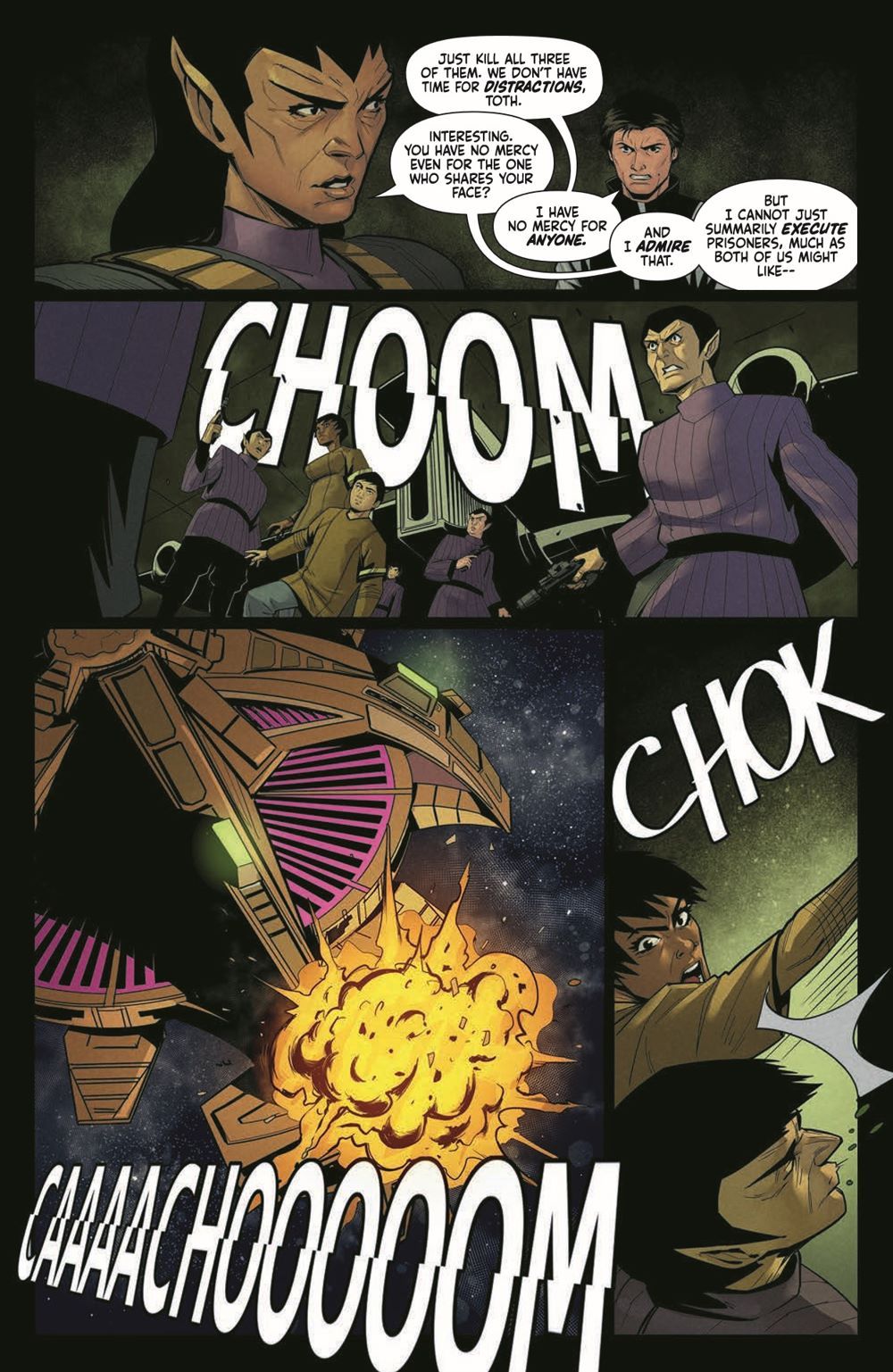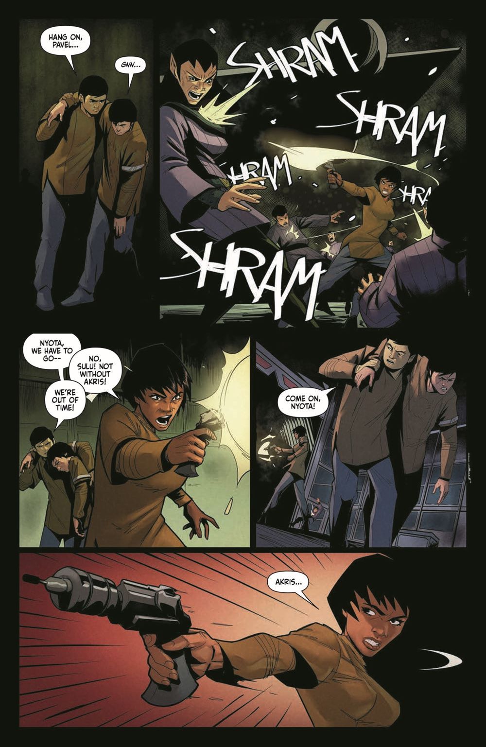 Akris—a maniacal doppelganger of Chekov from a parallel universe—has begun working with the Romulans on a superweapon with a promise to reduce the Federation and its allies to ash. But with half the bridge crew in Romulan custody, it's up to Spock and McCoy to hold down the ship and devise a plan to get their captain and crewmates out of enemy hands!