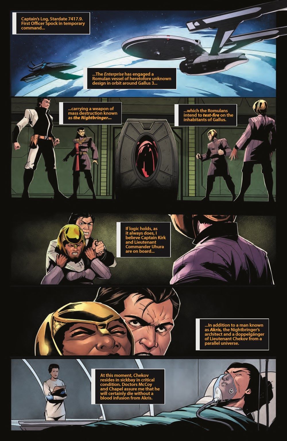 Peace hangs in the balance with Akris and the Romulans' plans to test the devastating Nightbringer weapon on an innocent population and with the Enterprise crew's actions treading the line of the Federation-Romulan peace treaty. Meanwhile, Nyota has gone rogue after finding the crew's actions too passive for her liking. Can Nyota and Kirk set aside their differences to ensure a peaceful resolution and avoid sparking the next intergalactic war? Find out in the finale of Star Trek: The Motion Picture—Echoes!