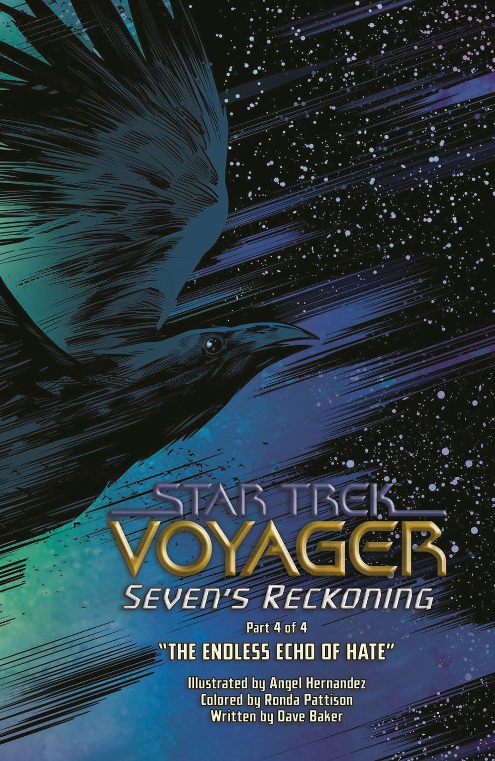 The battle may be over, but the worst is yet to come. Torn between her growing attachment to an alien race and her new commitment to the Prime Directive, Seven of Nine must choose between altering the course of an entire society and her place aboard Voyager in the conclusion to this story set during Voyager's amazing fourth season from writer Dave Baker (Action Hospital, F*ck Off Squad, Star Trek: Waypoint) and artist Angel Hernandez (Star Trek: Picard Countdown, Star Trek/Green Lantern).