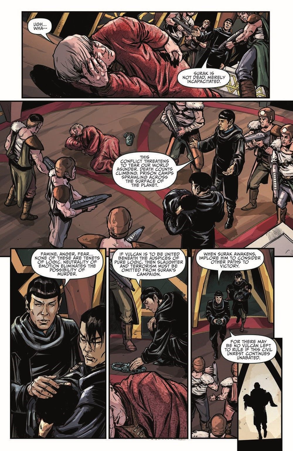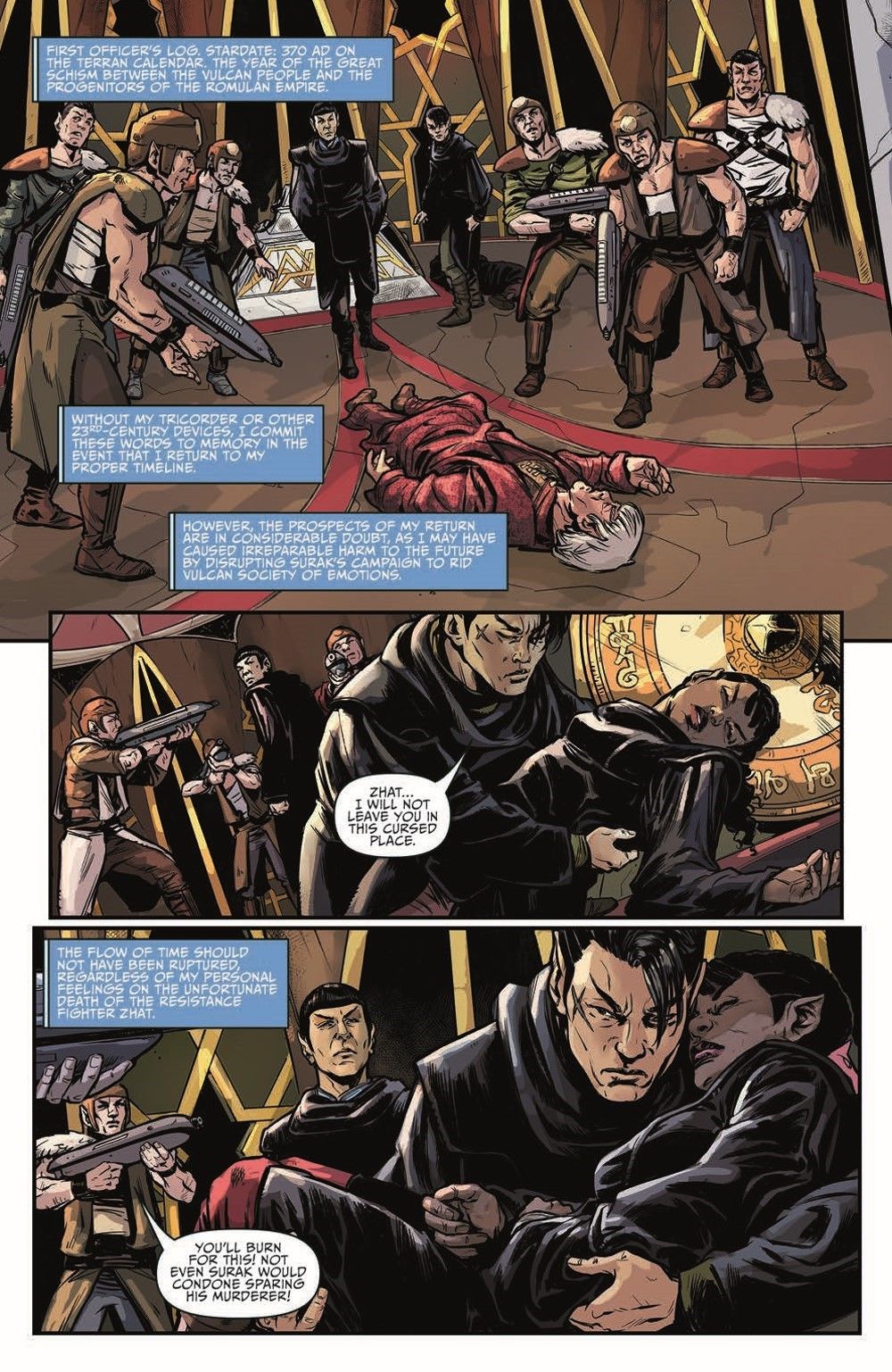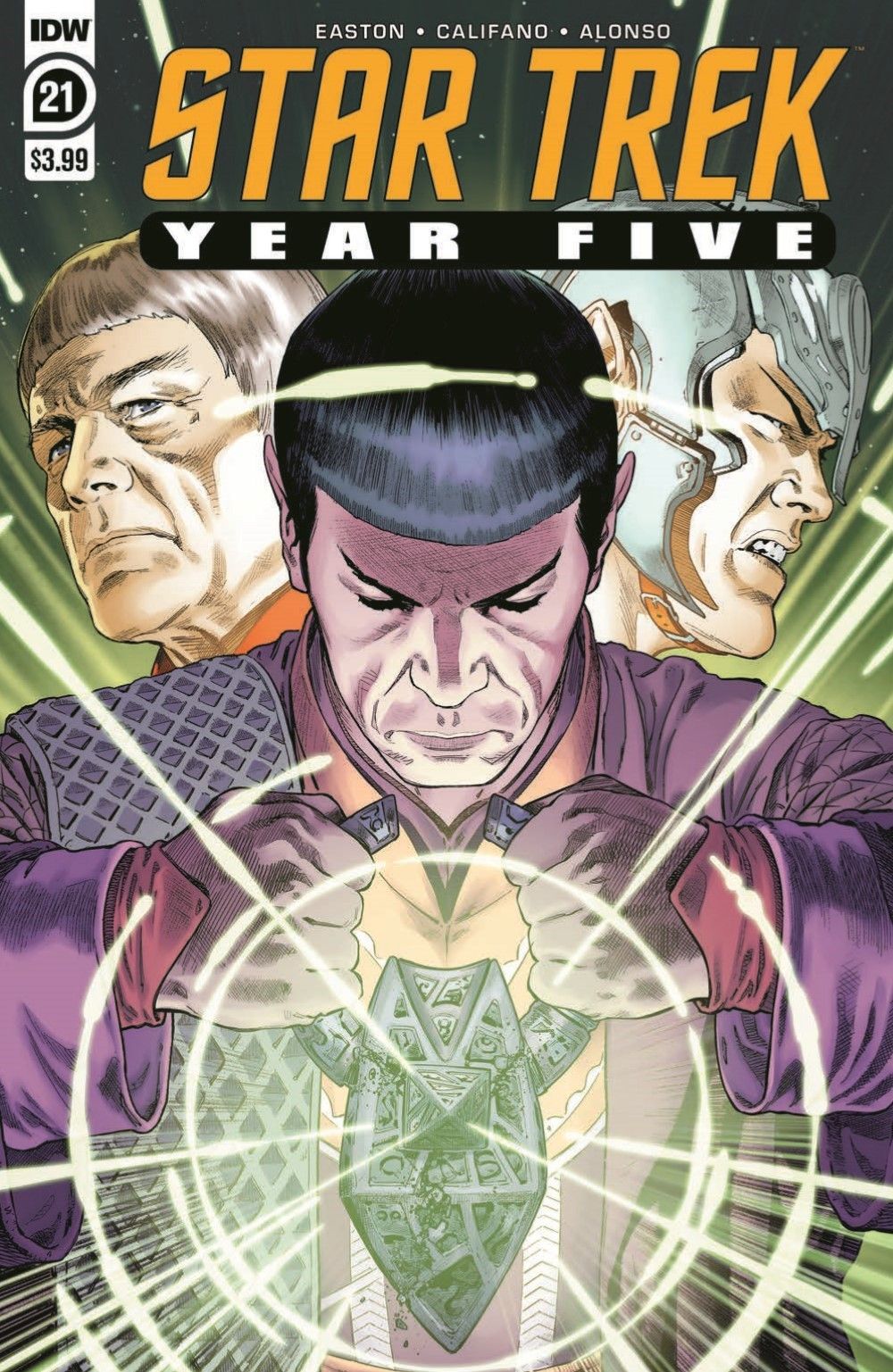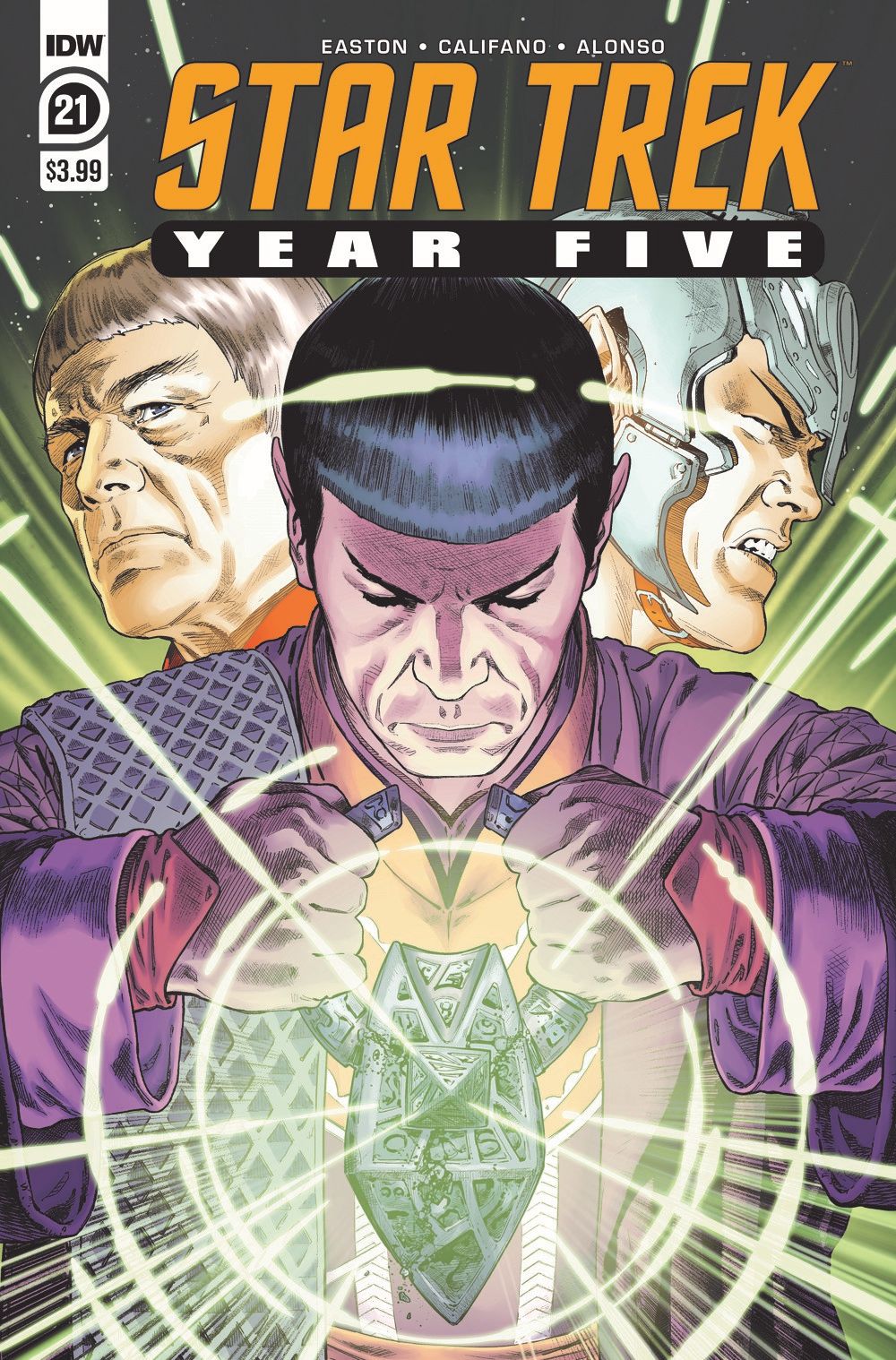 With Spock still missing, the crew of the Enterprise needs to figure out where—and when—he is if they want to save the future! Meanwhile, on Vulcan, Spock is faced with a choice that won't only change his life, but Vulcan society as he knows it! The final voyages of the original mission continue in this episode from writer Brandon Easton (Transformers: War for Cybertron, Thundercats) and artist Silvia Califano (Star Trek: Year Five, X-Files: Case Files)