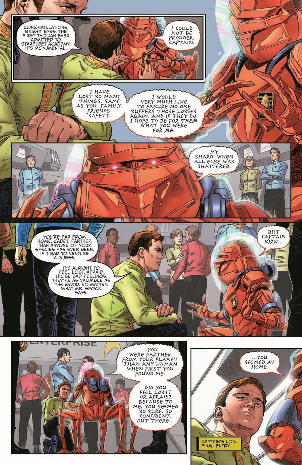 For five years, the U.S.S. Enterprise and her crew have journeyed to the edge of the known universe, tackling impossible challenges and menacing foes along the way. But the biggest challenge of all awaits them here at home… and no matter what happens, the lives of Captain Kirk and his crew will be changed forever. The grand finale of Star Trek: Year Five begins here with a new issue from showrunners Jackson Lanzing & Collin Kelly (Gotham City Garage, Green Arrow) and artist Stephen Thompson (Satellite Falling, Die Hard: Year One).