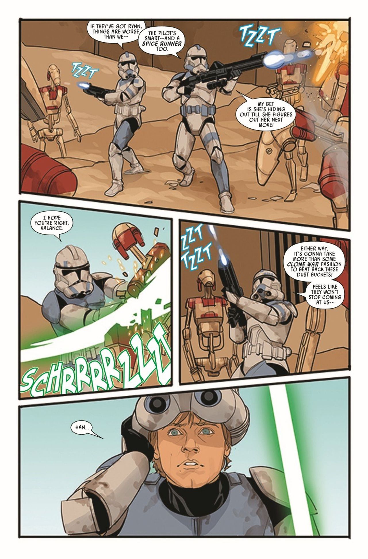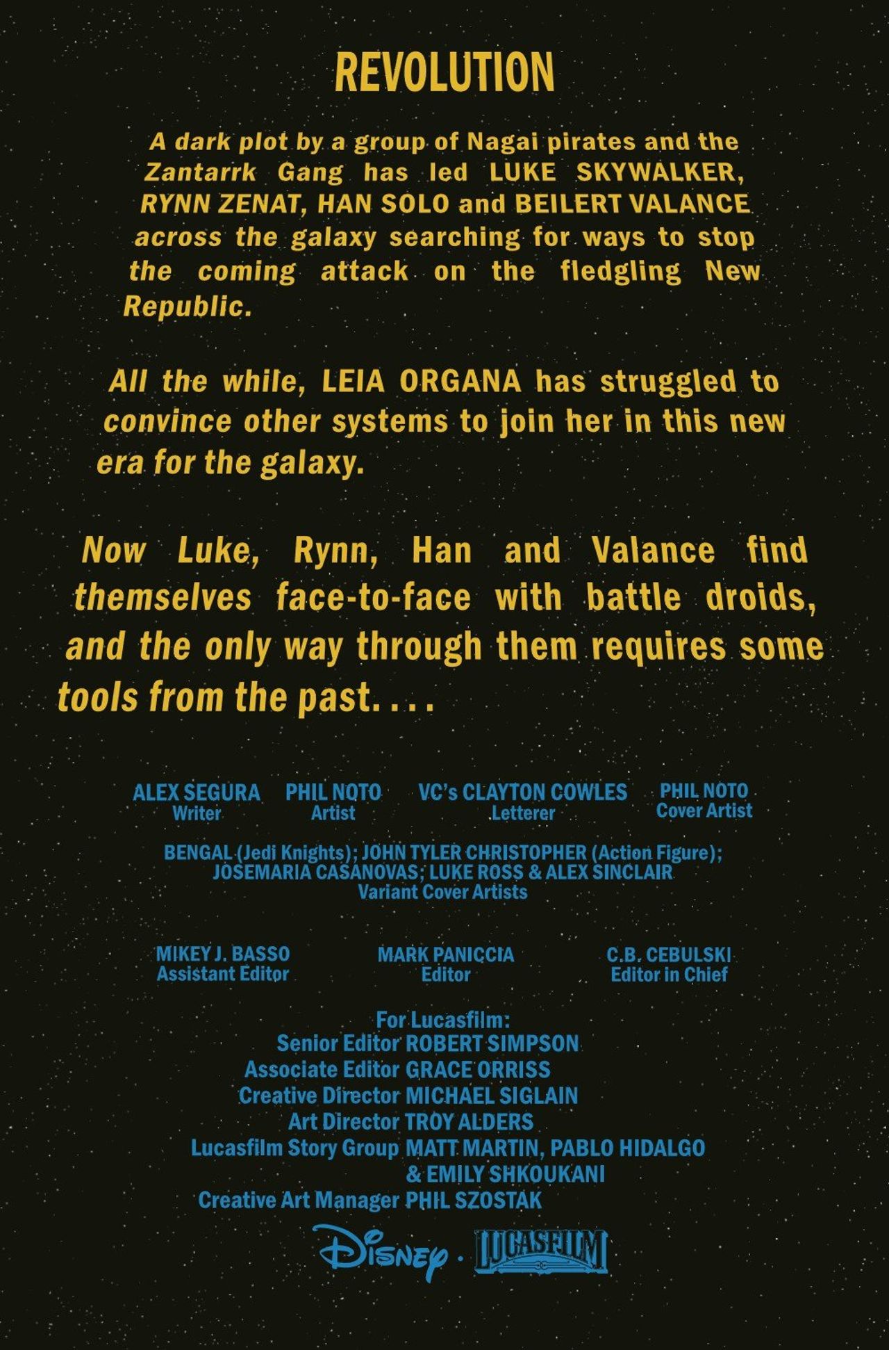 New Republic on the brink of war! LUKE, HAN and VALANCE face off against a swarm of Clone War-era threats! PRINCESS LEIA plays the only card she has left against the mounting threat! RYNN ZENAT discovers a clue that sheds light on the struggles of the mysterious NAGAI!