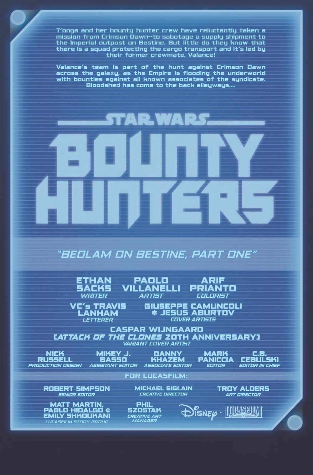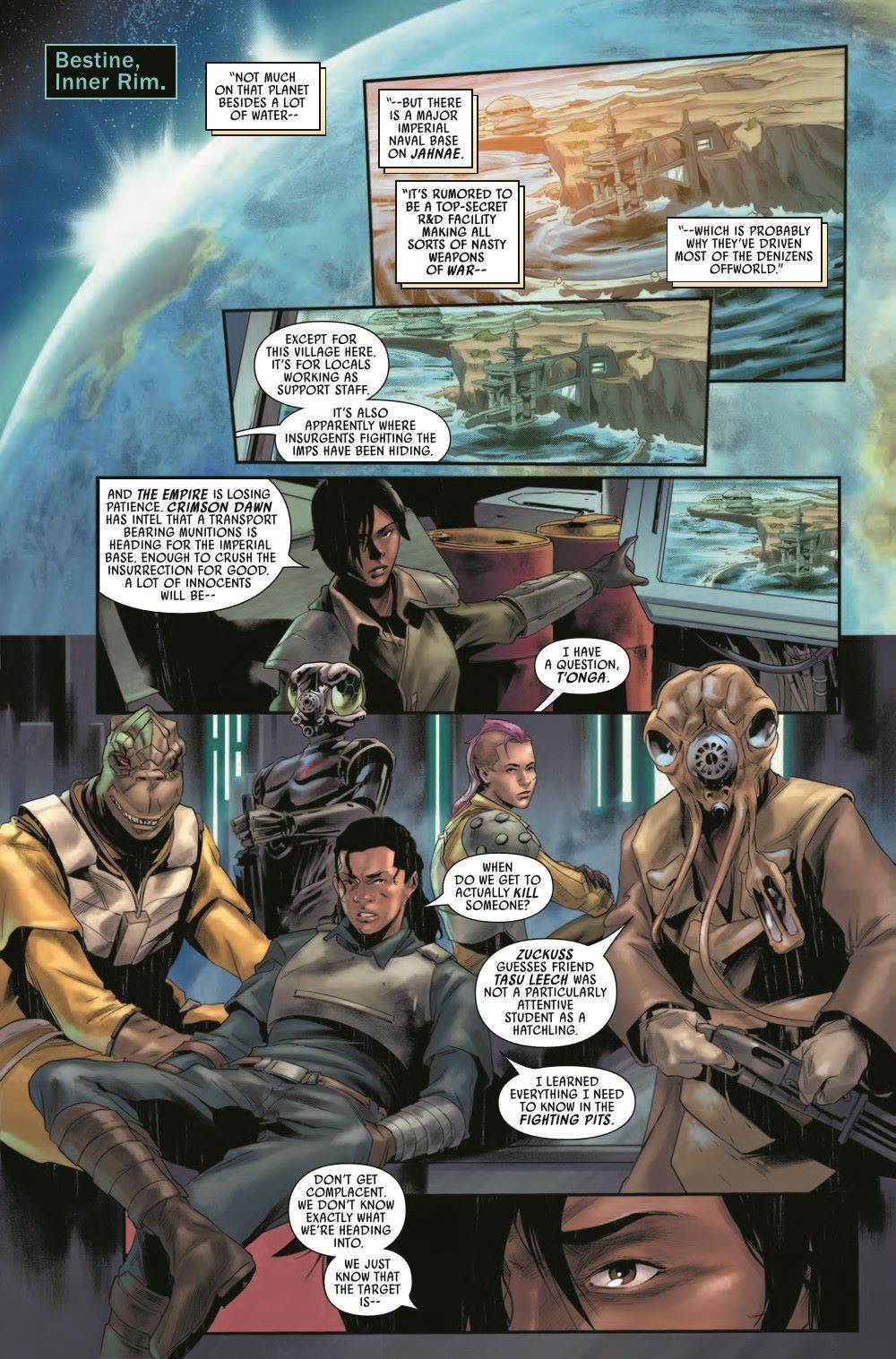 MISSION TO BESTINE IV! BOSSK VS. TANKA! Forced to take on a job for Crimson Dawn, the bounty hunters take on the Empire! Valance has a mission of his own, one that will put everyone he cares about in danger! What is the dark secret that threatens them all?