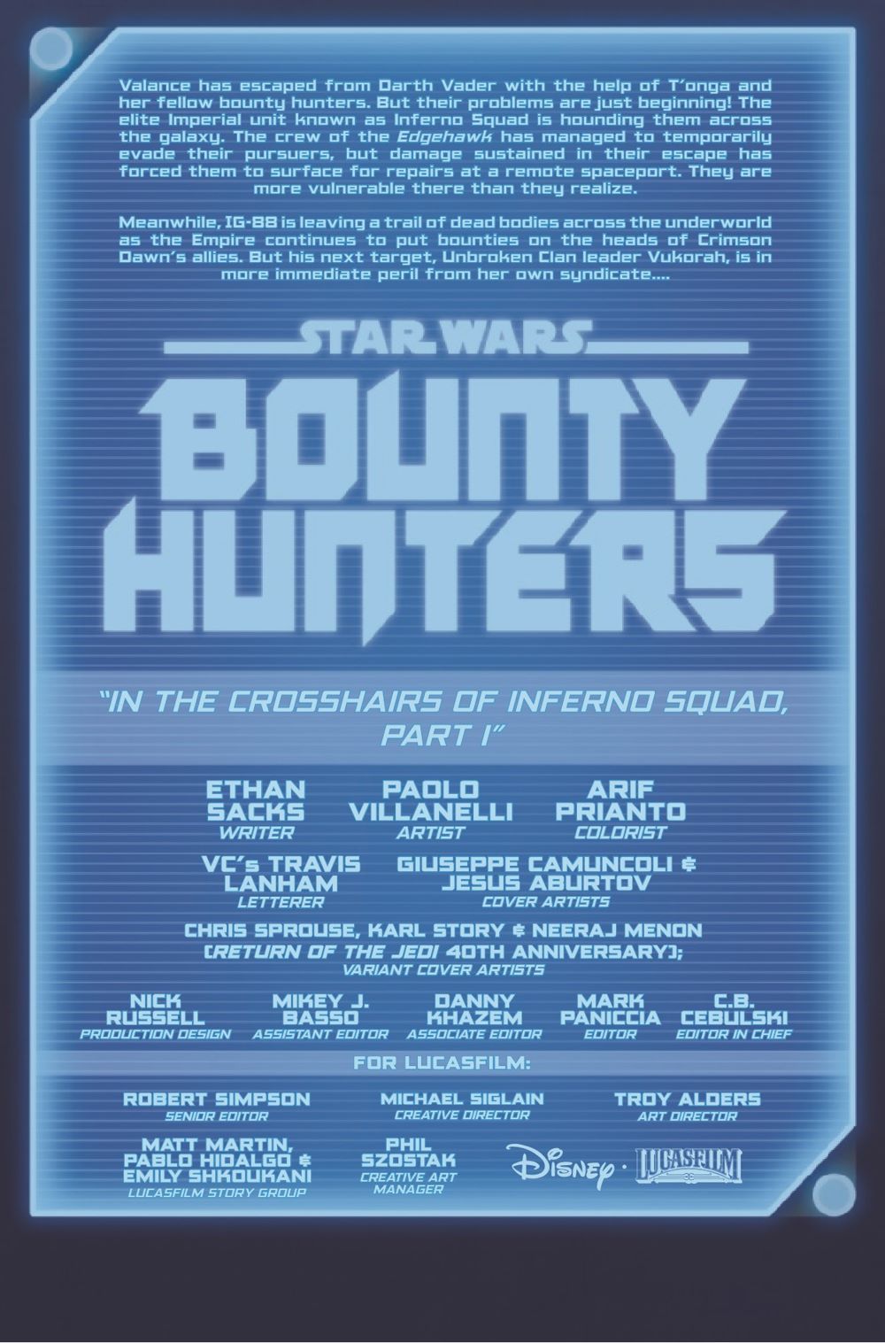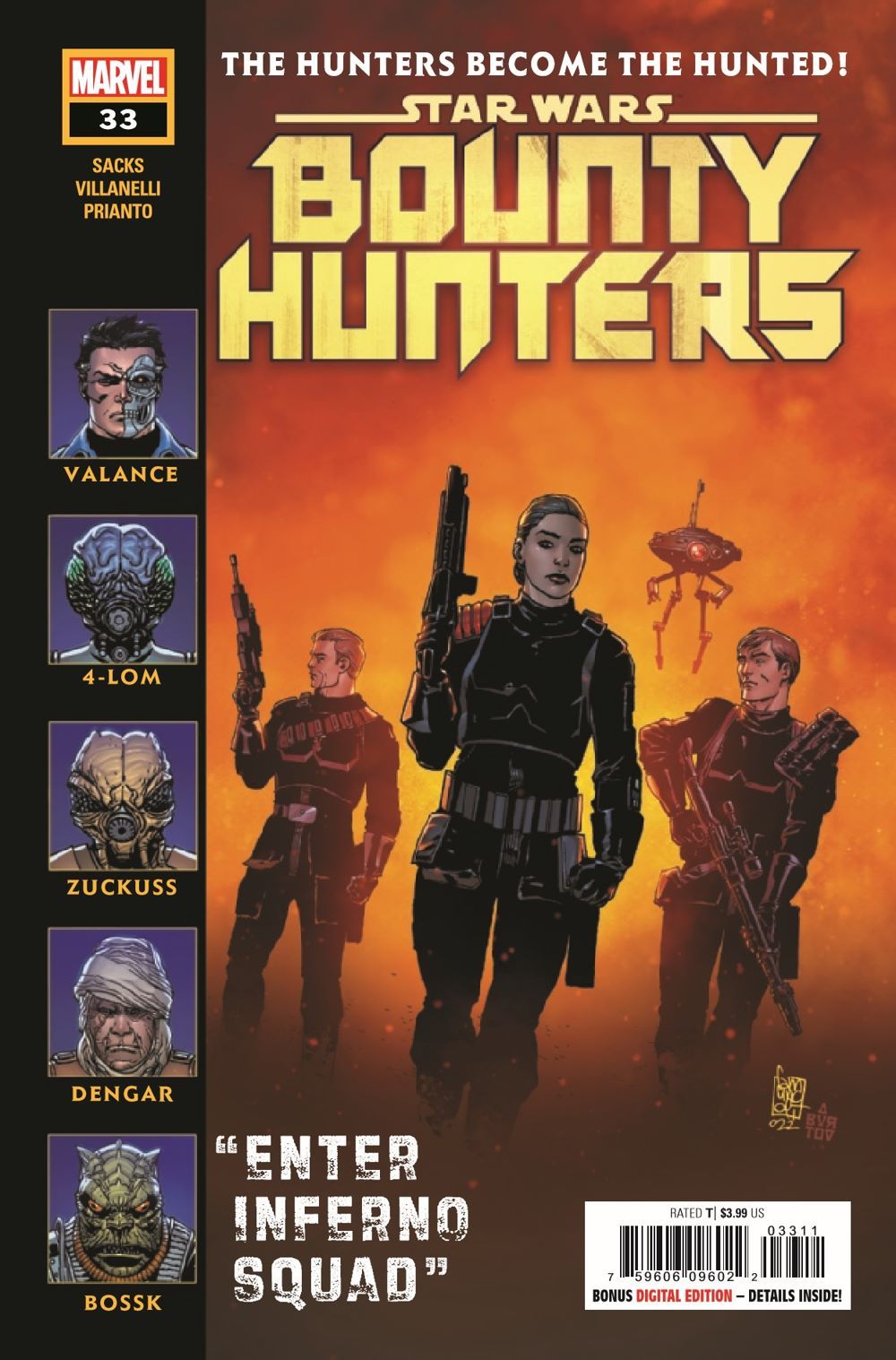 DARTH VADER'S INFERNO SQUAD STRIKES! • The DARK LORD has ordered one of the EMPIRE'S deadliest commando units to take out VALANCE, BOSSK, 4-LOM and ZUCKUSS! • Meanwhile, assassin droid IG-88 has his sights on another high-value target. But who is he after and who hired him? • Featuring fan favorites from the hit video game, STAR WARS: BATTLEFRONT II!