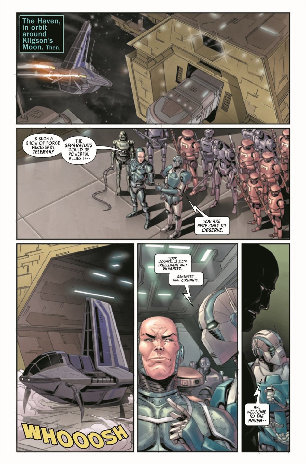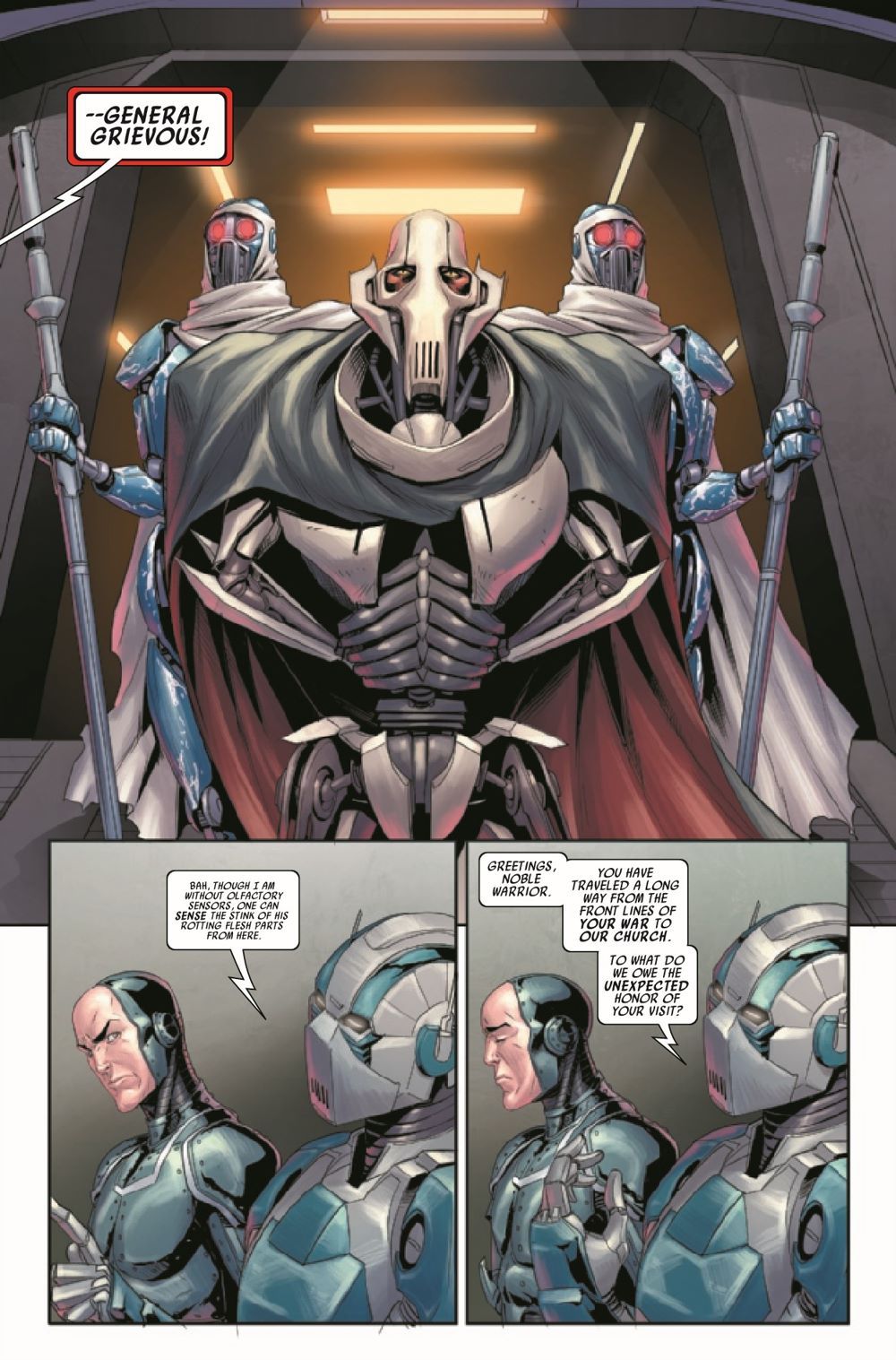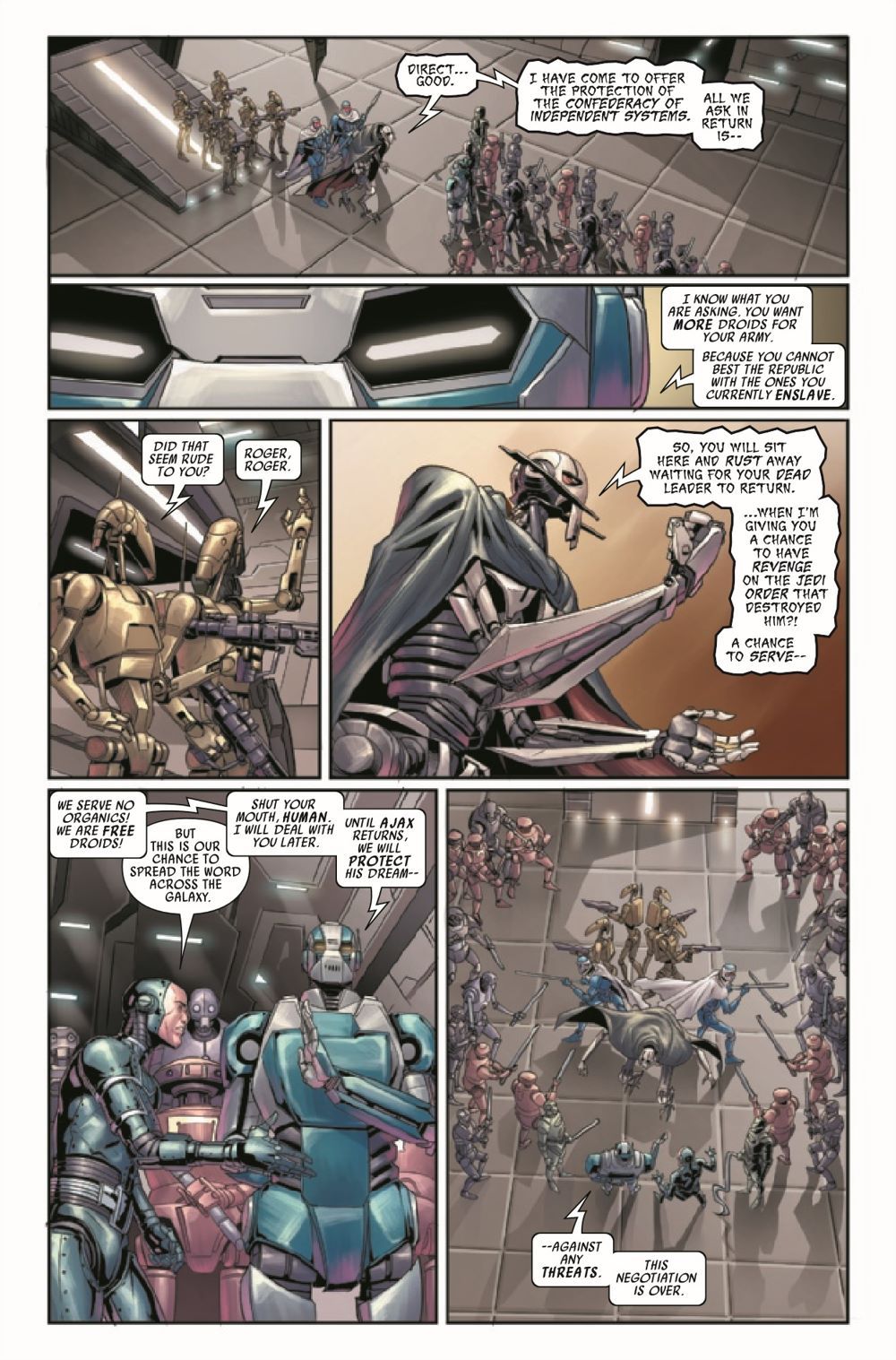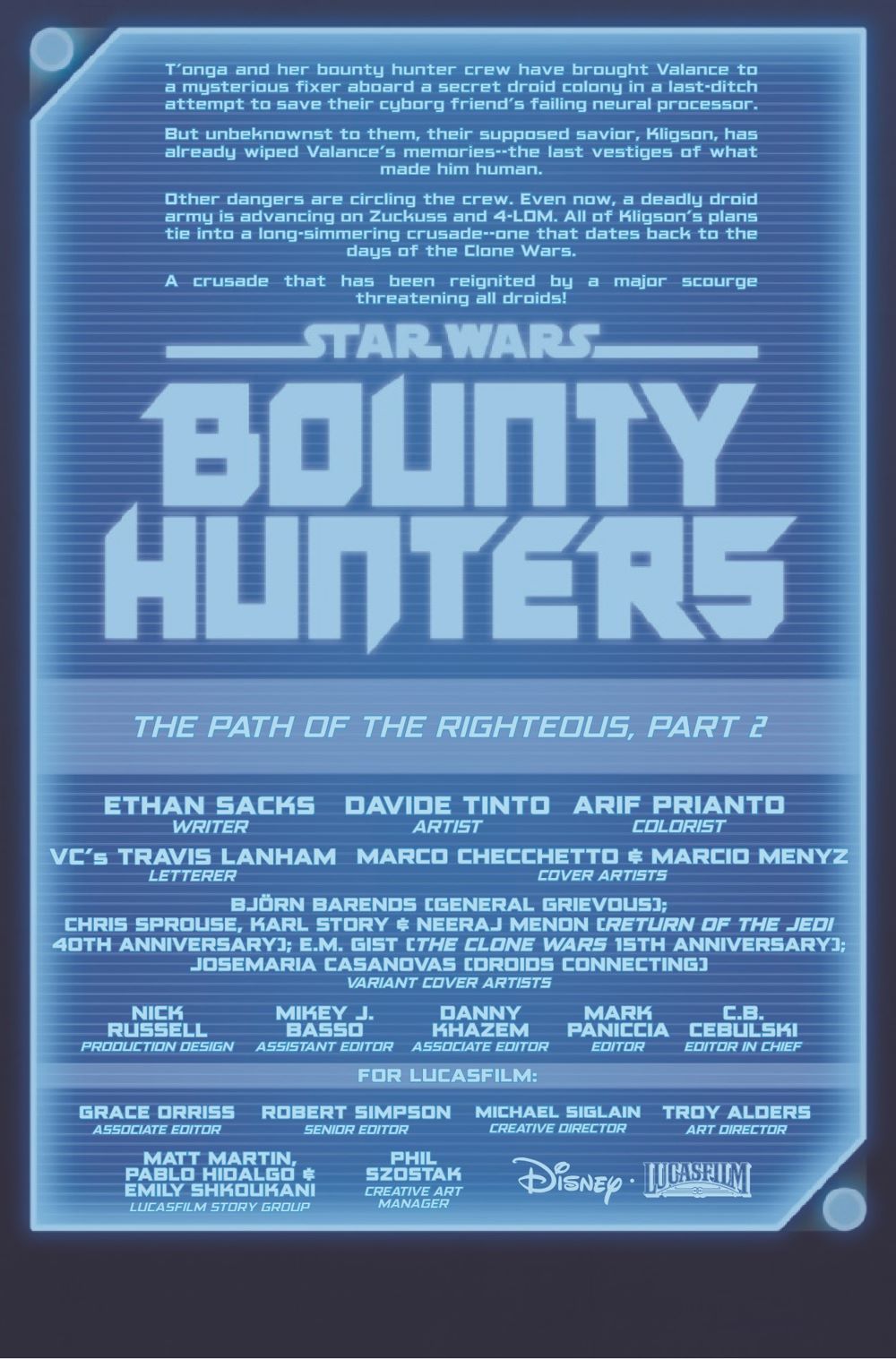 GRIEVOUS ATTACKS! - A DARK DROIDS TIE-IN! ZUCKUSS, 4-LOM and their fellow bounty hunters face a deadly droid ambush! VALANCE's life hangs in the balance! What role has GENERAL GRIEVOUS played in the chaos roiling the galaxy?