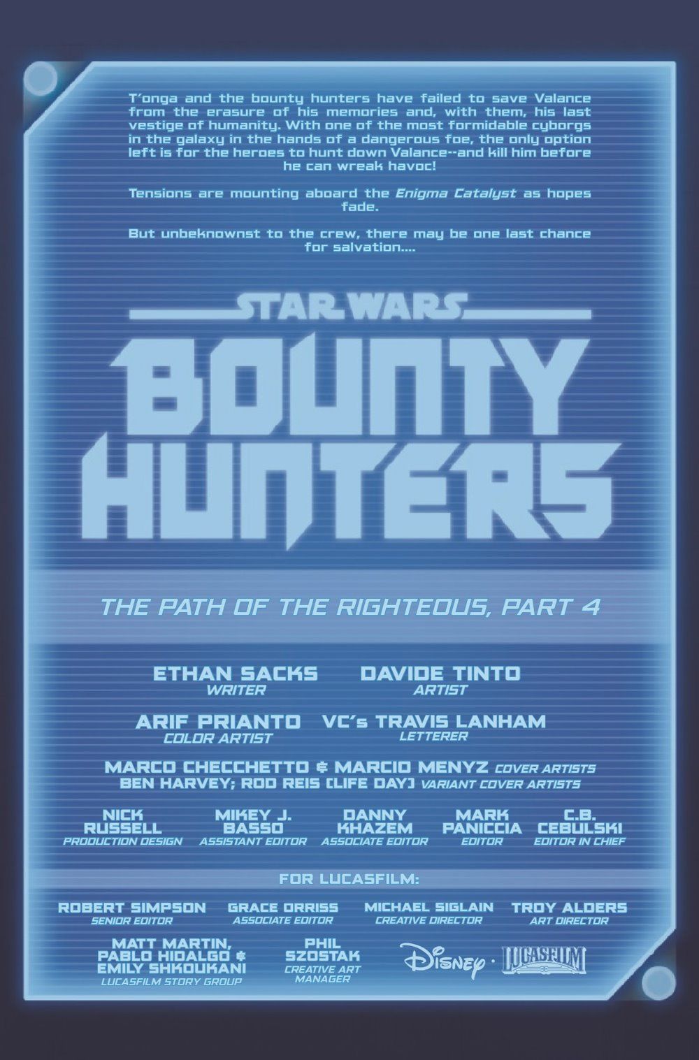 THE SHOCKING BETRAYAL! - A DARK DROIDS TIE-IN! The Galaxy's deadliest BOUNTY HUNTERS must stop a corrupted VALANCE! Even if it means his death!!! ENEMIES become desperate ALLIES! And who is the wolf in the fold in the BOUNTY HUNTERS' MIDST?