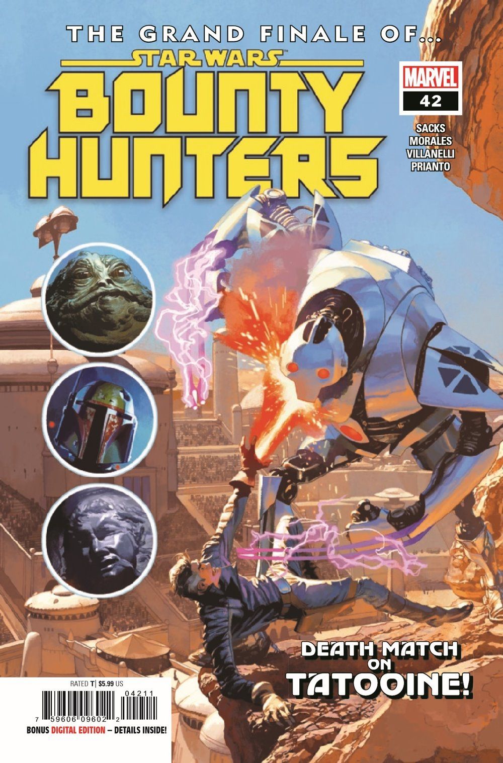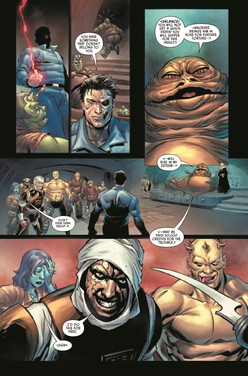 THE EXPLOSIVE END OF THE SAGA! VALANCE THE BOUNTY HUNTER has one final mission to complete…and it may indeed be his LAST! Can he and the crew fight their way past BOBA FETT…and JABBA's SECRET WEAPON? The GRAND FINALE of the series that's four years in the making!
