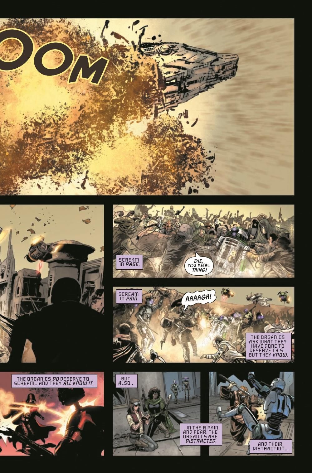 THE TERRIFYING CONCLUSION OF THE BIGGEST STAR WARS COMIC EVENT OF THE YEAR! The final triumph of THE SCOURGE! How can THE REBELLION & THE EMPIRE combat such a threat? UNLIKELY ALLIES join forces to fight the greater evil invading the galaxy! And what is the final fate of warrior droid Ajax Sigma?