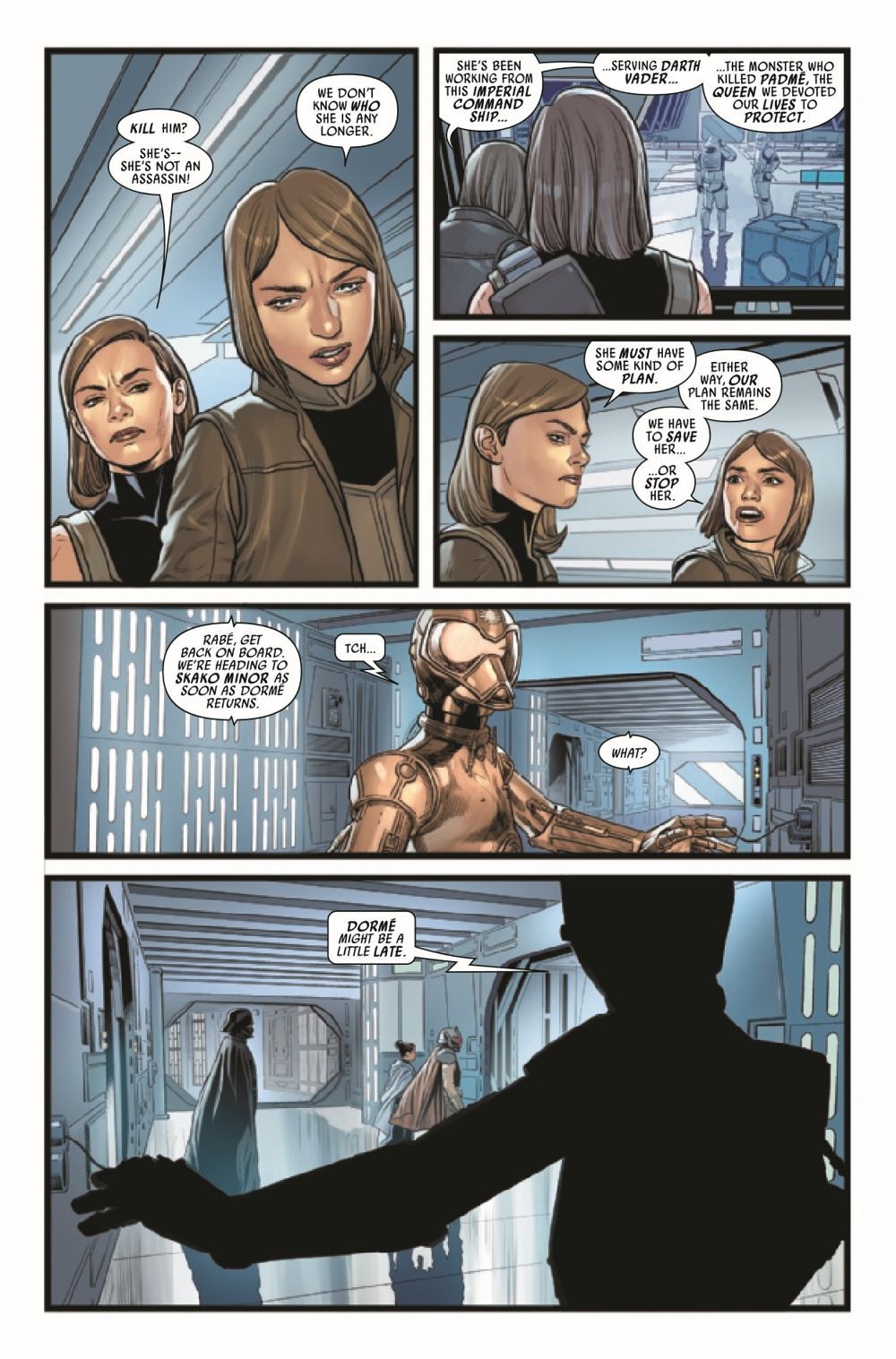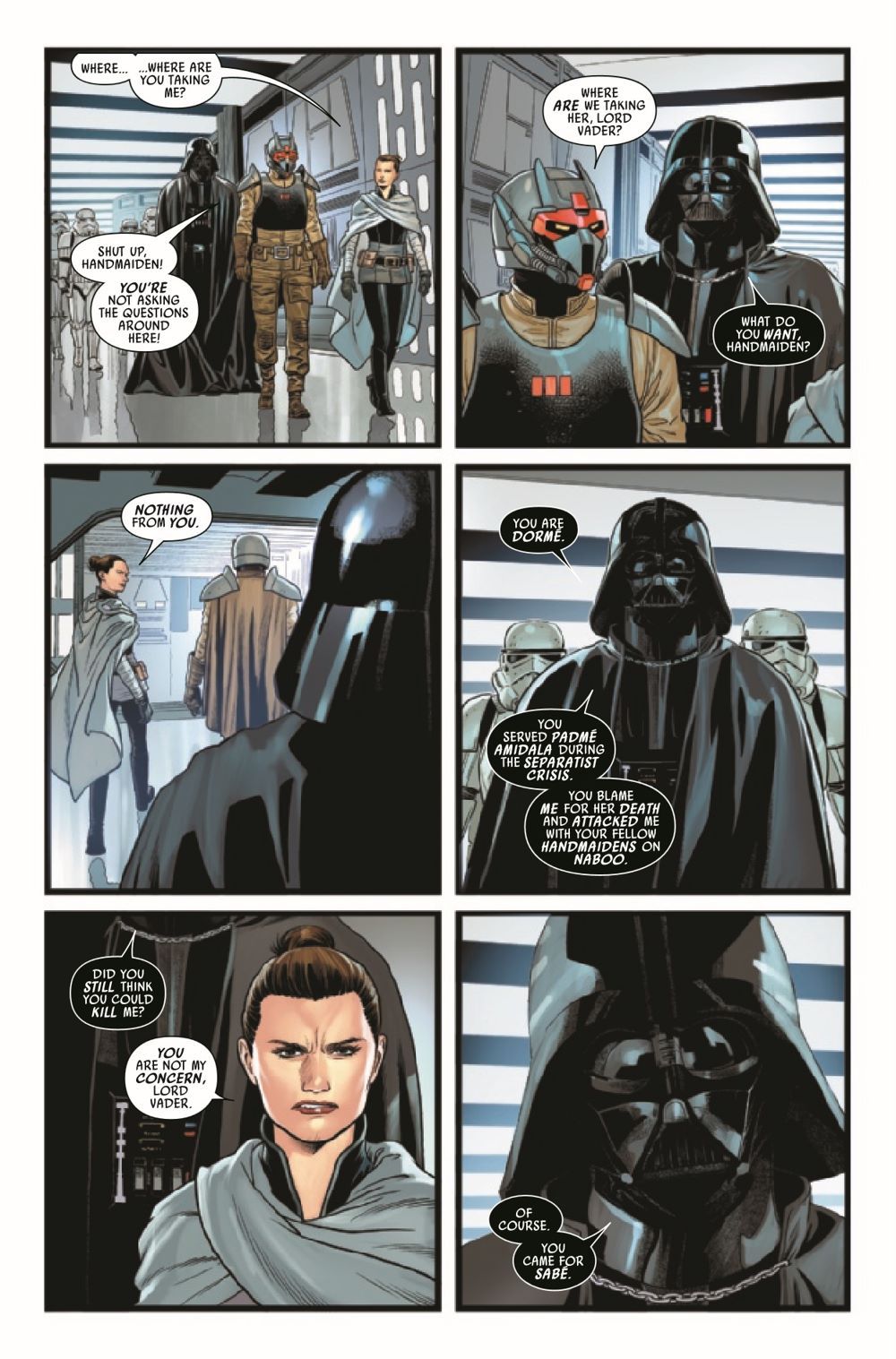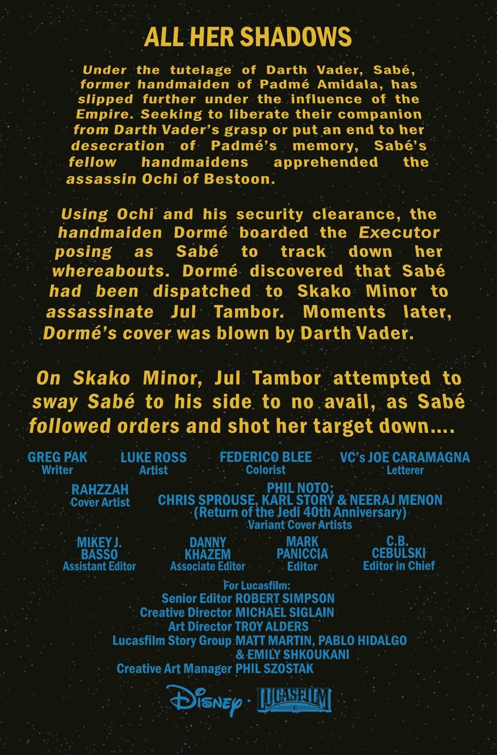 ALL HER SHADOWS! During their terrible battle at Padmé's tomb on Naboo, the Queen's most devoted handmaidens were no match for the fury of Darth Vader. So as they are about to face the Dark Lord again, the handmaidens have prepared. But so has Vader. Who will triumph in the rematch? And what dark price will that victory exact?