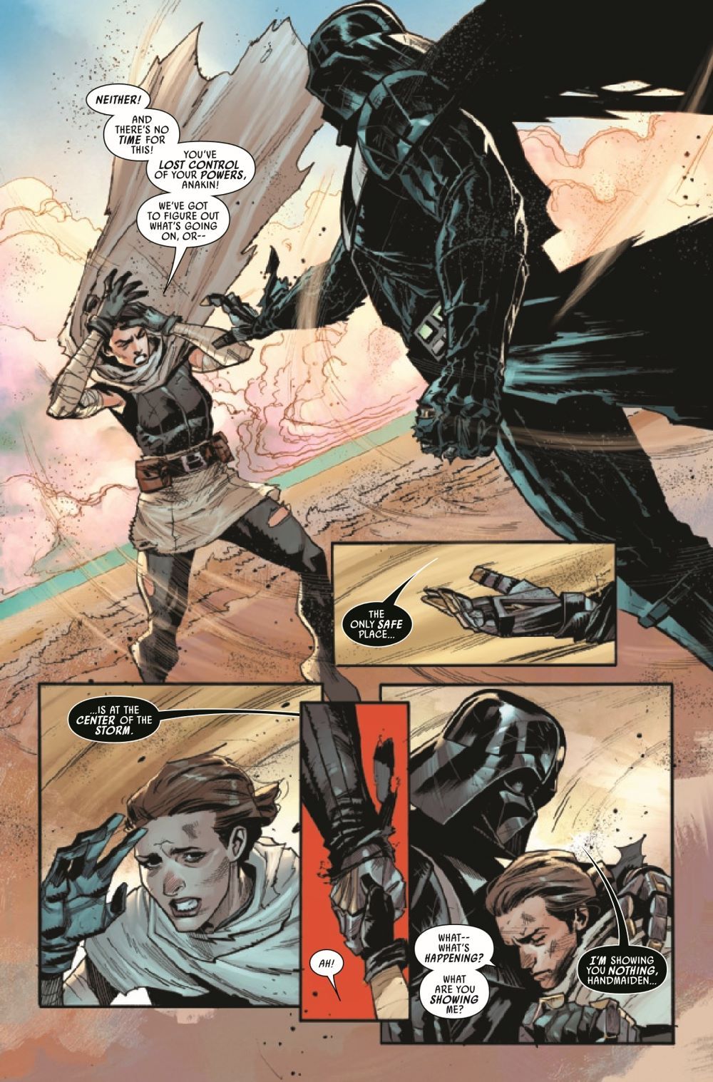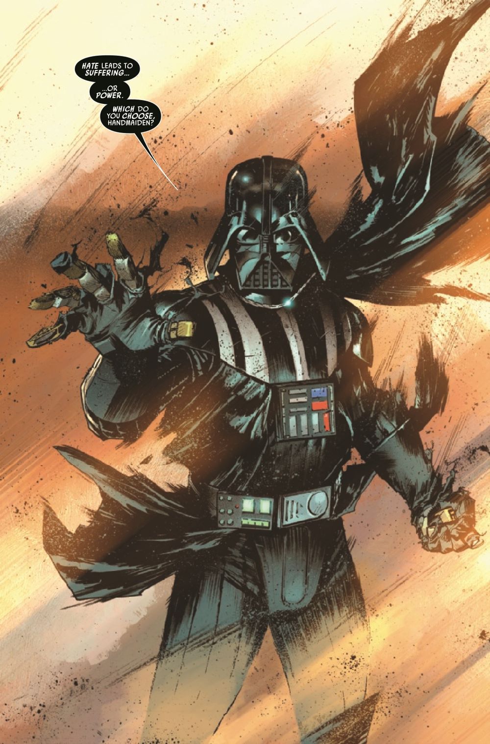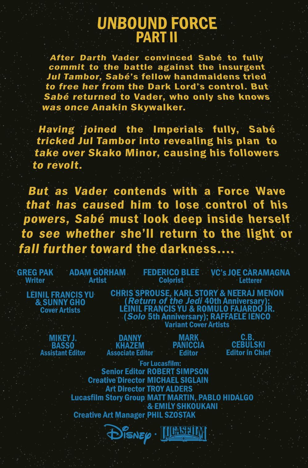 UNBOUND FORCE - Part TWO! According to the JEDI, fear leads to anger, and anger leads to hate. But does hate lead to suffering...or power? As DARTH VADER'S Force abilities spiral out of control, his lieutenant Sabé is caught in the maelstrom - and finally must confront the horrifying consequences of her choice to serve him. Will she choose darkness over light?
