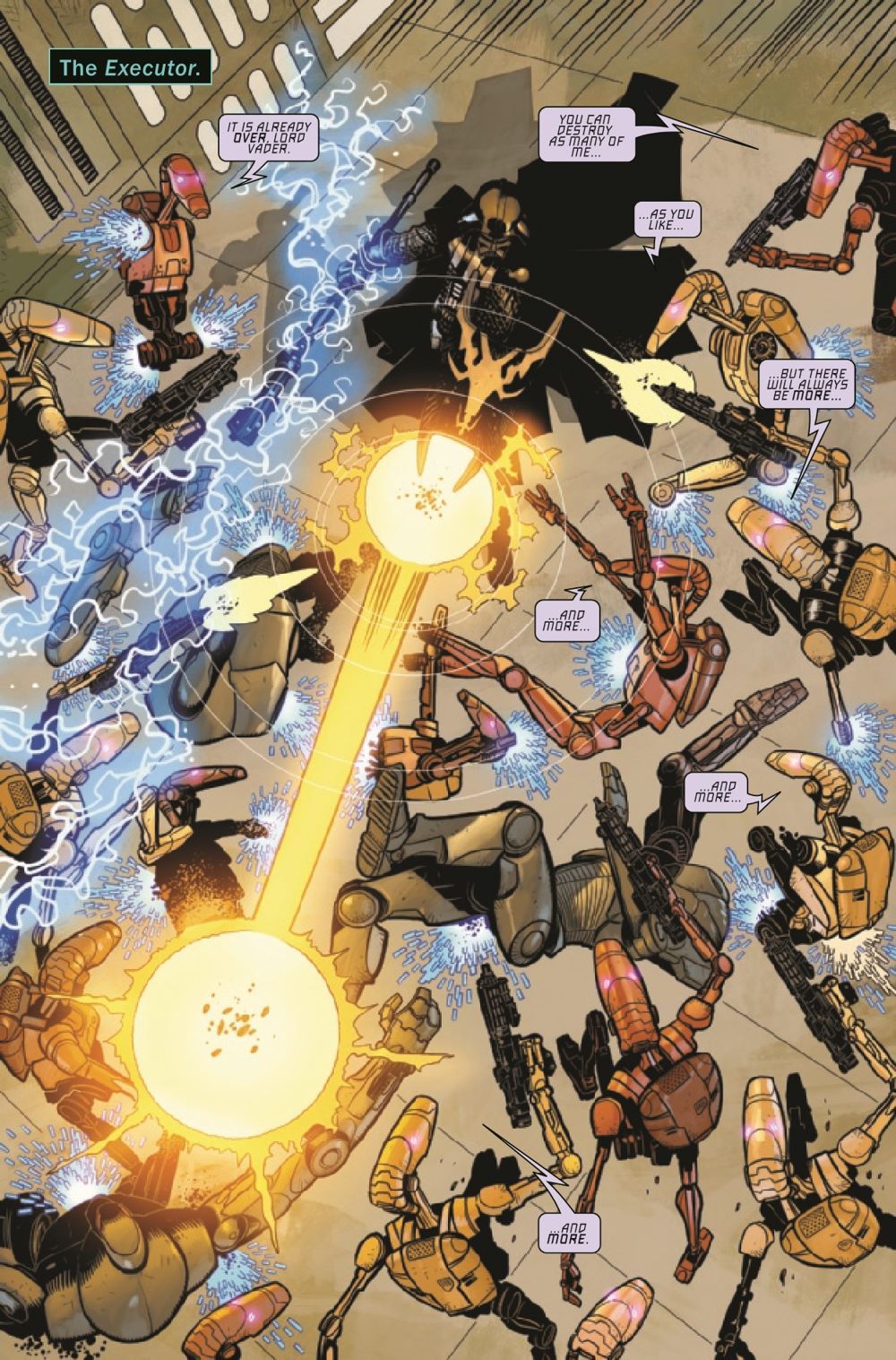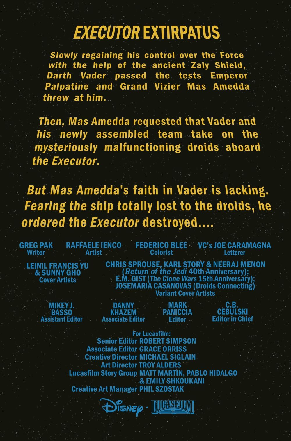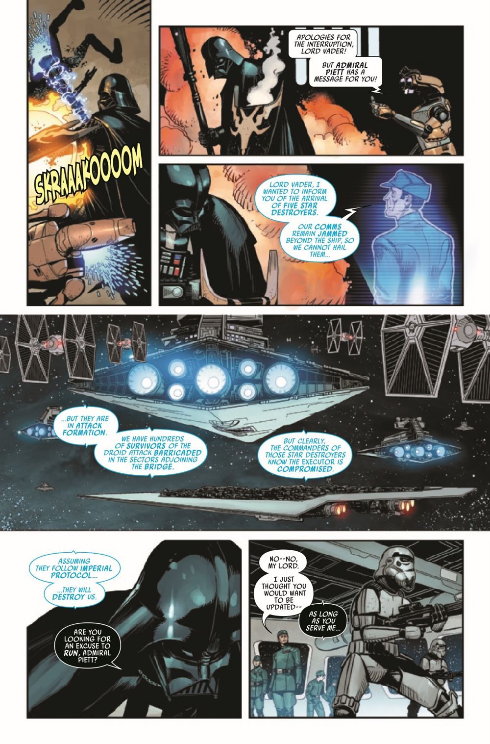THE SCOURGE COMES FOR THE EXECUTOR! - A DARK DROIDS TIE-IN! As DARTH VADER'S Super Star Destroyer flagship faces its deadliest threat ever, the DARK LORD fights the war on two fronts - against a horde of SCOURGED DROIDS...and against the forces of THE EMPIRE itself! Featuring a rare glimpse into the true character of ADMIRAL PIETT!