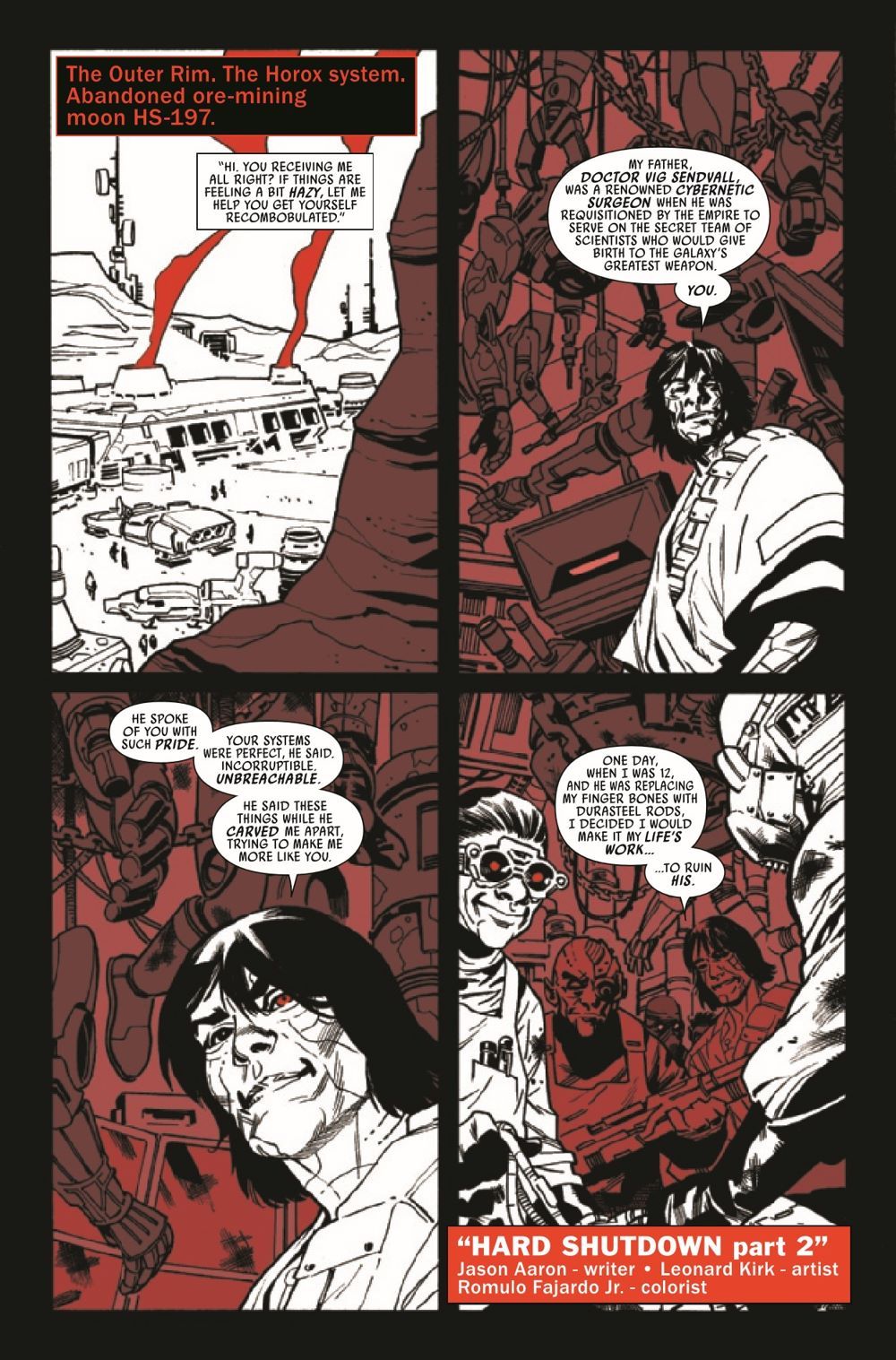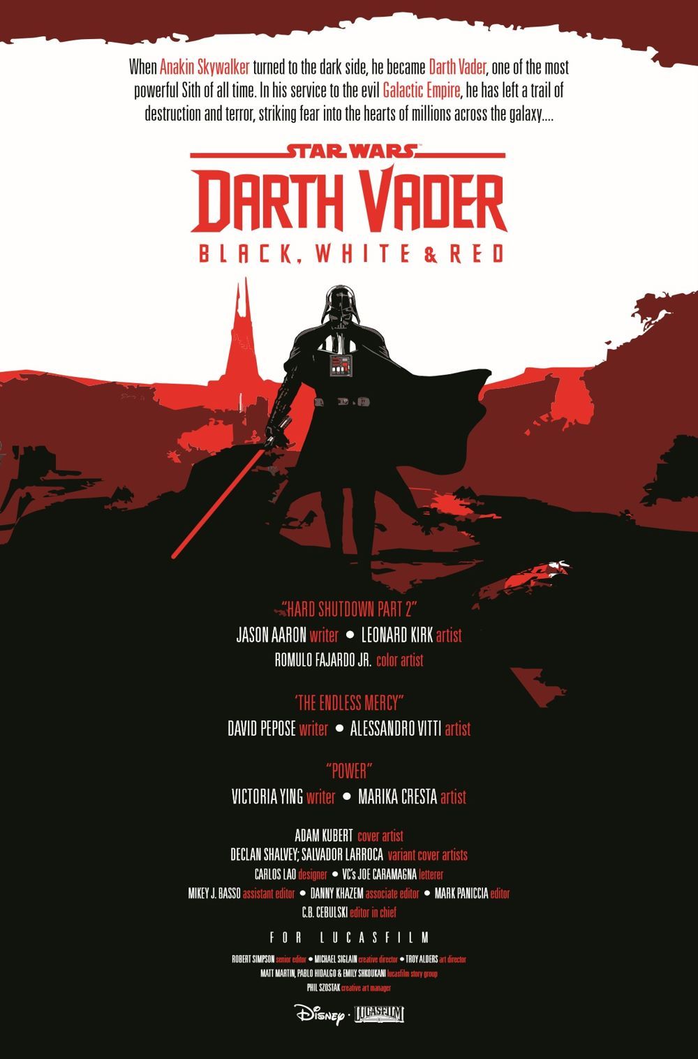JASON AARON CONTINUES HIS RETURN TO THE GREATEST VILLAIN IN THE GALAXY! Along with artist LEONARD KIRK, these two titans of comics tell a tale of horror and intrigue! PLUS, David Pepose makes his STAR WARS debut!