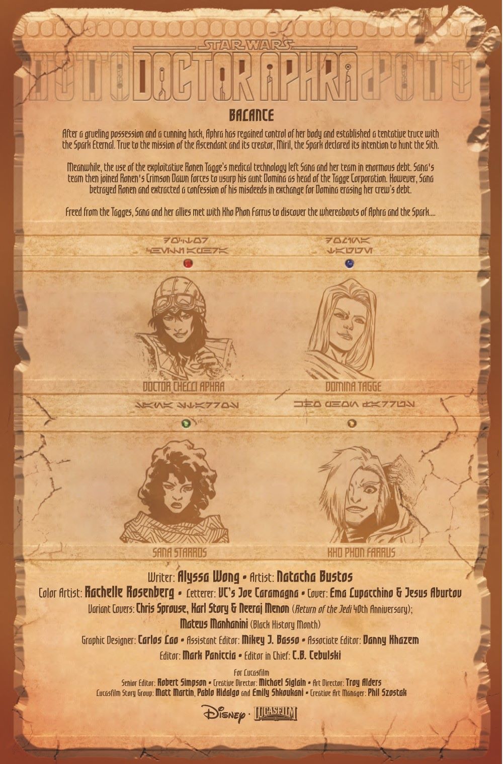 TO THE BONE. The SPARK ETERNAL sets its sights on CRIMSON DAWN! As SANA STARROS and MAGNA TOLVAN race to intercept it, will DOCTOR APHRA'S most desperate gambit pay off? Or will she be lost to the SPARK ETERNAL forever?