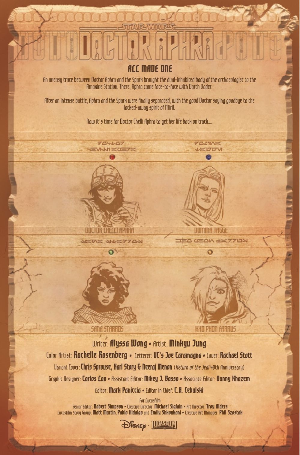 THE PARTING GLANCE! • Is this the end of the line for former allies APHRA and TOLVAN? • DARTH VADER'S least favorite archaeologist must face a cold hard truth that will shake her to her core!!! • Can she forgive herself for the chaos she's about to unleash upon the galaxy?
