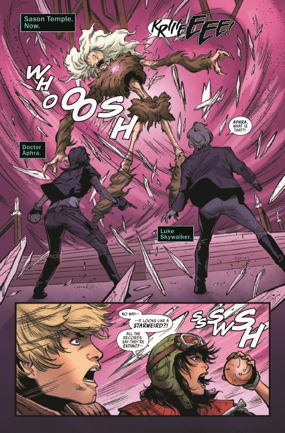 ENTER THE STARWEIRD! Long ago, Jedi Masters SHAAK TI and AAYLA SECURA sealed away a GREAT AND TERRIBLE POWER... ...a horrifying, ancient creature that RESONATES WITH THE FORCE... ...and DOCTOR APHRA and LUKE SKYWALKER have just released it!