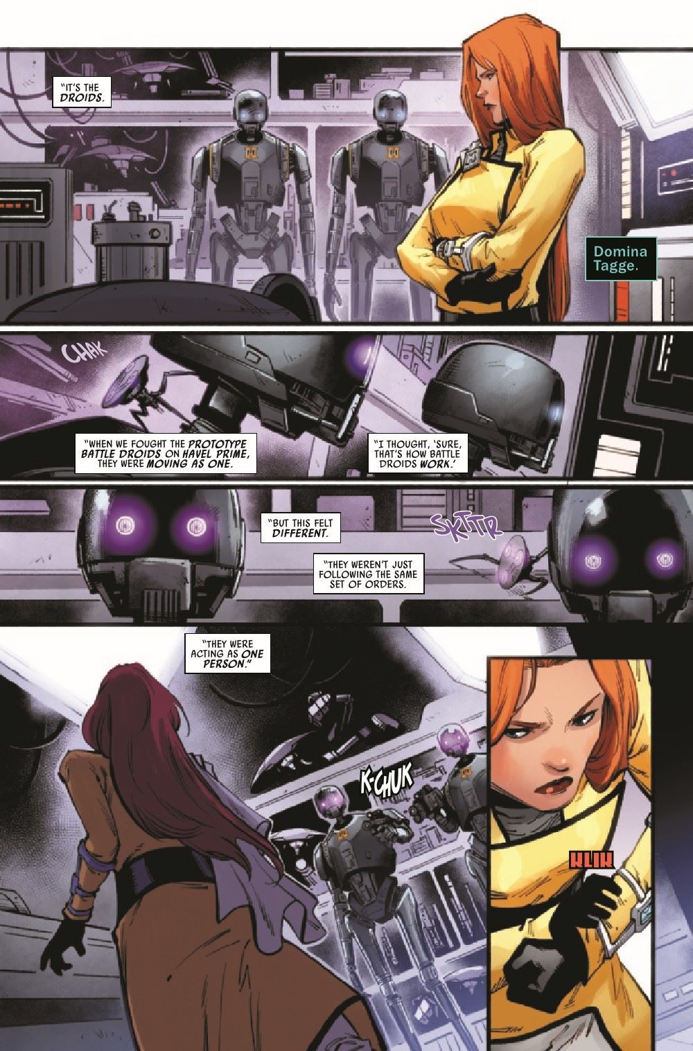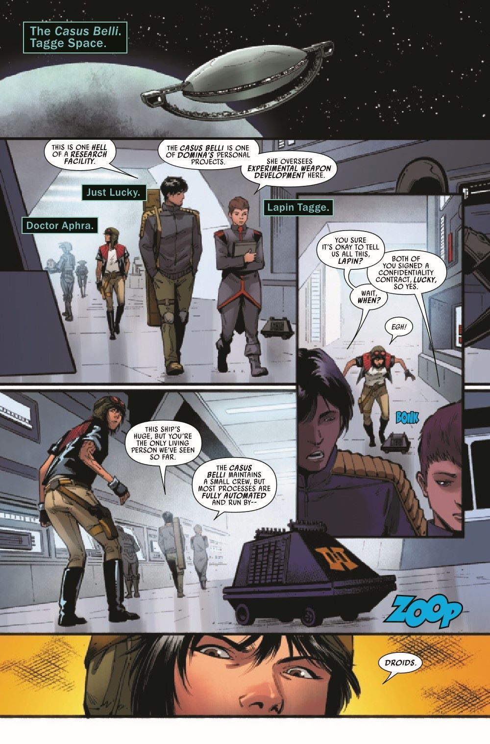 THE SHIP IS ALIVE! - A DARK DROIDS TIE-IN! DOCTOR APHRA and DOMINA TAGGE fight for their lives aboard a battleship that anticipates their every move! Meanwhile, MAGNA TOLVAN faces horrors that will change her forever!