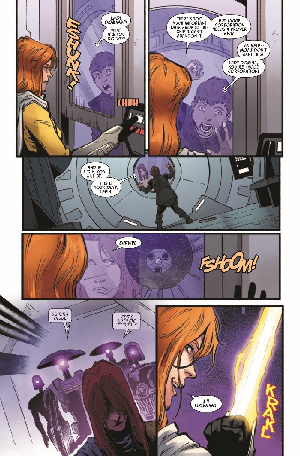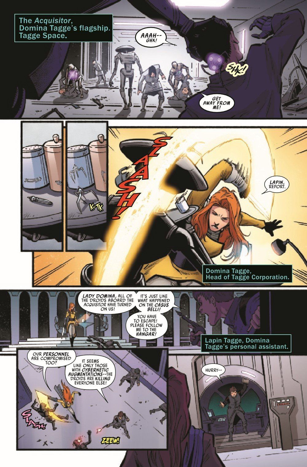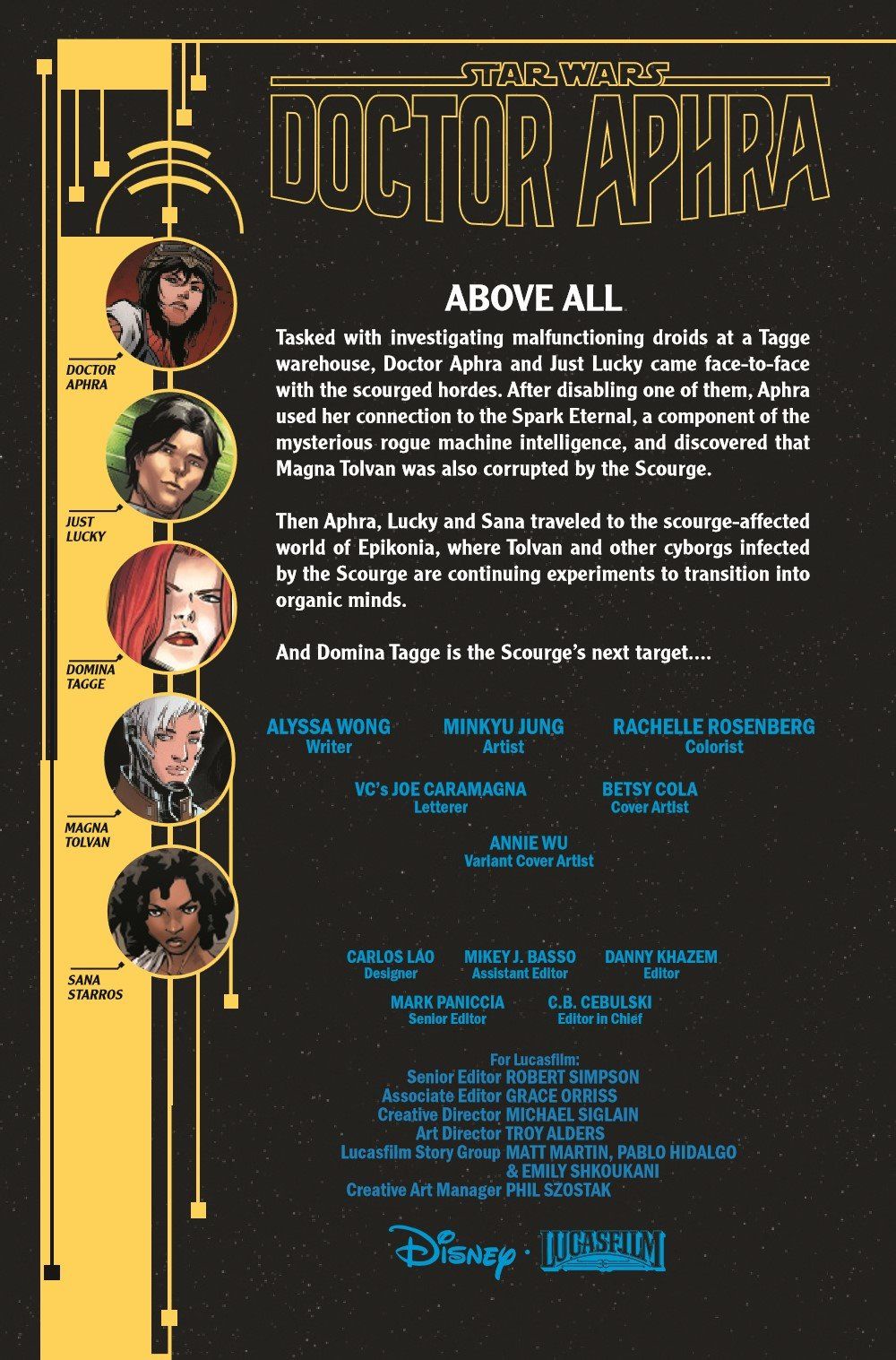 ABOVE ALL! - A DARK DROIDS TIE-IN! The SCOURGE sets its sights on TAGGE CORPORATION...and DOMINA TAGGE! As the ACQUISITOR falls from the sky, DOCTOR APHRA fights for survival... ...against an entity that threatens to consume everything she loves! (Including herself!)