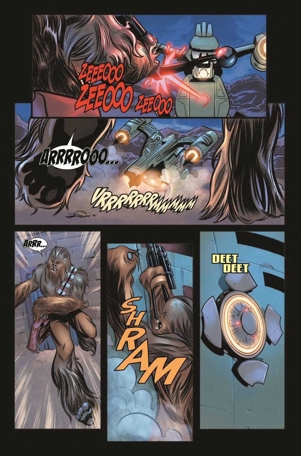 OH…SHYRIIWOOK! HARROO! RHOO AAHH! HRRG!!! (TRANSLATION: It's a Chewbacca-centric special issue as Chewie fights to rescue his friend Han.) HRRARRARGH AAHHRA HUGGG! (TRANSLATION: Guest-starring the one-and-only KRRSANTAN!) RRRAHARRR RAAA HRRRA! (TRANSLATION: You don't want to miss this one!)