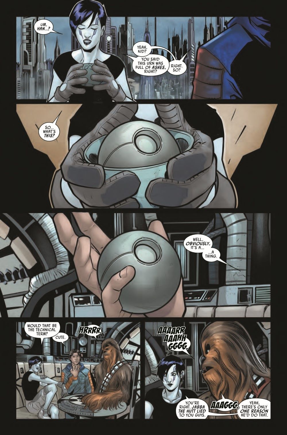"GET IN THERE, YOU BIG, FURRY OAF!" What's inside the urn that Jabba the Hutt wants so badly? Hint: It's not ashes. Guest-starring Ugnaught Sava Korin Pers. This issue ties in directly to Revelations!