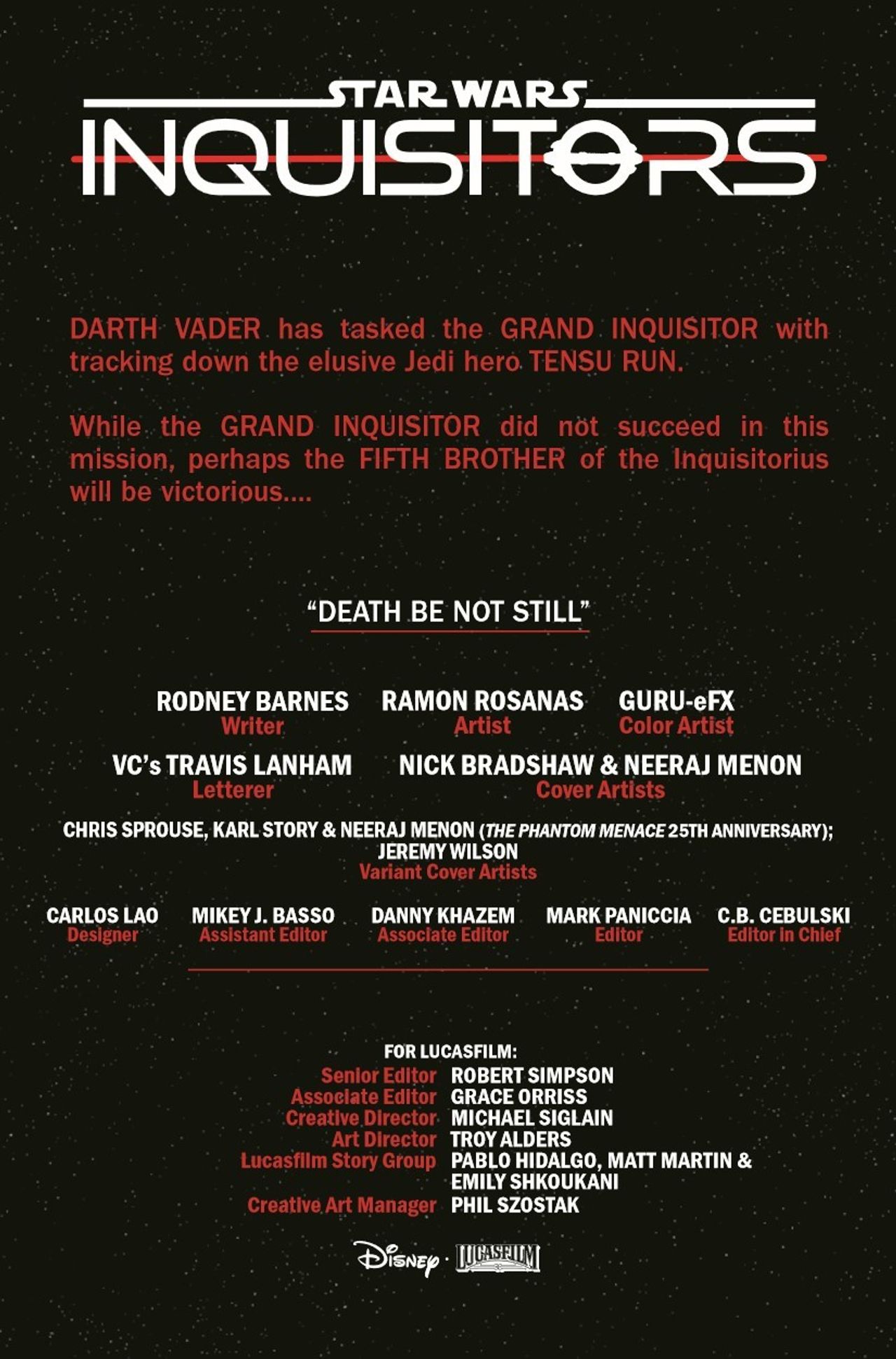 DARTH VADER SENDS FIFTH BROTHER ON A MISSION TO KILL A JEDI LEGEND! The EMPEROR has had most of the JEDI exterminated after the events of ORDER 66! Some have escaped! THE INQUISITORS are charged with hunting the survivors down. But there is one, a knight named TENSU RUN, who is on DARTH VADER'S most-wanted list! Who is Tensu Run, and what threat does he pose to the DARK LORD?
