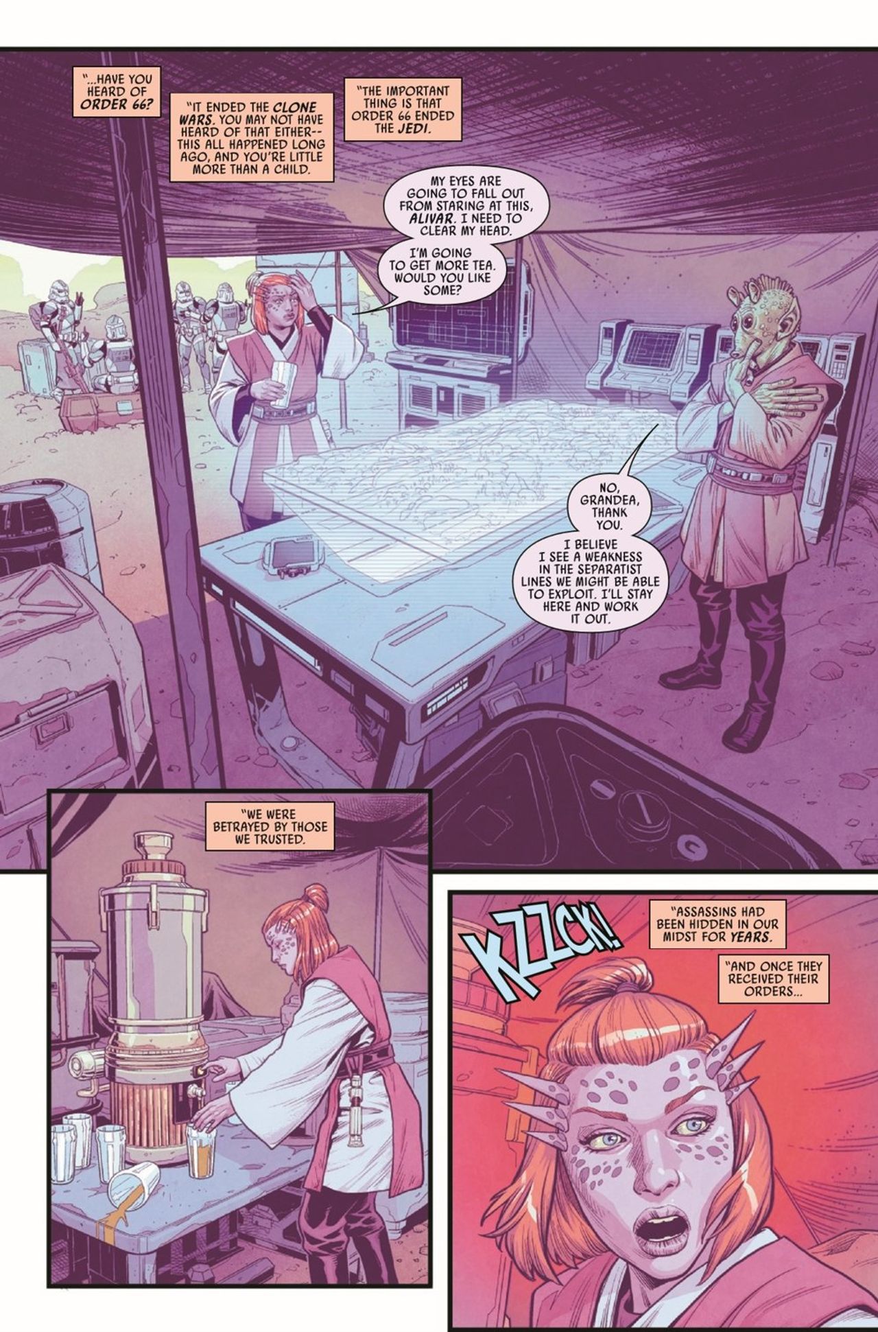 KYLO REN TAKES ON A SURVIVOR OF ORDER 66! On a distant, snow-covered planet, KYLO REN has met his match against former JEDI GRANDEA! Witness flashbacks to the CLONE WARS ERA and GRANDEA's daring use of the FORCE in the face of ultimate betrayal! Will the survivor of the worst tragedy to befall the Jedi be able to change Kylo's evil ways?
