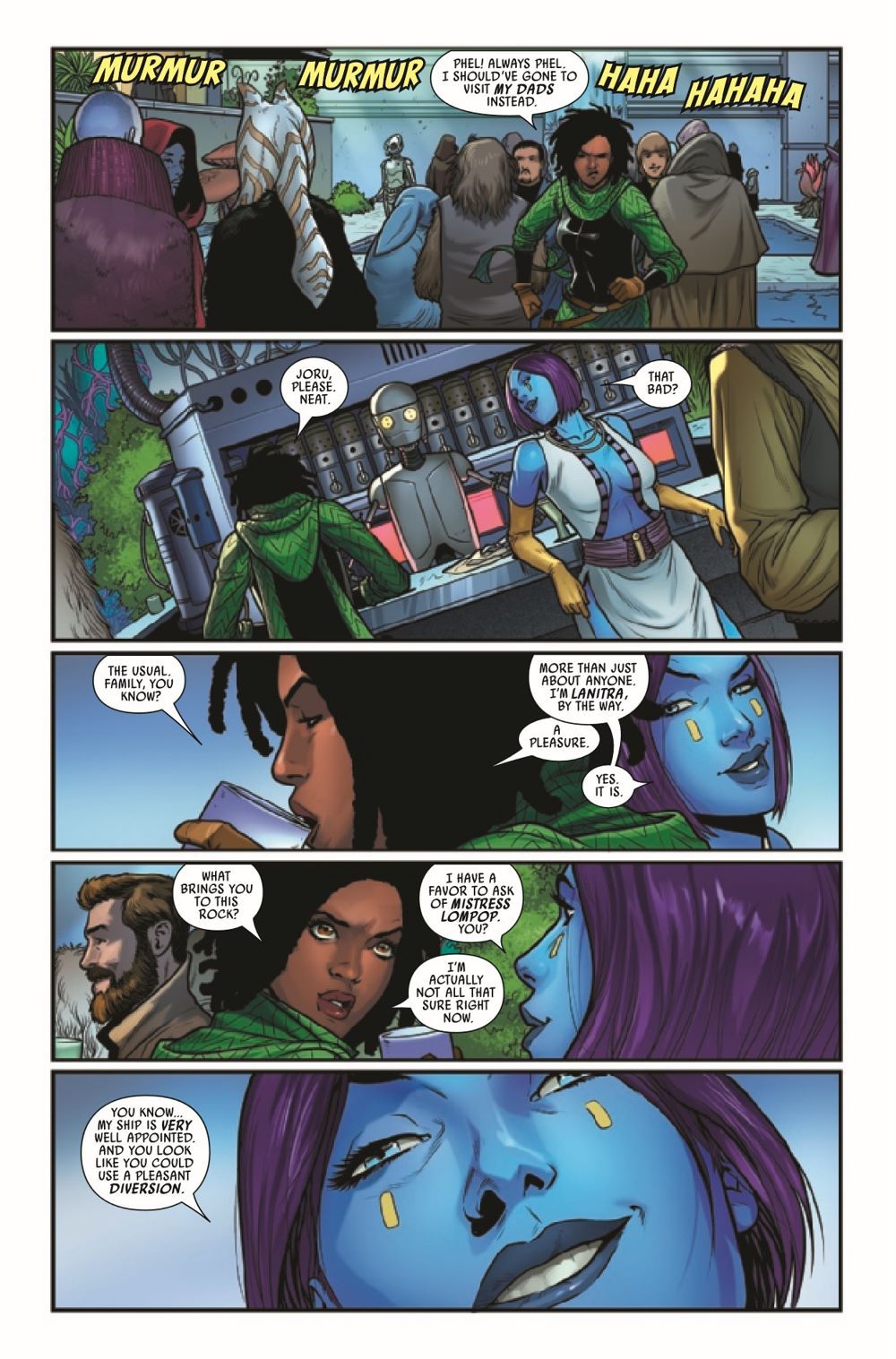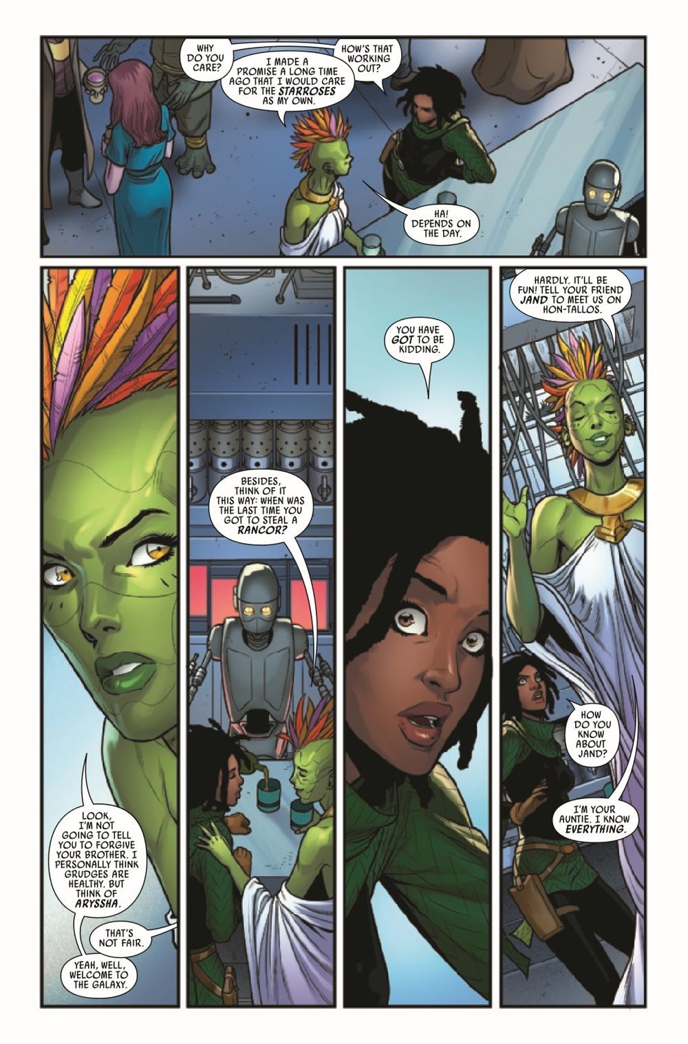 PARTY CRASHERS! • Sana has just run into one of the roughest bounty hunters in the galaxy: DEVA LOMPOP! • But what does she want with Sana? • And why is Sana on a RANCOR?!