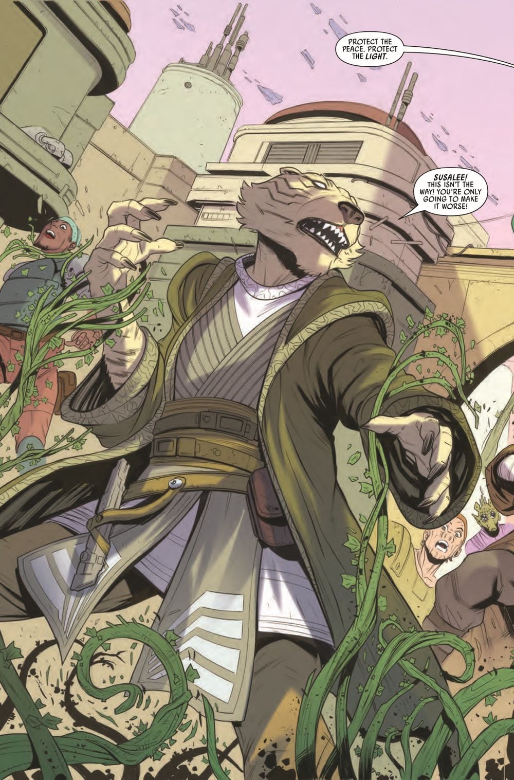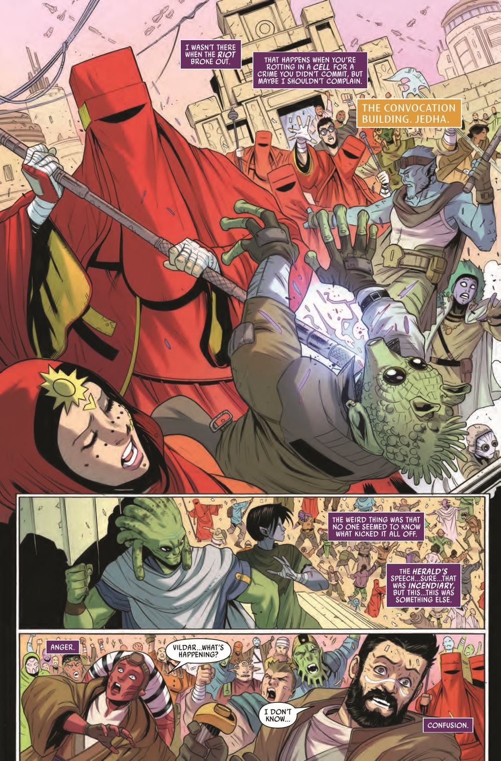 THE BATTLE OF JEDHA HAS BEGUN! As the Herald of the Open Hand stokes the fires of Jedha, Vildar Mac and Matty Cathley are overcome by uncontrollable fear. Tey Sirrek is a prisoner of the Guardians of the Whills. Can he use the chaos to escape? And who are the mysterious strangers ransacking the Temple of the Kyber? Is nowhere safe?