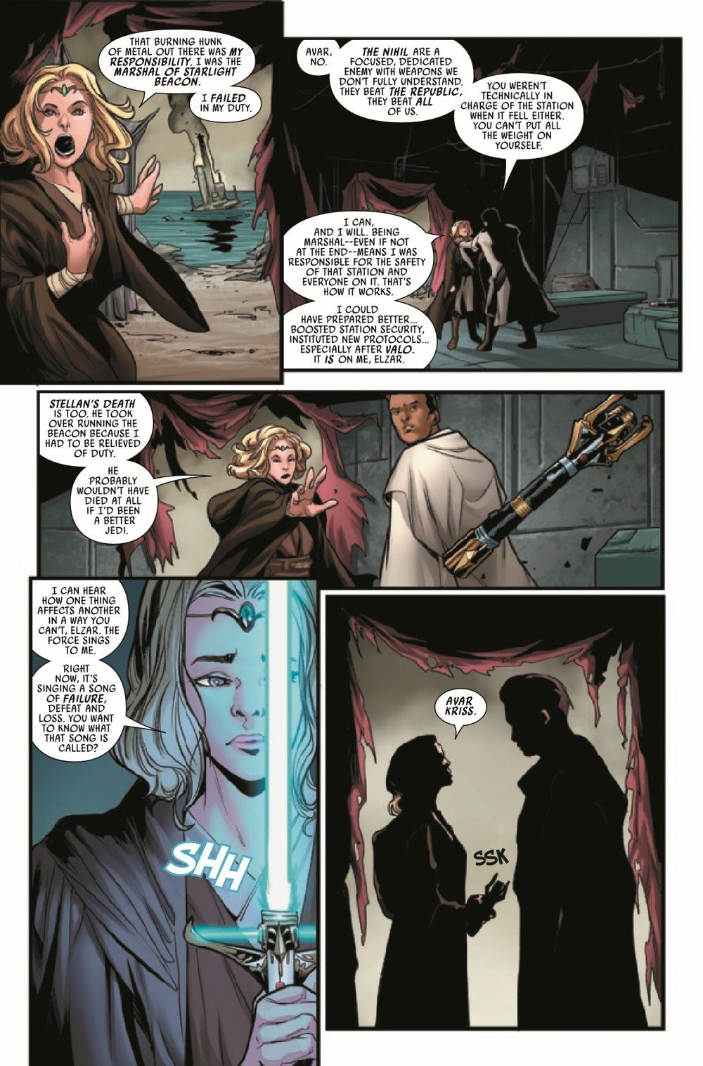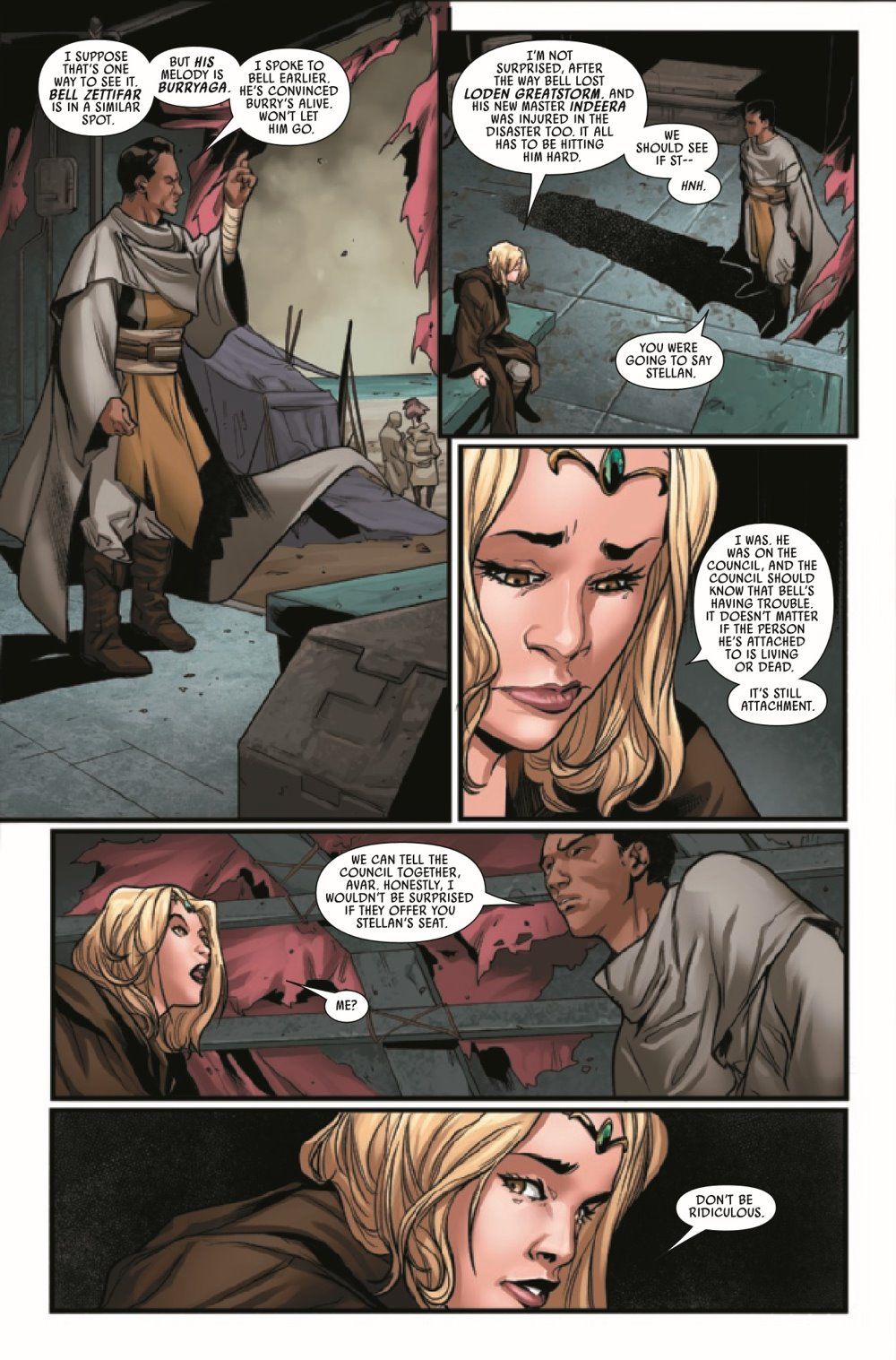 More SECRETS are revealed from the "MISSING YEAR" following the fall of STARLIGHT BEACON! ELZAR MANN and AVAR KRISS, star-crossed JEDI MASTERS, attempt to navigate a galaxy that seems determined to keep them apart… What is the STORMWALL, and what danger does it pose to THE REPUBLIC and THE JEDI ORDER?