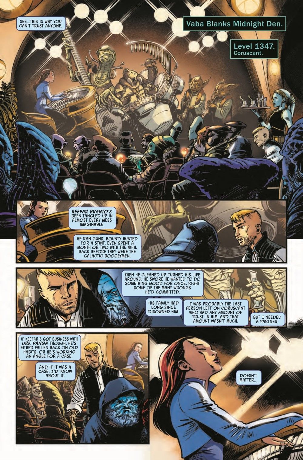 JEDI KNIGHT AND PRIVATE EYE TEAM UP TO UNCOVER A MYSTERY THAT WILL CHANGE THE HIGH REPUBLIC FOREVER! A Jedi Master is dead. Another is in a state of complete shock. It's a murder the likes of which the Jedi Order has never seen before. There are no leads. There are no suspects. There is no motive. But Jedi Investigator EMERICK CAPHTOR must solve the case before it's too late. The fate of the Jedi, the Hutts, the Nihil and everyone in the galaxy, hangs by this tangled thread of lies and deceit. Emerick will need to dive into the darkness, testing himself and his Jedi ideals like never before. He'll need help. Luckily, Private Eye SIAN HOLT lives in the dark. Together, they'll follow this trail of shadows wherever it leads. If they can work together, that is.