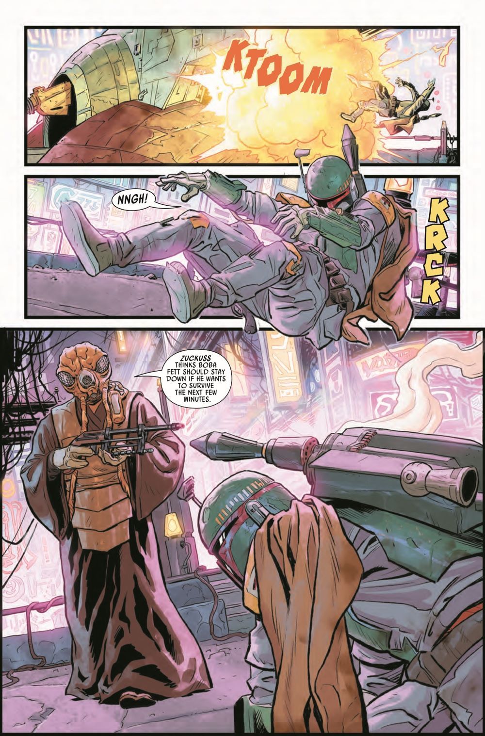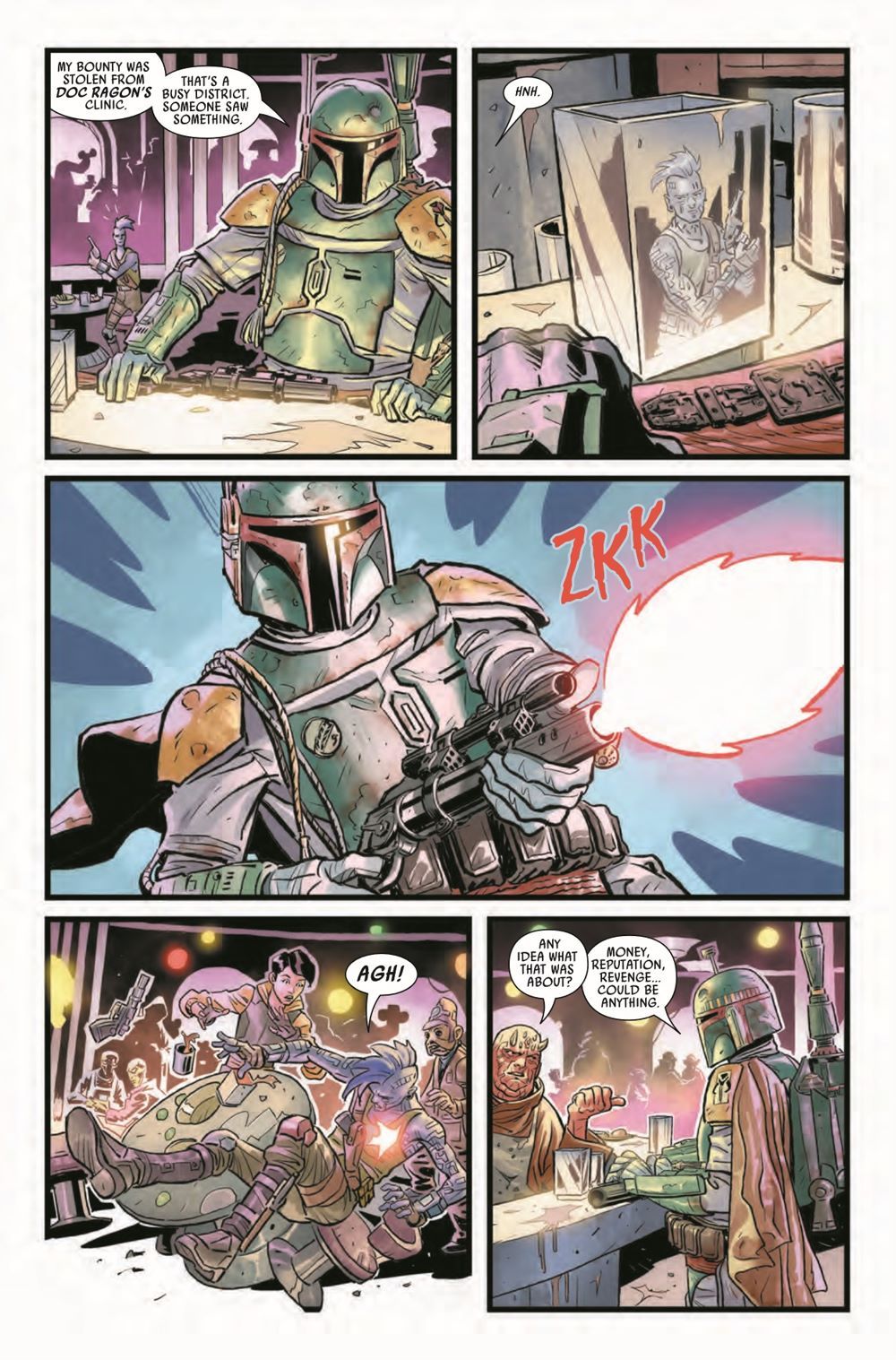 THE HUNT BEGINS! • Nobody. Steals. From BOBA FETT! The notorious bounty hunter will not stop until he gets what's rightfully his. For the thief, no corner of the galaxy is safe. Good thing for them that the REBEL ALLIANCE, THE EMPIRE and every bounty hunter in the galaxy is standing in Boba's way. • With a last-page reveal that will blow this Death Star-sized story wide open, Issue #1 is just the beginning. The biggest crossover in STAR WARS history will continue raging through the pages of the WAR OF THE BOUNTY HUNTERS event miniseries and tie-in to STAR WARS, DOCTOR APHRA, DARTH VADER and BOUNTY HUNTERS through October. • Only one hunter will be left standing, and the STAR WARS galaxy will never be the same!