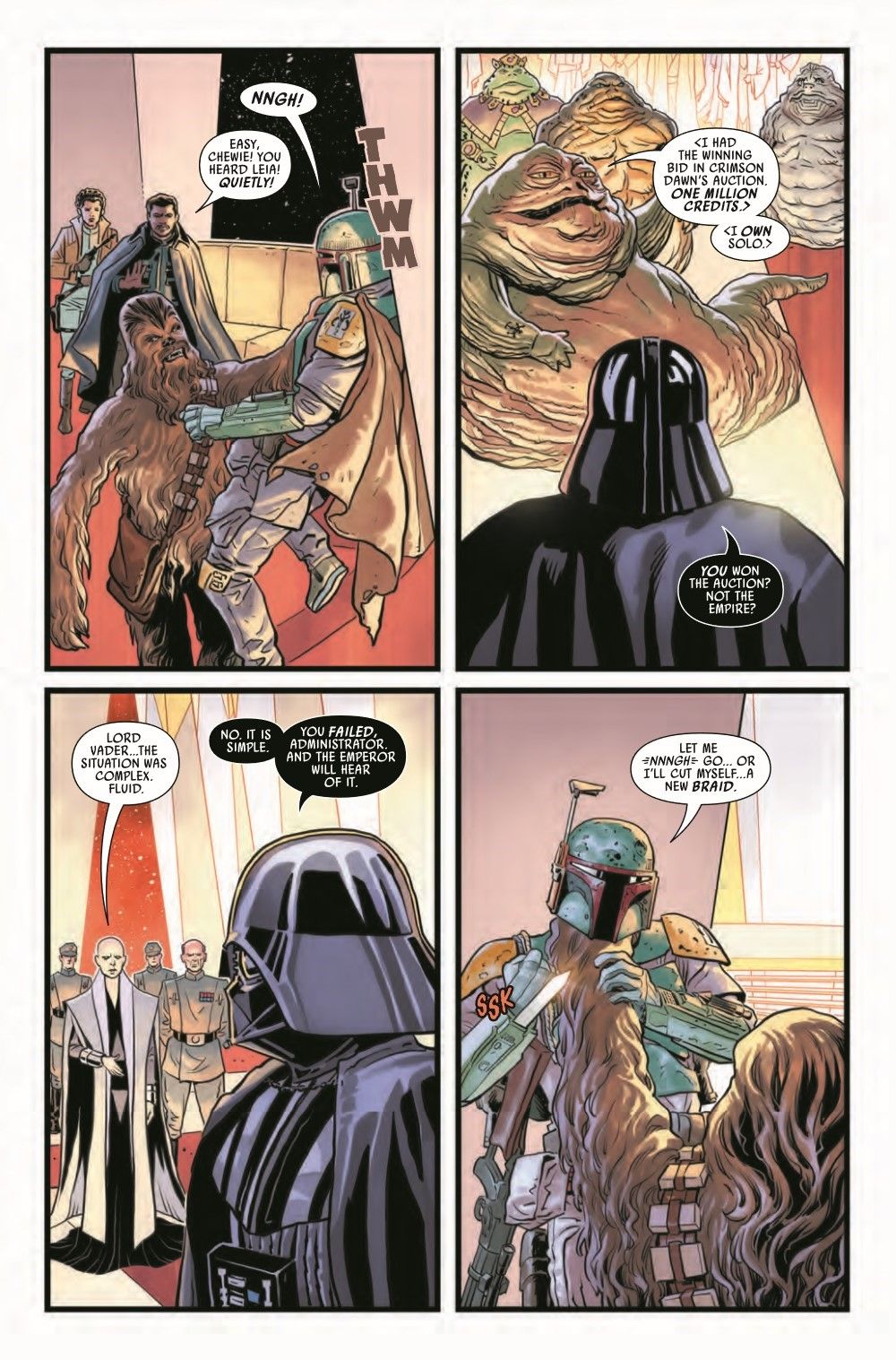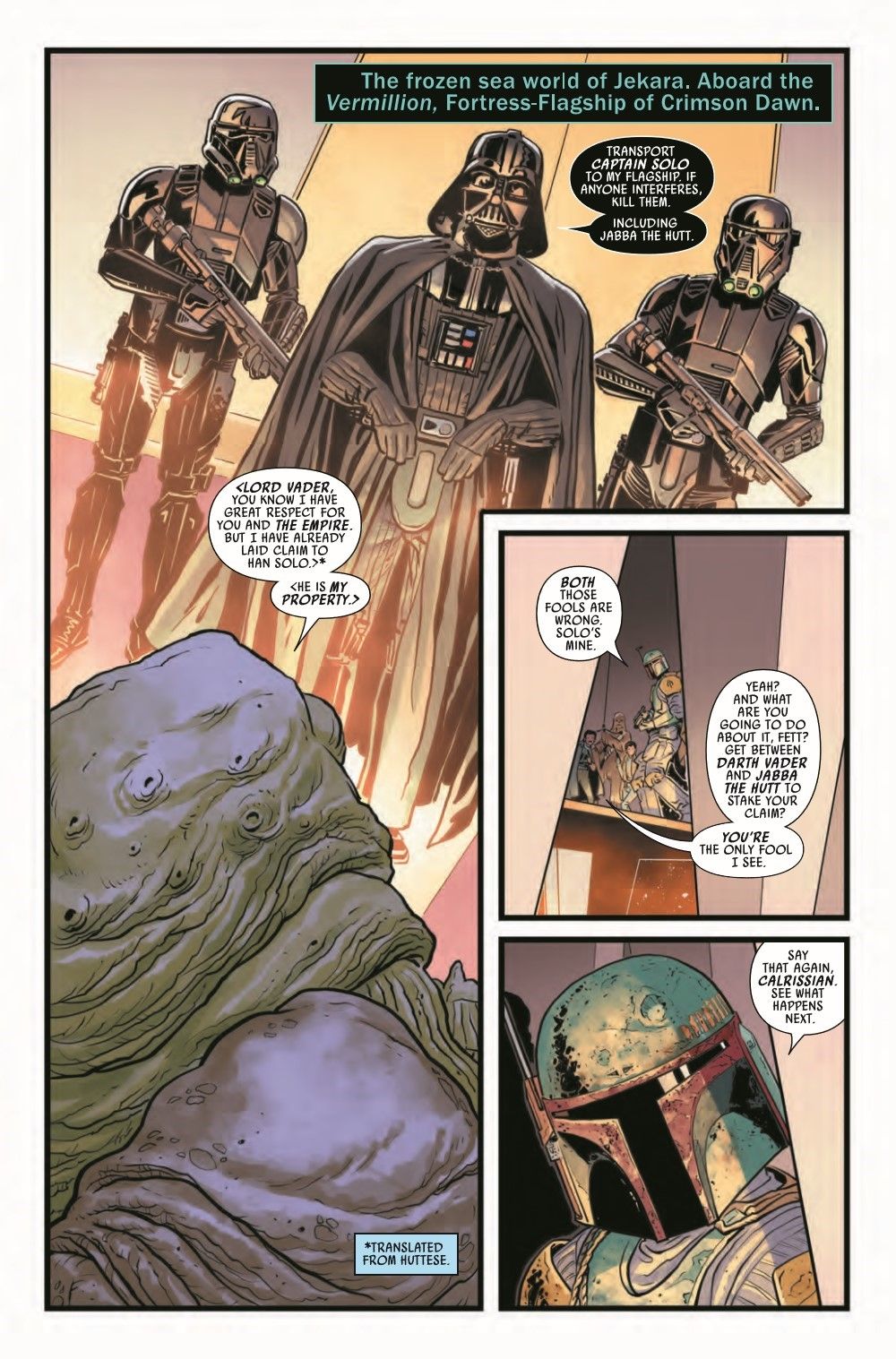 WINNER TAKES ALL! Terrifying, implacable Dark Lord of the Sith DARTH VADER has laid claim to HAN SOLO, who is frozen in carbonite. But the great, exalted JABBA THE HUTT also believes that Solo is his property. It's the galaxy's baddest gangster versus the Empire's most powerful enforcer, and neither is backing down. BOBA FETT is caught between a Sith and a Hutt...and it's WINNER TAKE ALL.