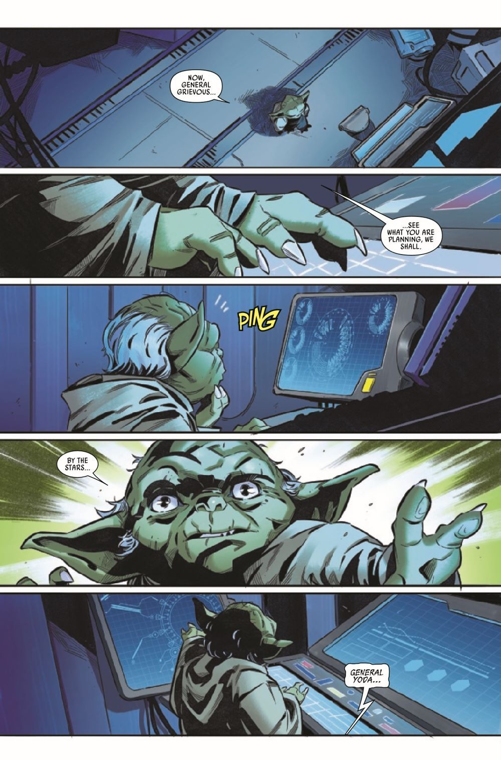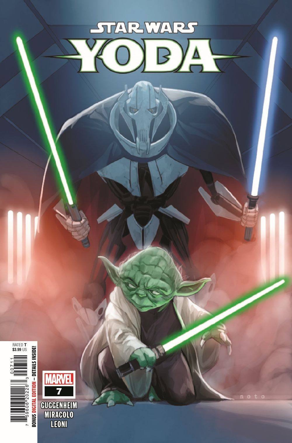YODA VS. GENERAL GRIEVOUS…TO THE DEATH! The start of a new arc set during the tumultuous CLONE WARS! The Separatists have a powerful new weapon that can change the course of the war! Can Yoda and Anakin Skywalker discover the secret of the weapon in time?