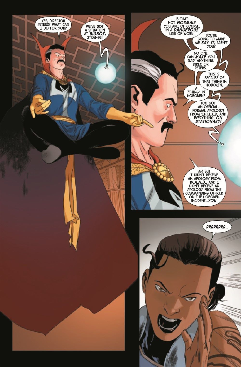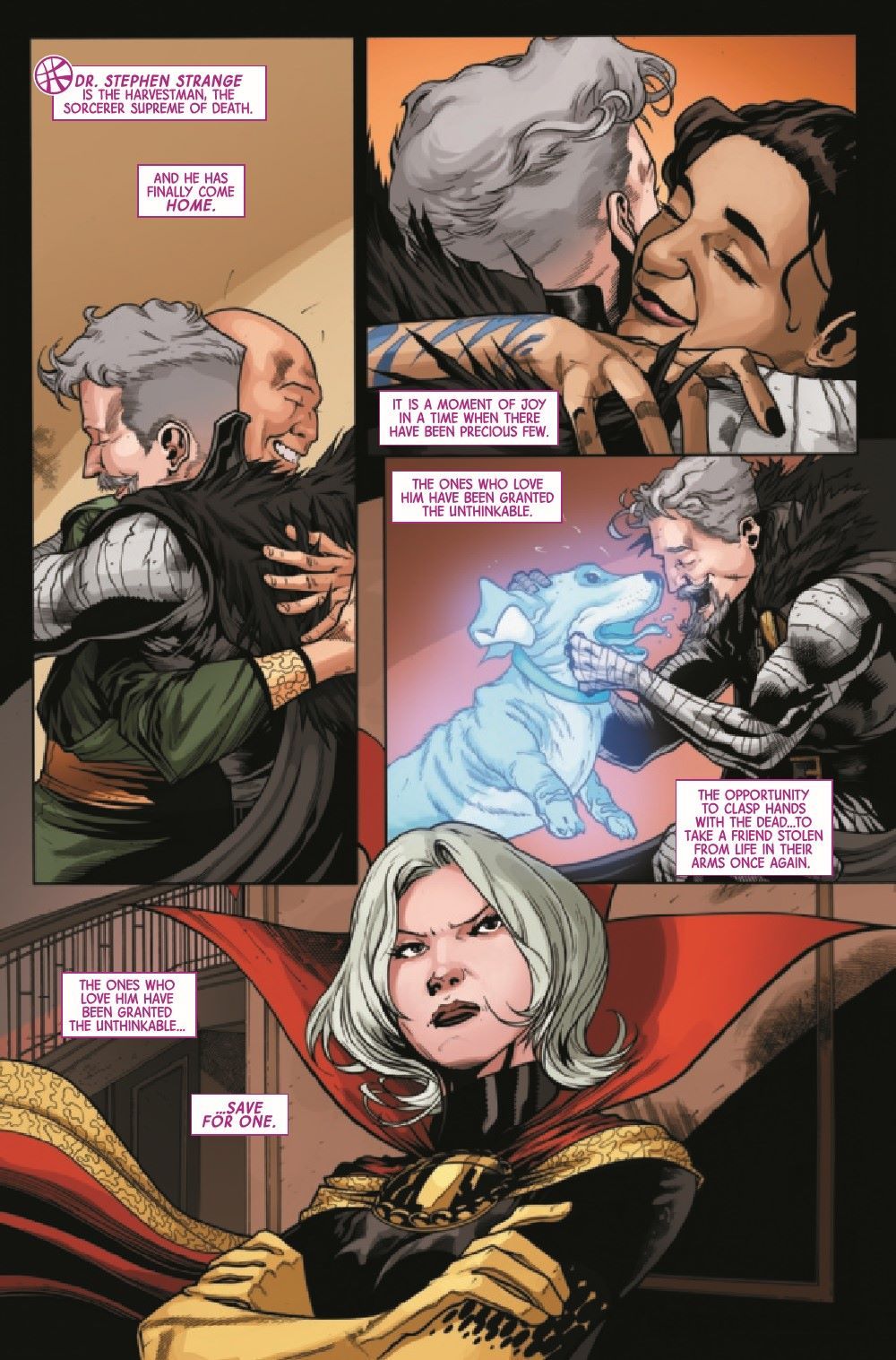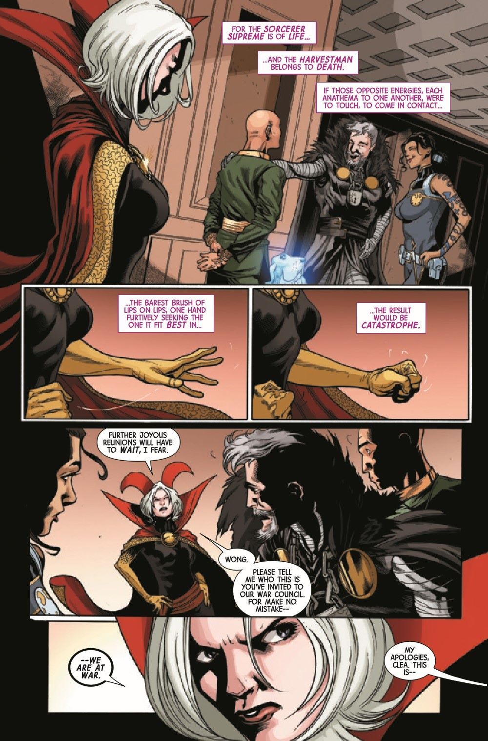 WHO ARE THE BLASPHEMY CARTEL? The secrets of the Cartel are revealed, and it comes from the unlikeliest of sources! Will this be the help Clea needs to bring peace to her adopted realm? Or will this be too much for the Sorcerer Supreme to handle?