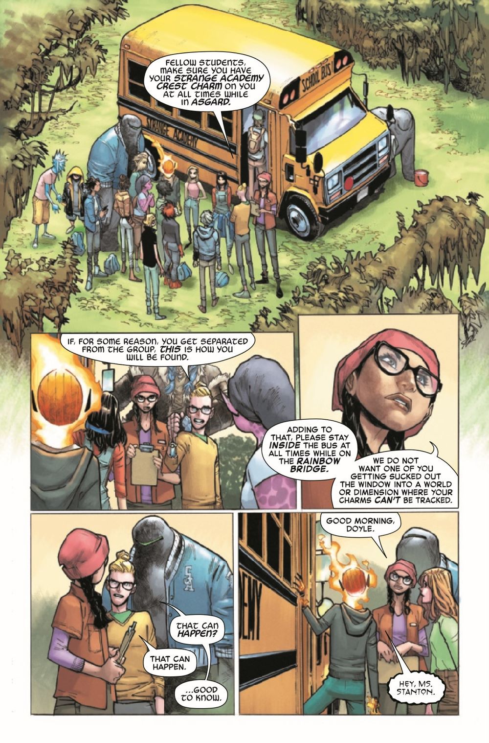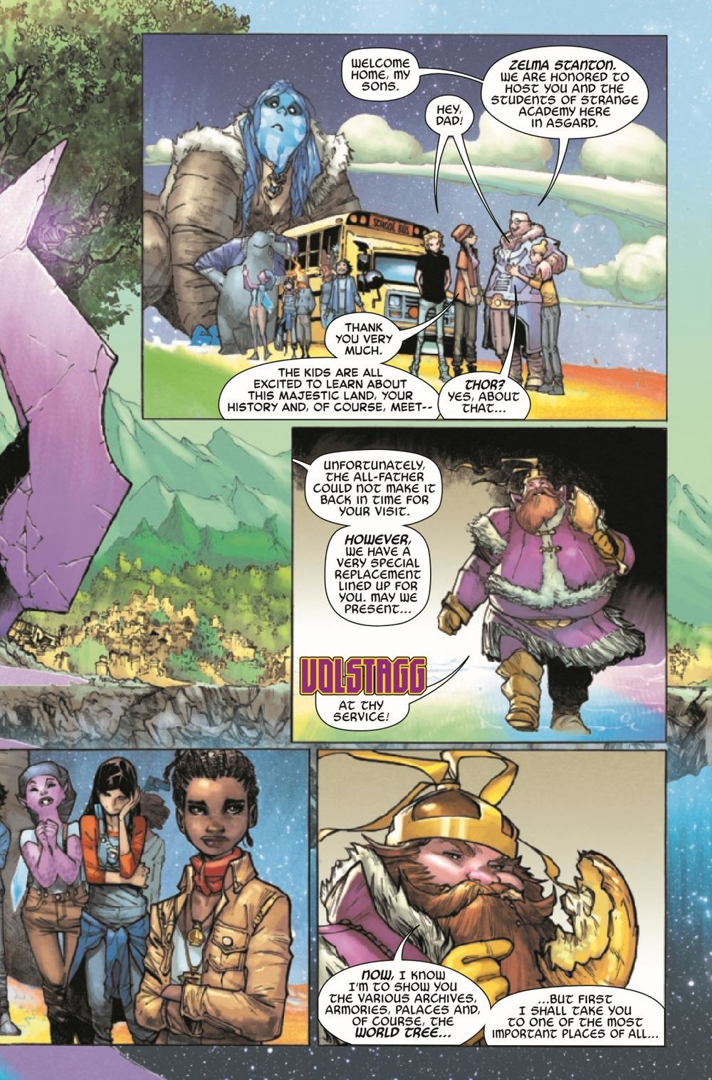 FIELD TRIP! The students of Strange Academy are off on their first field trip. Hope everyone got their permission slips in! • They're off to Alvi & Iric's home-- ASGARD-- where you'll something truly shocking about these twins! • Emily hasn't fully recovered from the events of #6... will she find something in Asgard to help her heal?