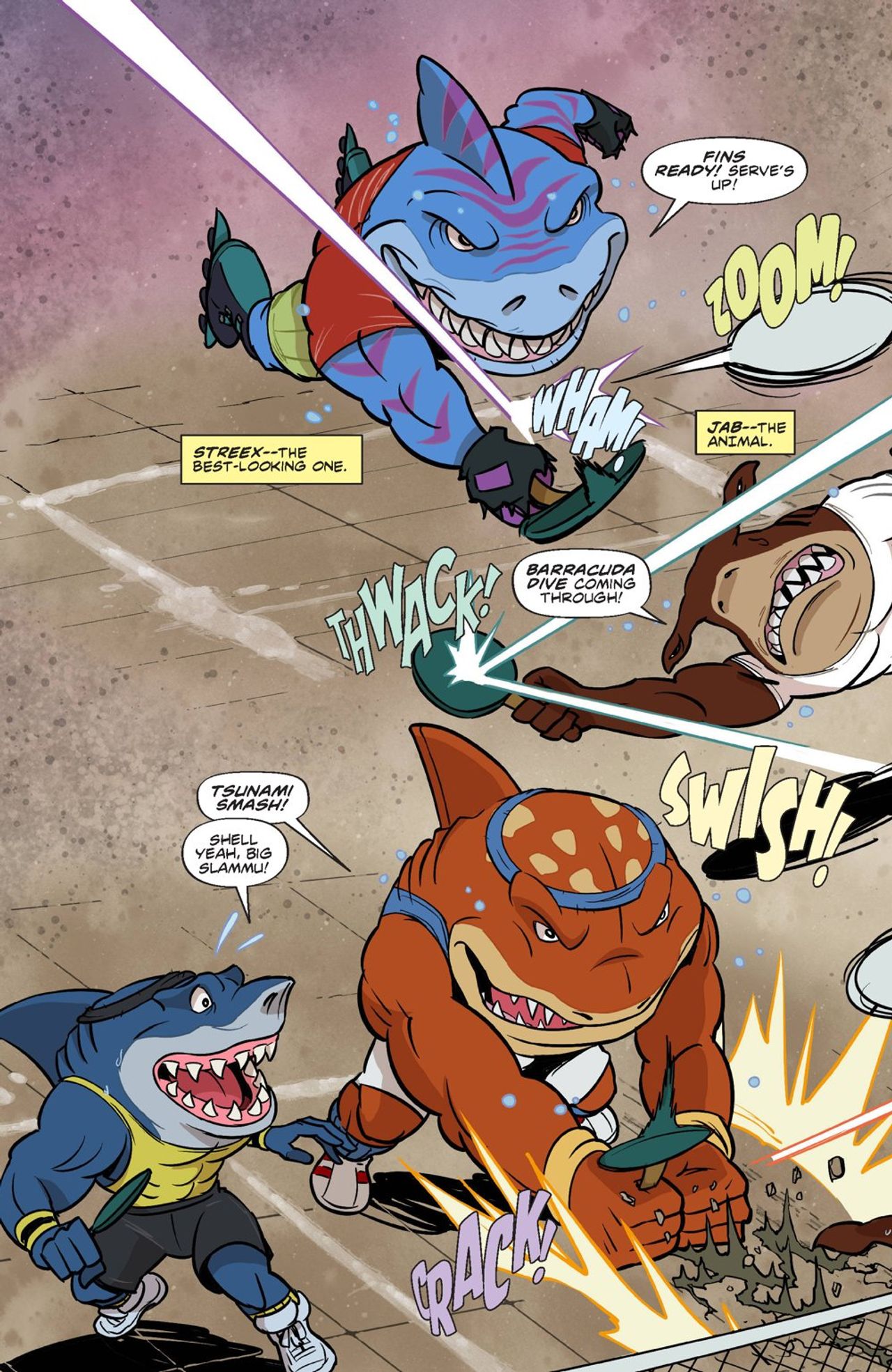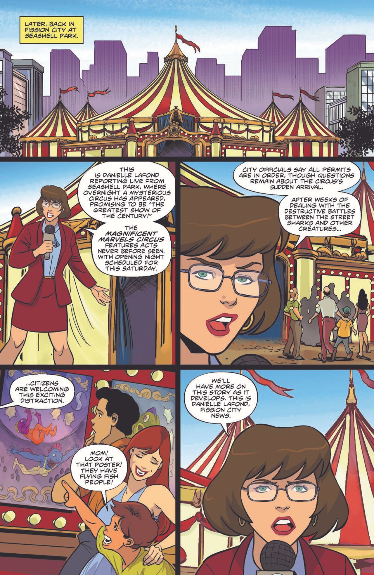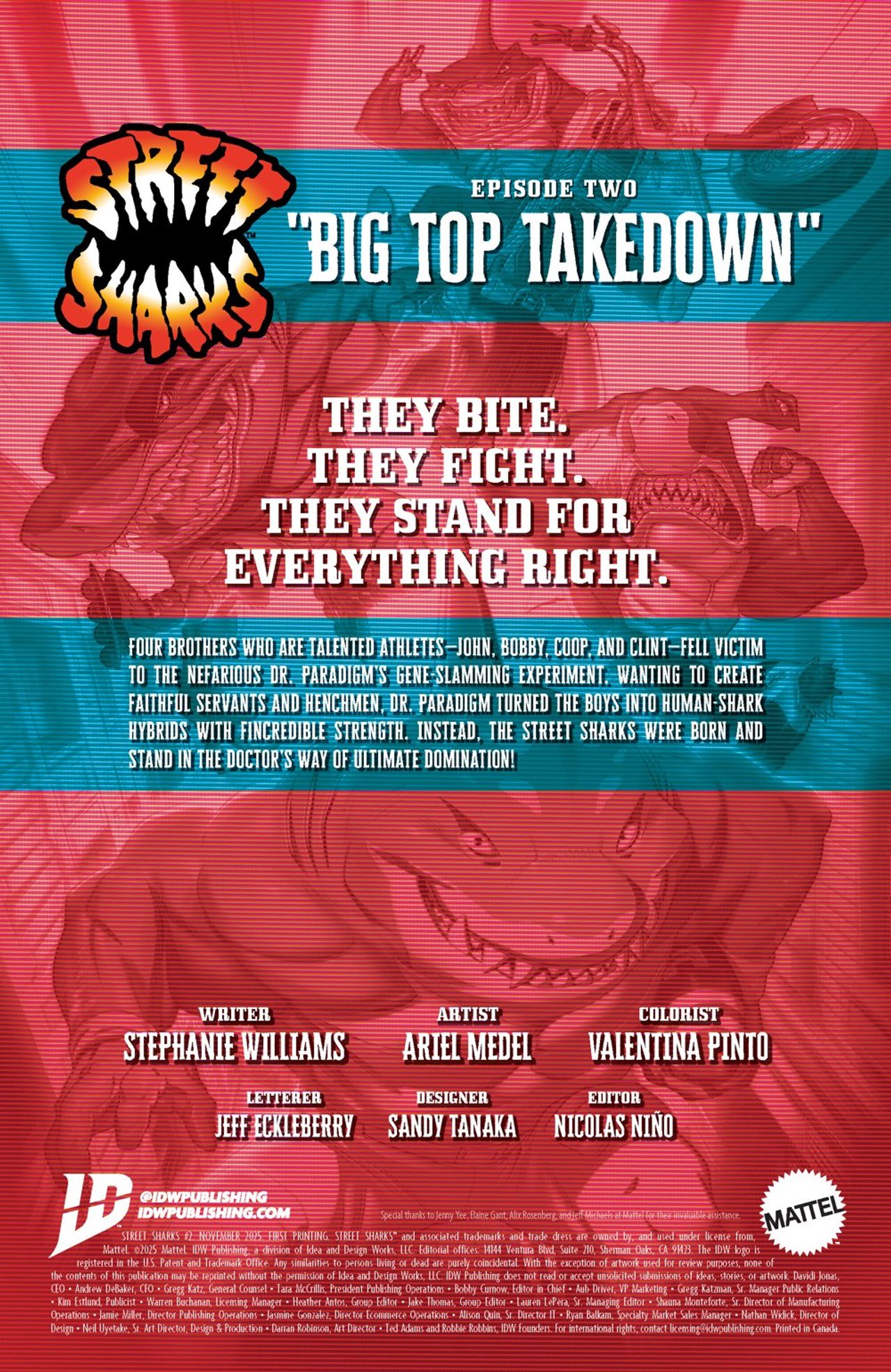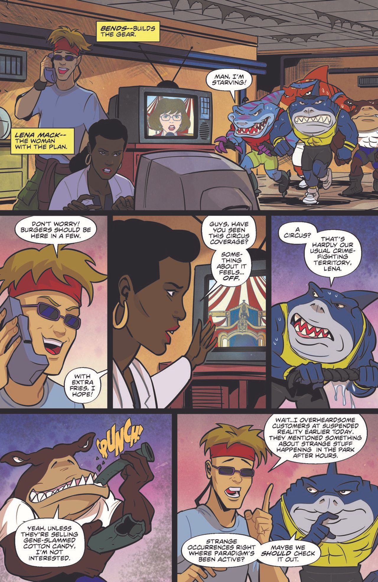 The fin-kicking adventures continue! Dr. Paradigm is hiding out somewhere in Fission City! The Street Sharks may have stopped the mad scientist and his Seaviate goons, but they couldn't capture him. Even with their arch-nemesis at large, they'll have to stop their search when a new big-top circus mysteriously appears in the waterfront district. To the public, it seems like a regular, fun-loving circus. But the Sharks are hearing rumors about strange noises around the circus at night! Surely, this couldn't possibly be connected to Dr. Paradigm's latest schemes…right?!