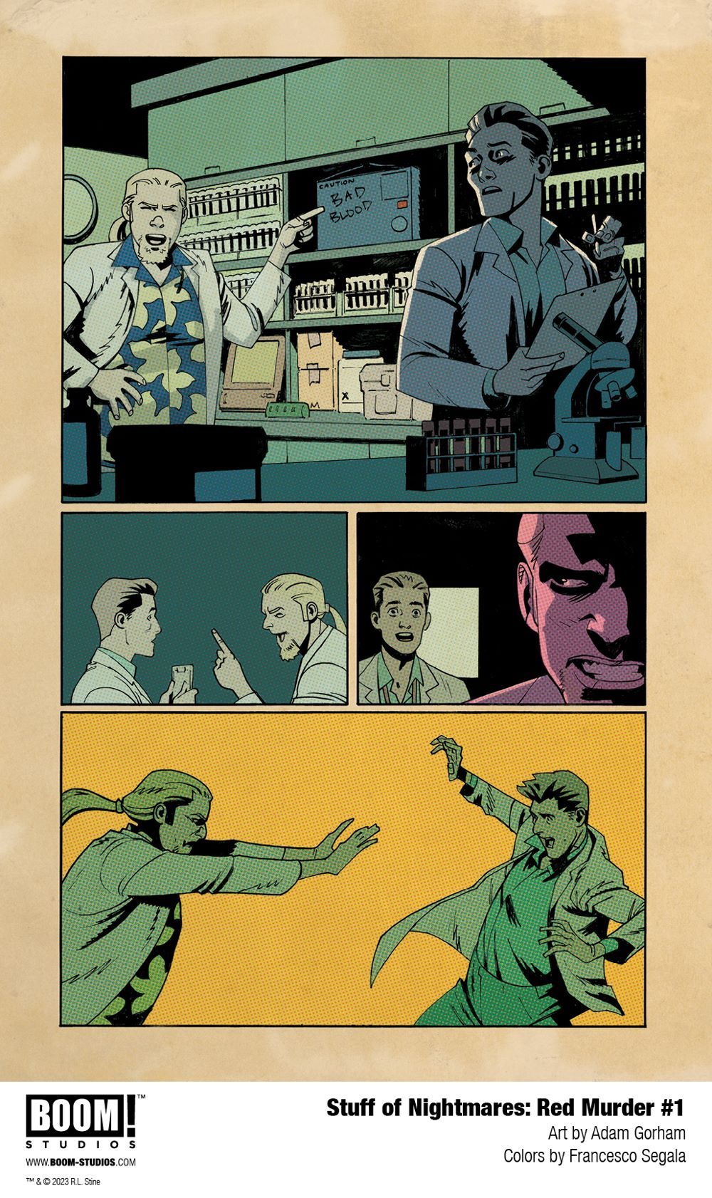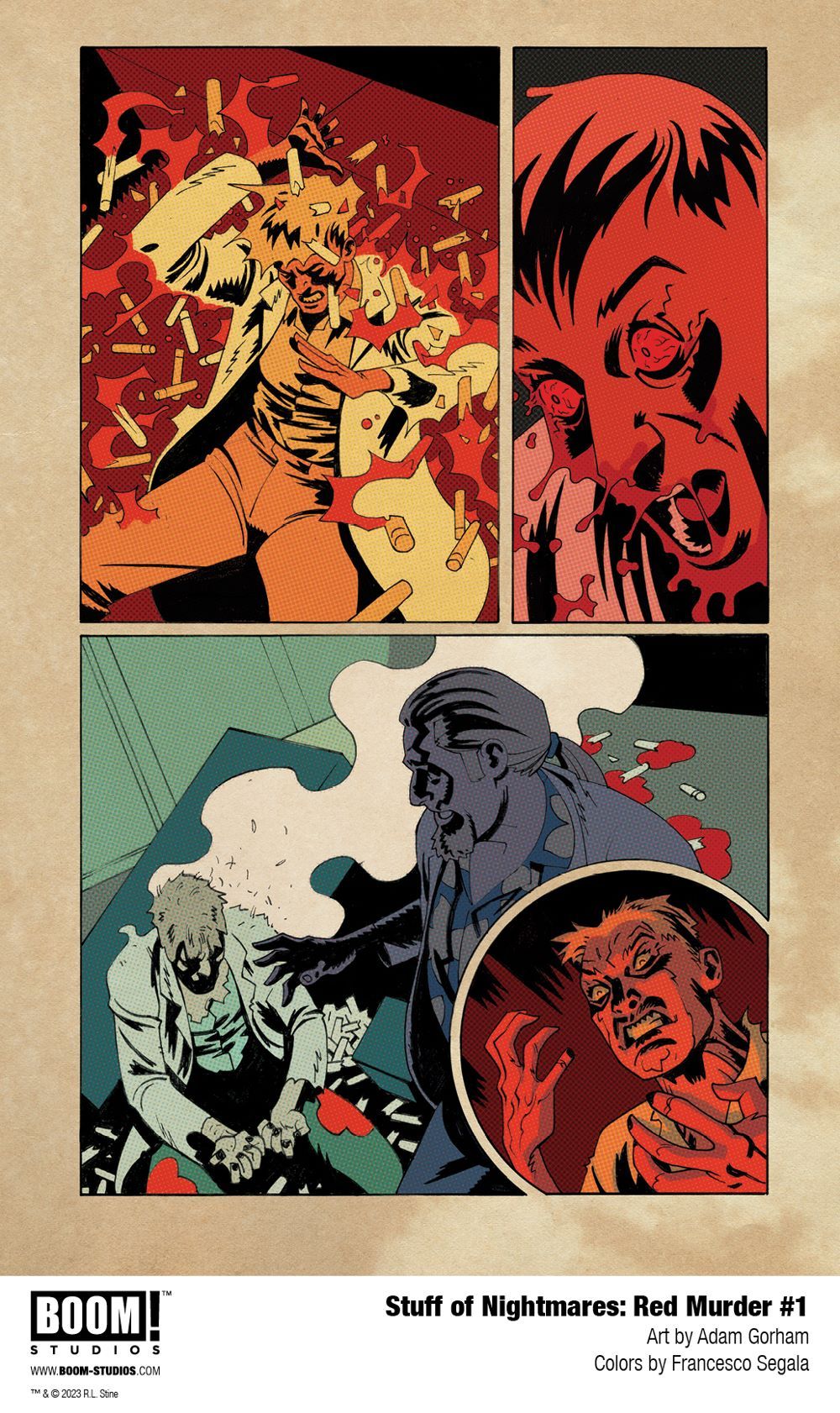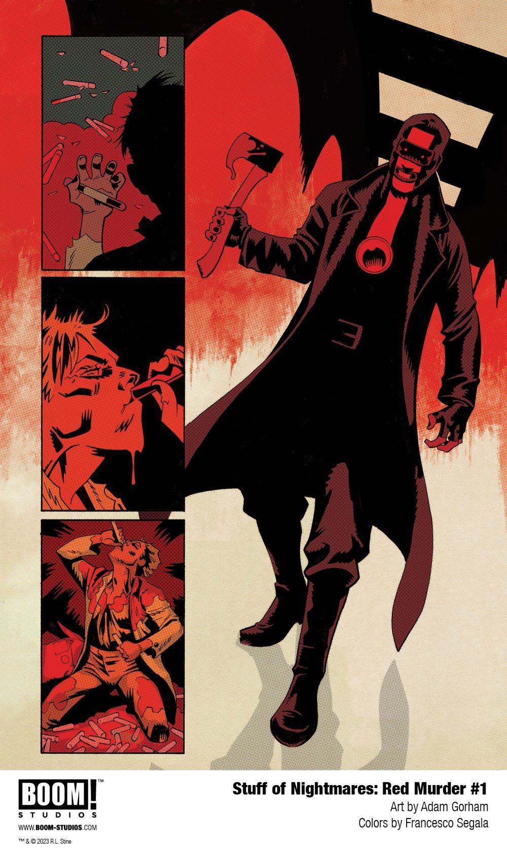 SPECIAL ISSUE. Fans of Dark Ride and EC Comics won't want to miss this fresh foray into horror! Comic creator Alex Oxaca has been out of the spotlight for decades, and he'll wish he'd remained in obscurity soon enough… RED MURDER was the smash hit title of the early 2000s, and will come back from the past in more ways than one during the 20th anniversary celebration of the title! A real ax murderer, eerily parallel to the hatchet-wielding killer in the comic, starts chopping down equally real victims. Prolific author of legendary terror R.L. Stine is joined by artist Adam Gorham (Dune: Blood of the Sardaukar, The Blue Flame) for a nightmarish self-contained chapter of the bestselling Stuff of Nightmares that readers new and old would kill for!